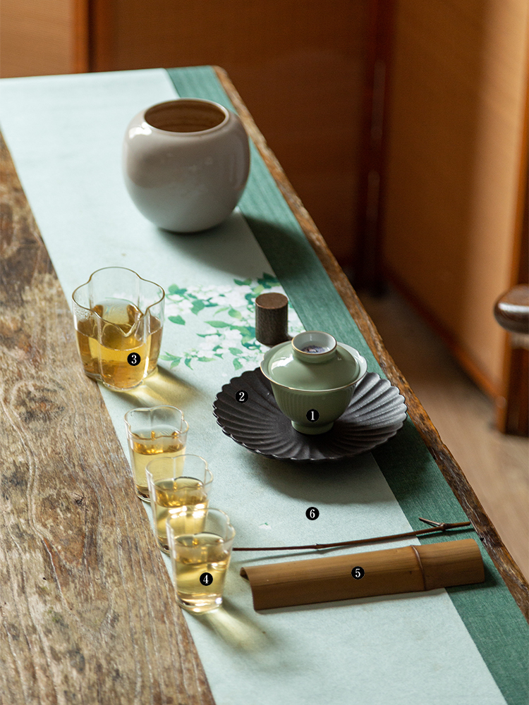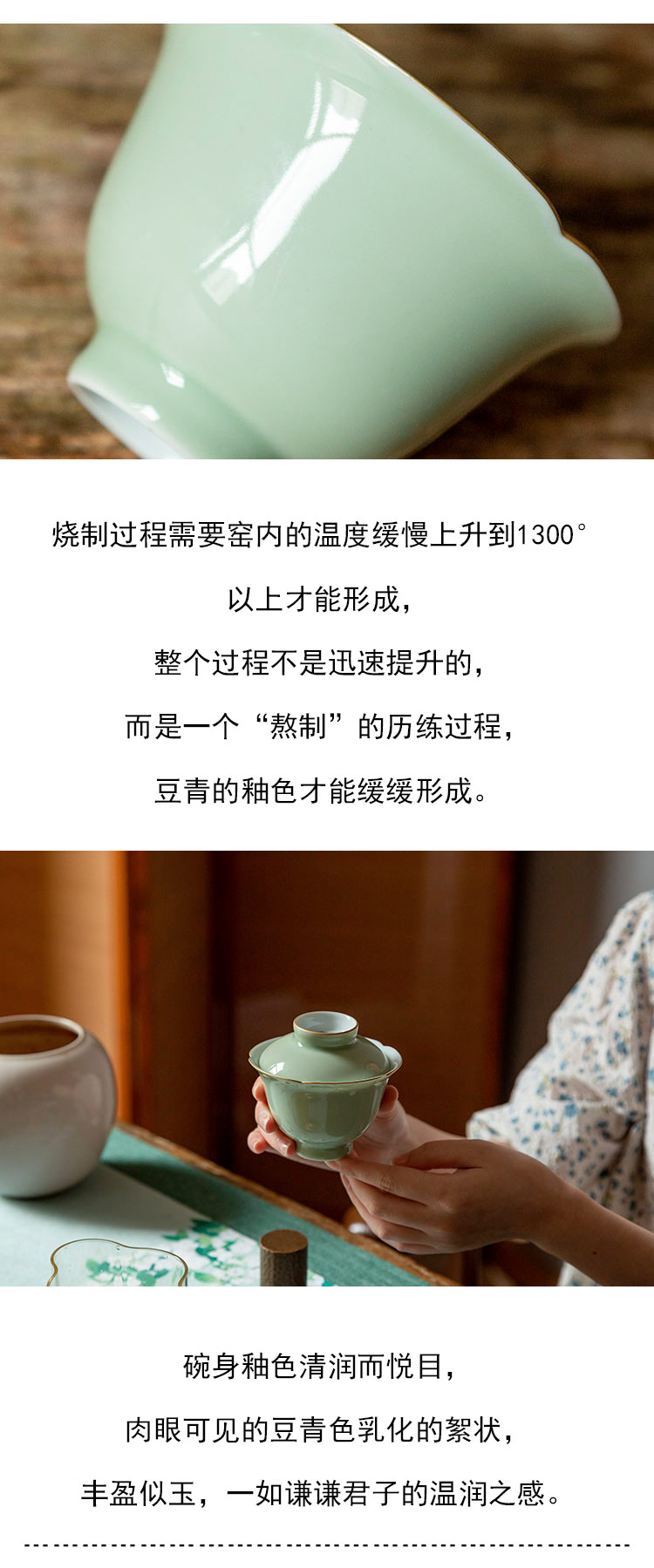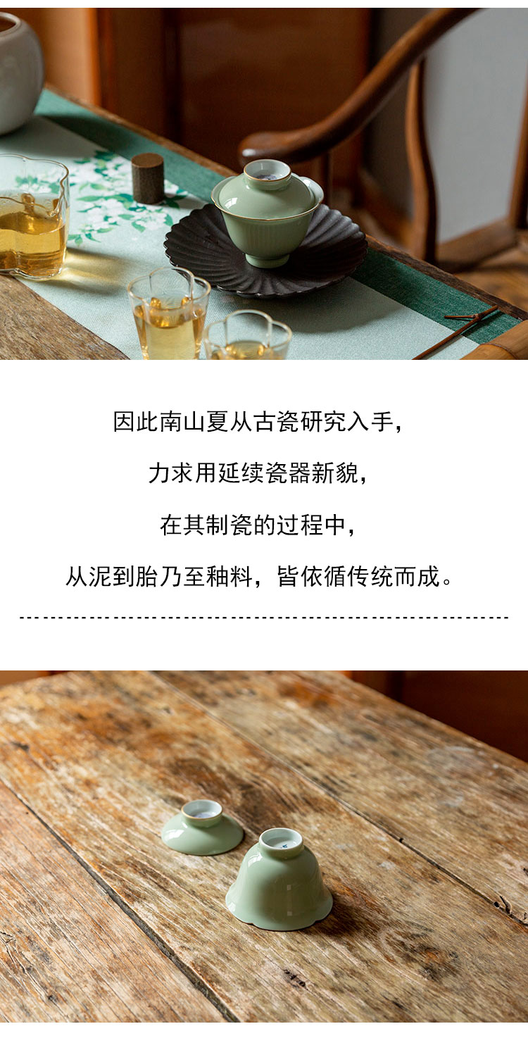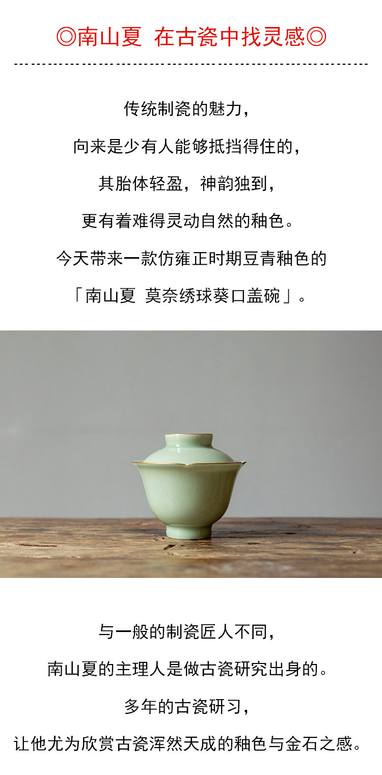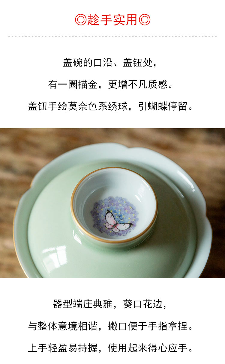 茶香记 南山夏 莫奈绣球葵口盖碗 豆青釉 温润清雅 古韵之美