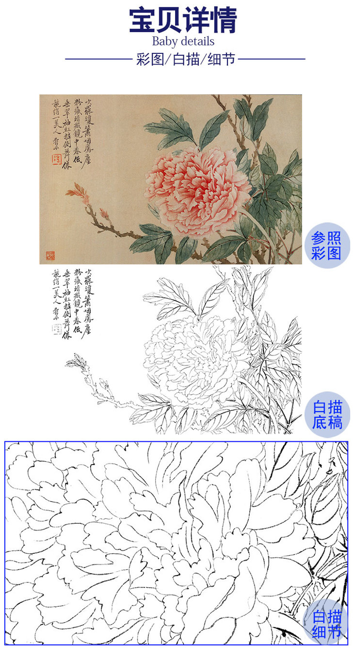 任重花鸟工笔画白描底稿《花鸟图》临摹勾线高清打印稿RD44