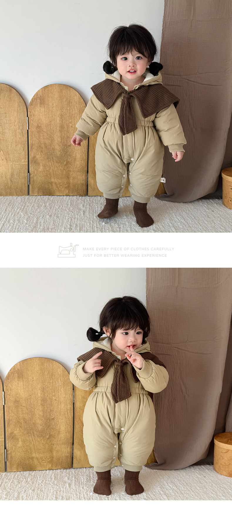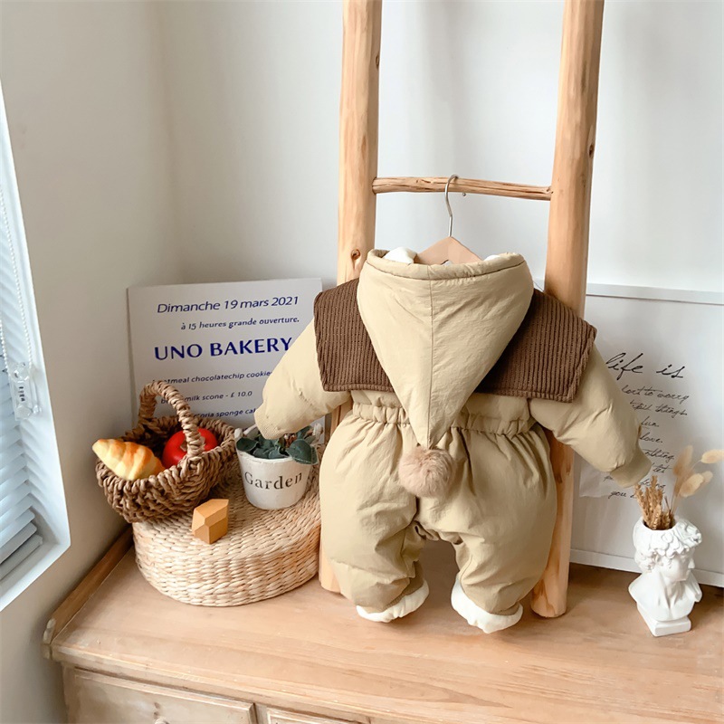 【萌趣加绒连体衣!守护宝宝冬日探索】婴儿外出服洋气冬装保暖棉衣夹棉爬爬服棉服冬季女宝宝加绒连体衣。hb