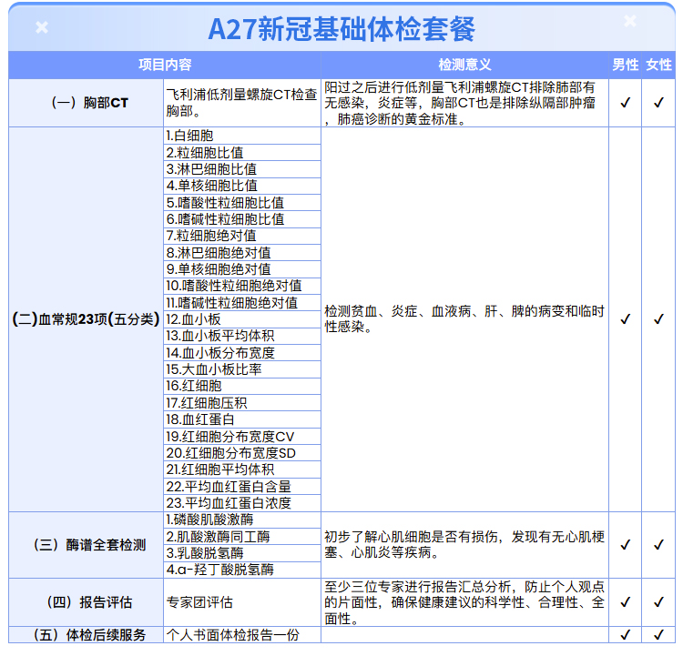 【48h出报告|病毒感染专项】含胸部CT+酶谱全套+血常规二十三项 A27