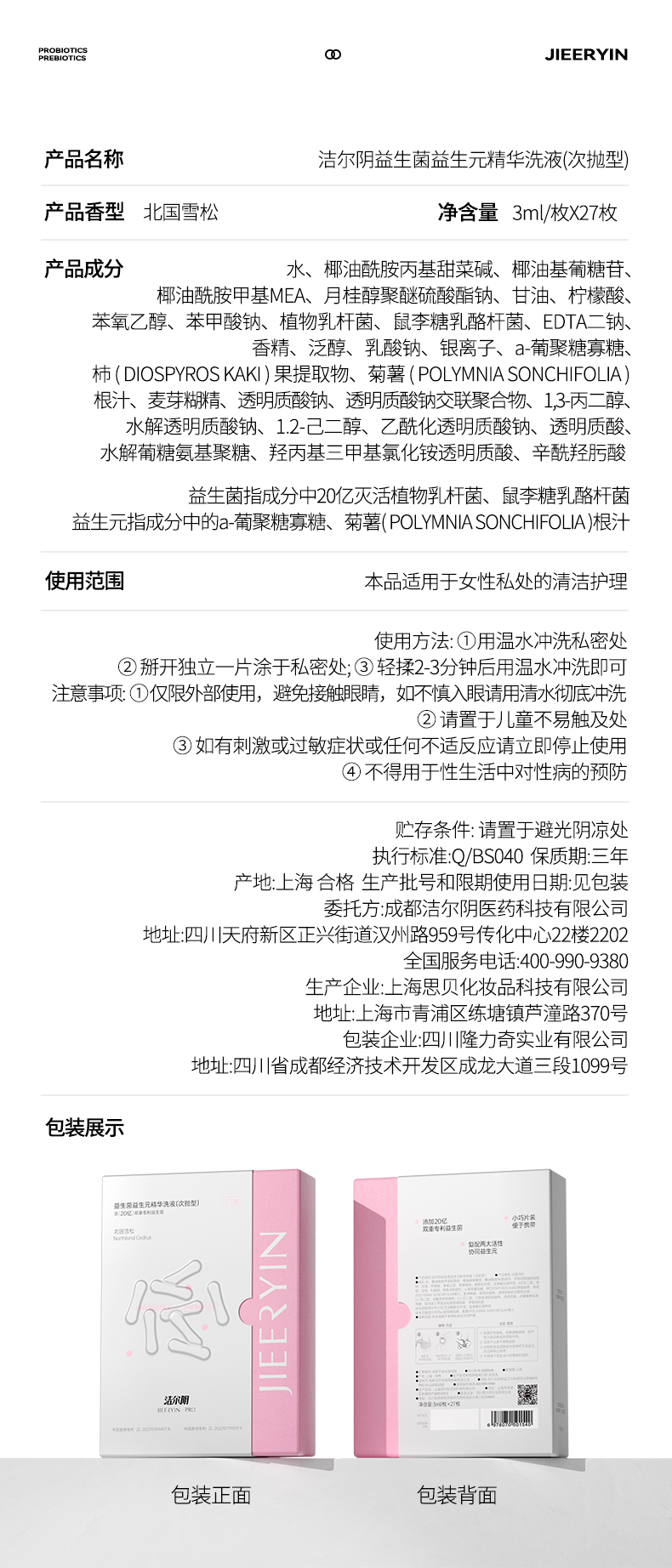 【20亿专利益生菌配比】洁尔阴 益生菌益生元精华洗液(次抛型27枚)
