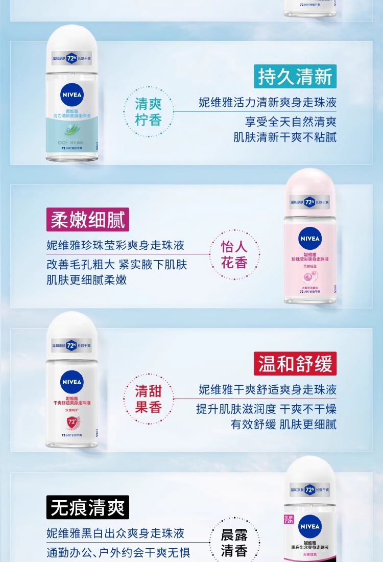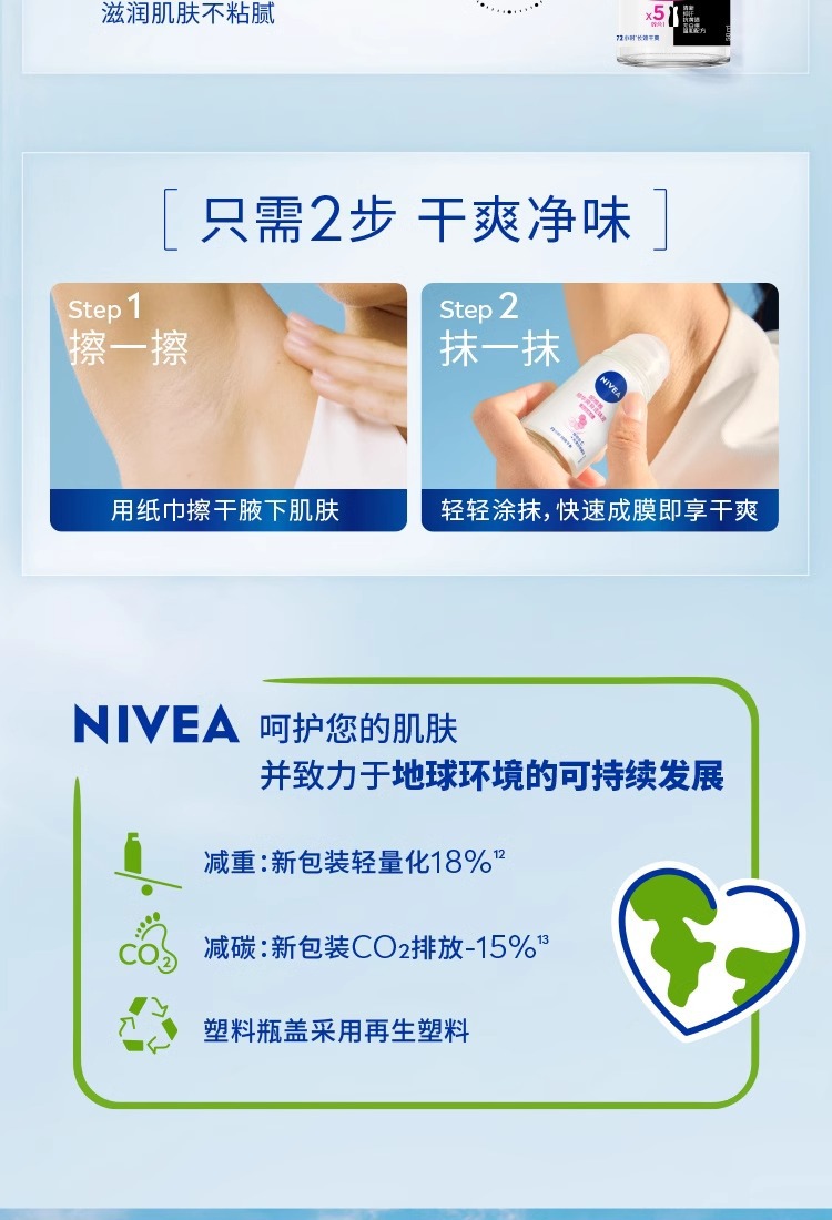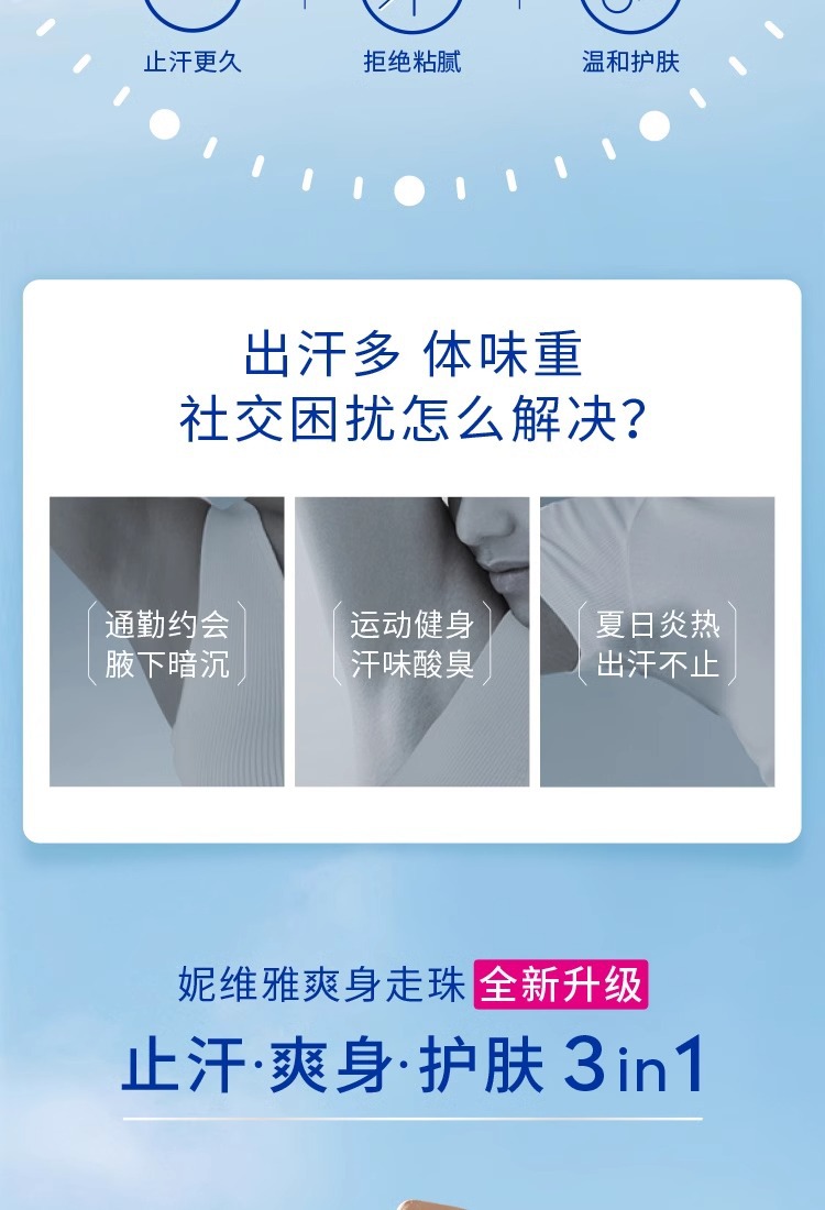 【72h止汗净味,清新干爽!】妮维雅走珠止汗露 便携式腋下香体 男女去异味走汗珠-QQ