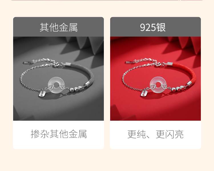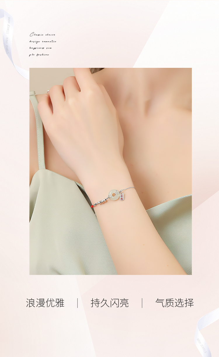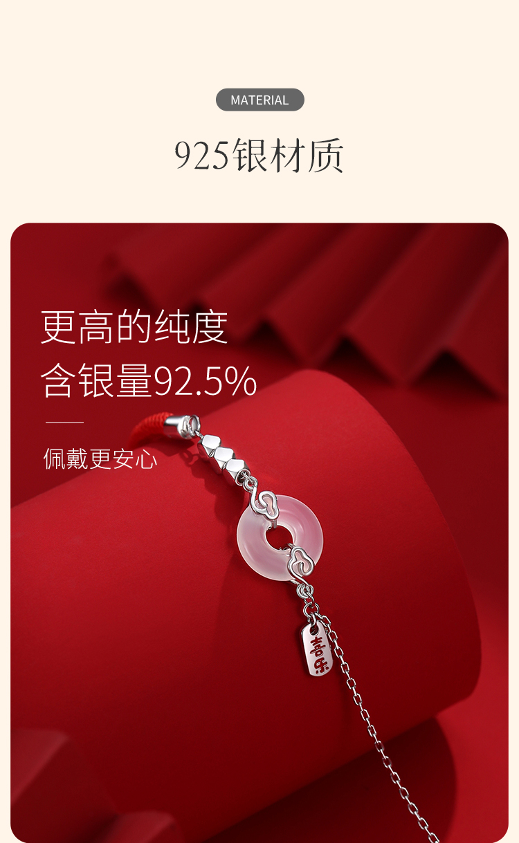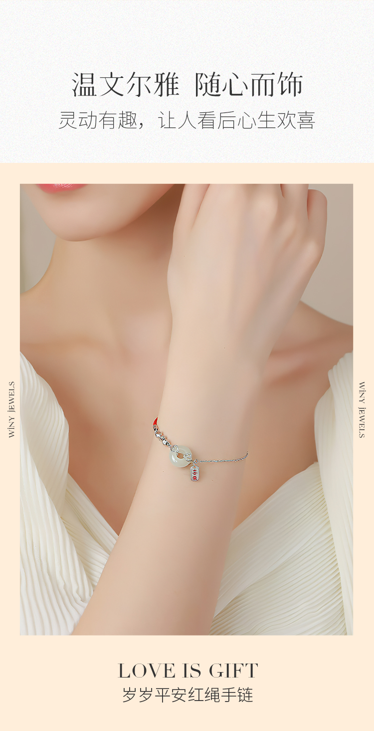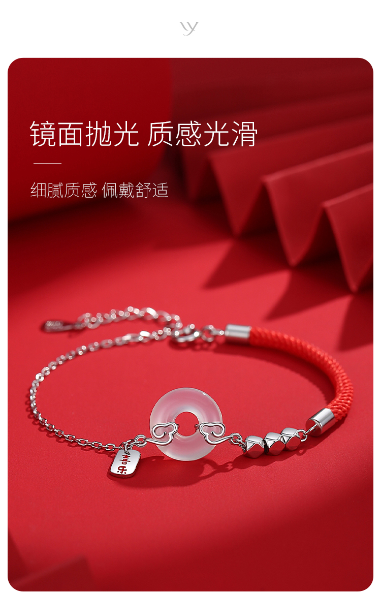 Winy925银岁岁平安红绳玉髓 手链配证书送女友闺蜜节日礼物