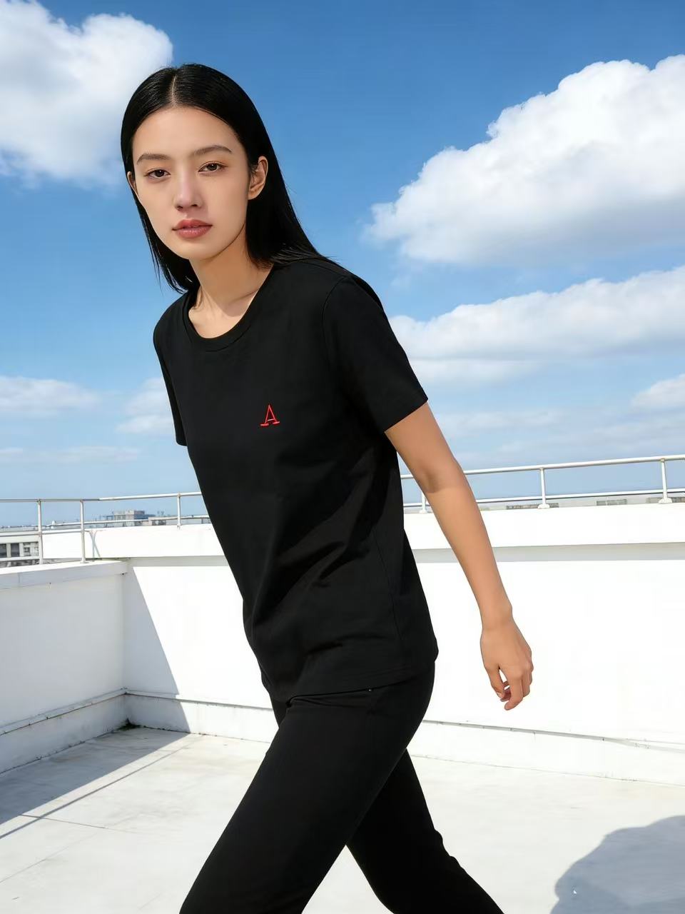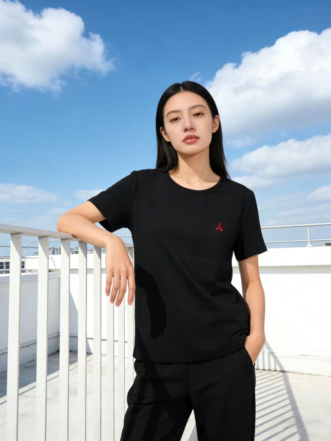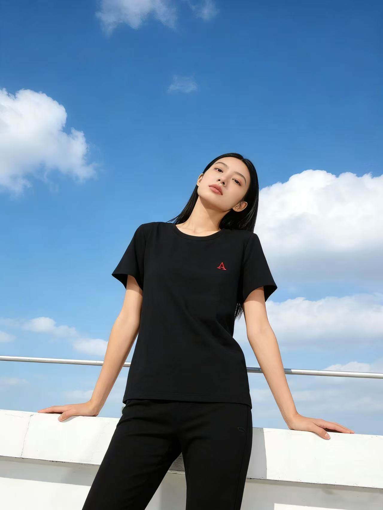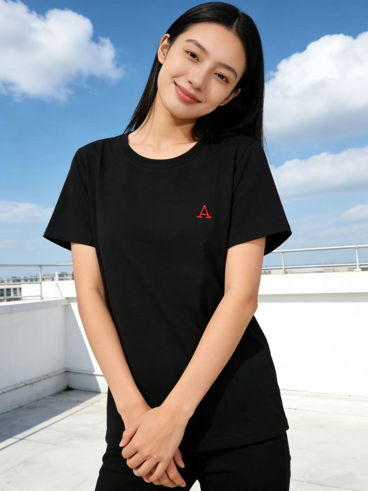 性价比天花板【自营】红“A”刺绣字母!精梳棉95%圆领短袖T恤上衣-喜出