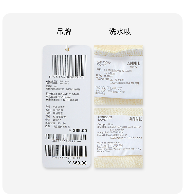 【实体店同款】女童翻领外套春季新款安奈儿童装XG615059