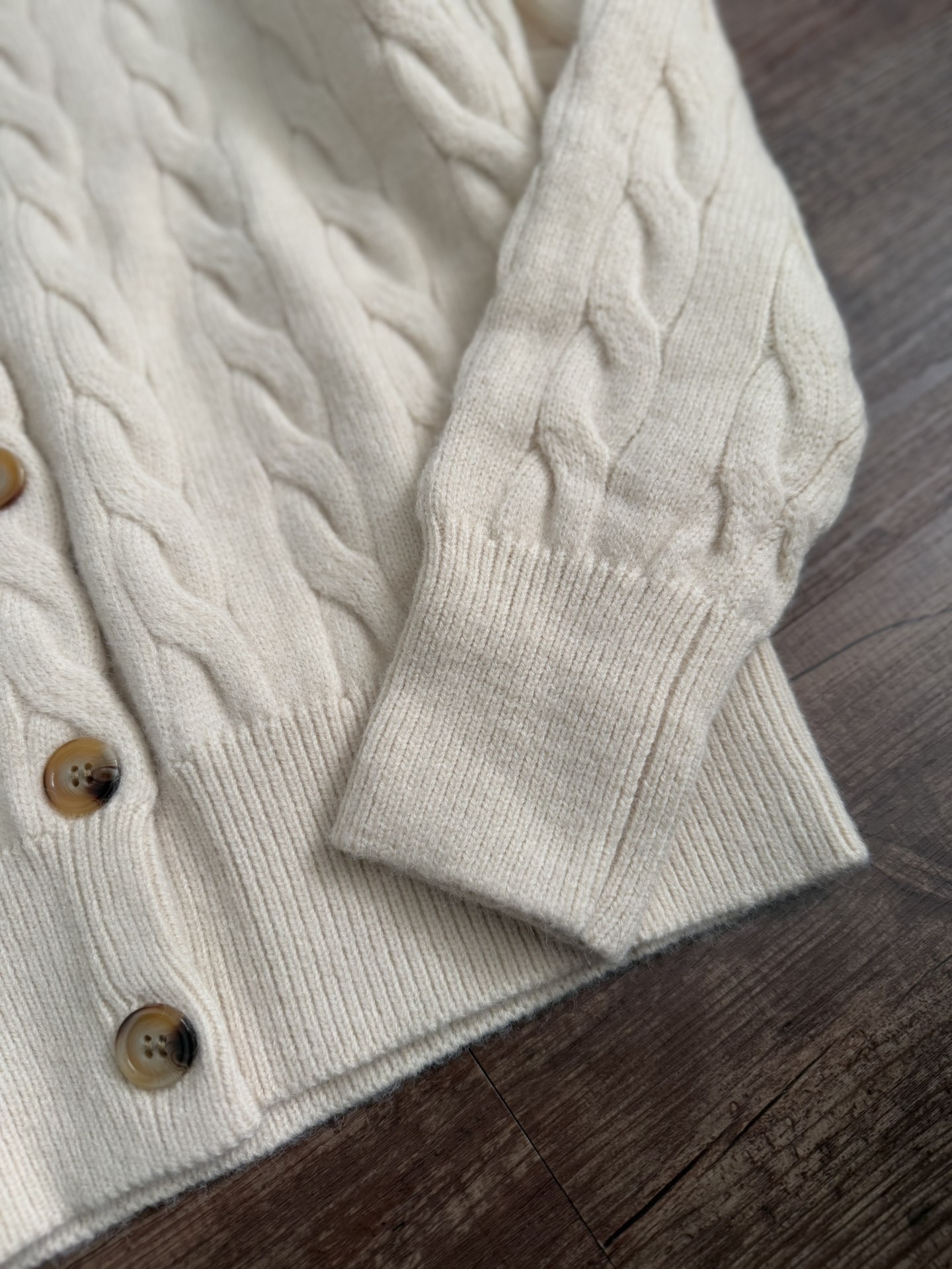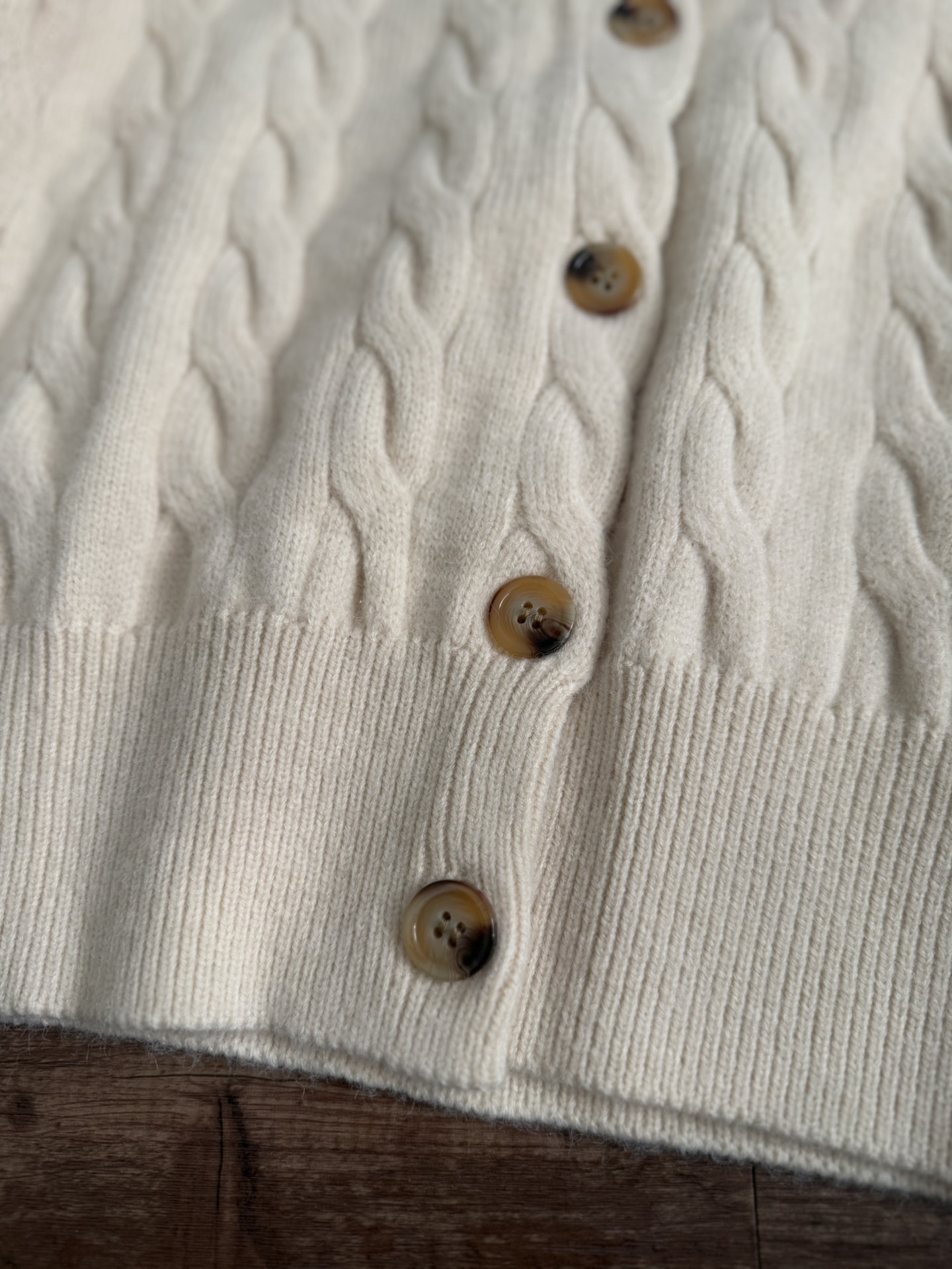 刺绣绞花纹麻花纽绳圆领长袖排扣针织毛衣开衫