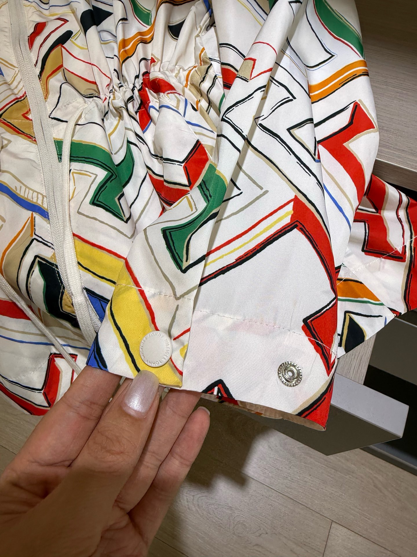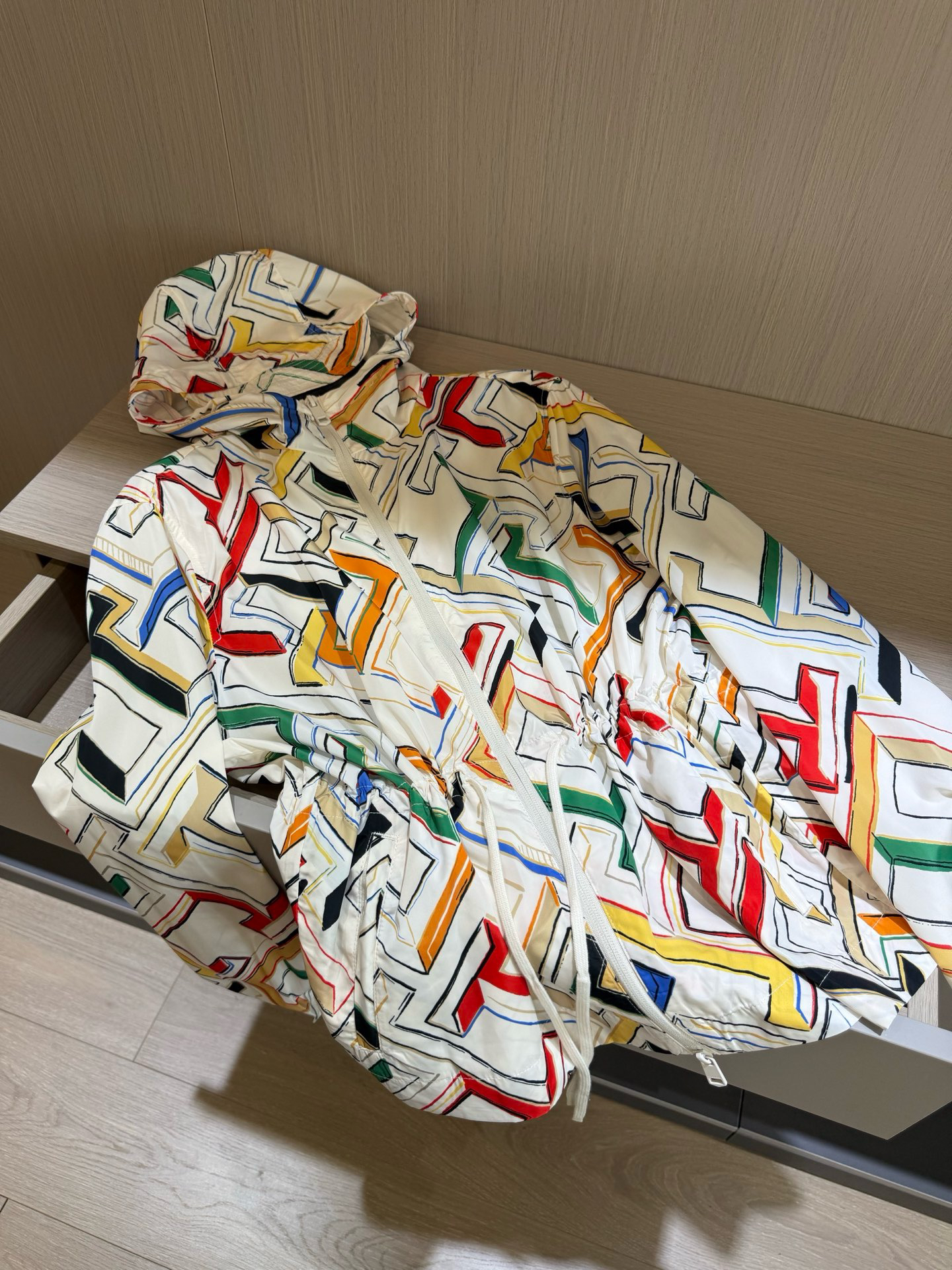 基本按照推荐体重来选就可以,卡码拍小能穿,胸围包容性比较好。100%聚酯纤维梭织面料,单层设计,厚度不是很厚,夏末秋初换季刚需,内里套上卫衣啥的实穿节很长久
