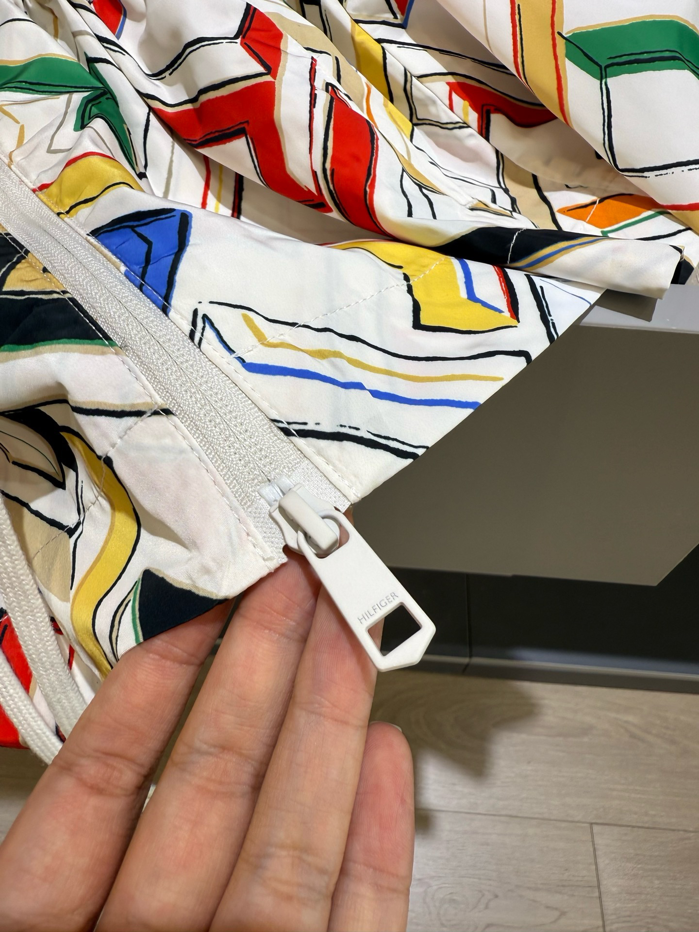 内里接缝采用本布包边设计,做工细致干净,没有多余的线头异物,高级感十足。所有拉链全部采用客供,门襟双向拉链,调节方便,拉动顺滑流畅, 且耐用!