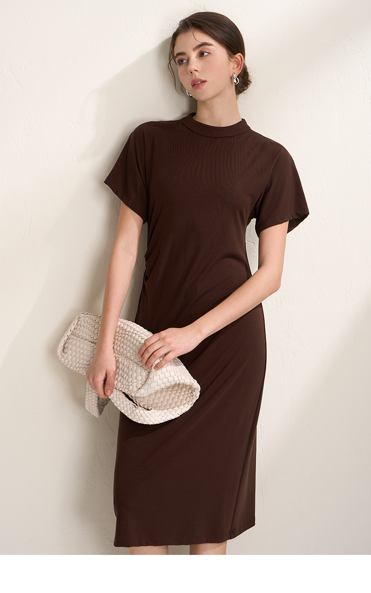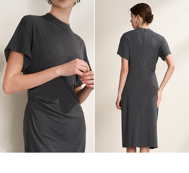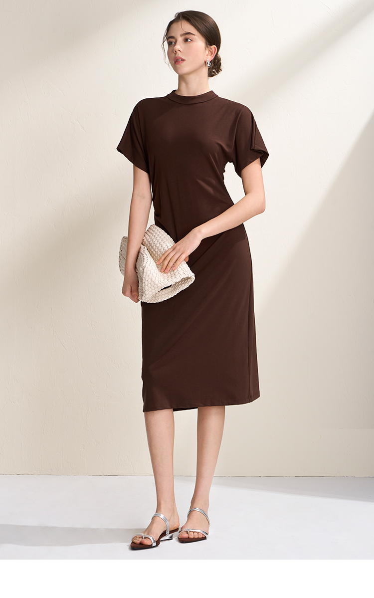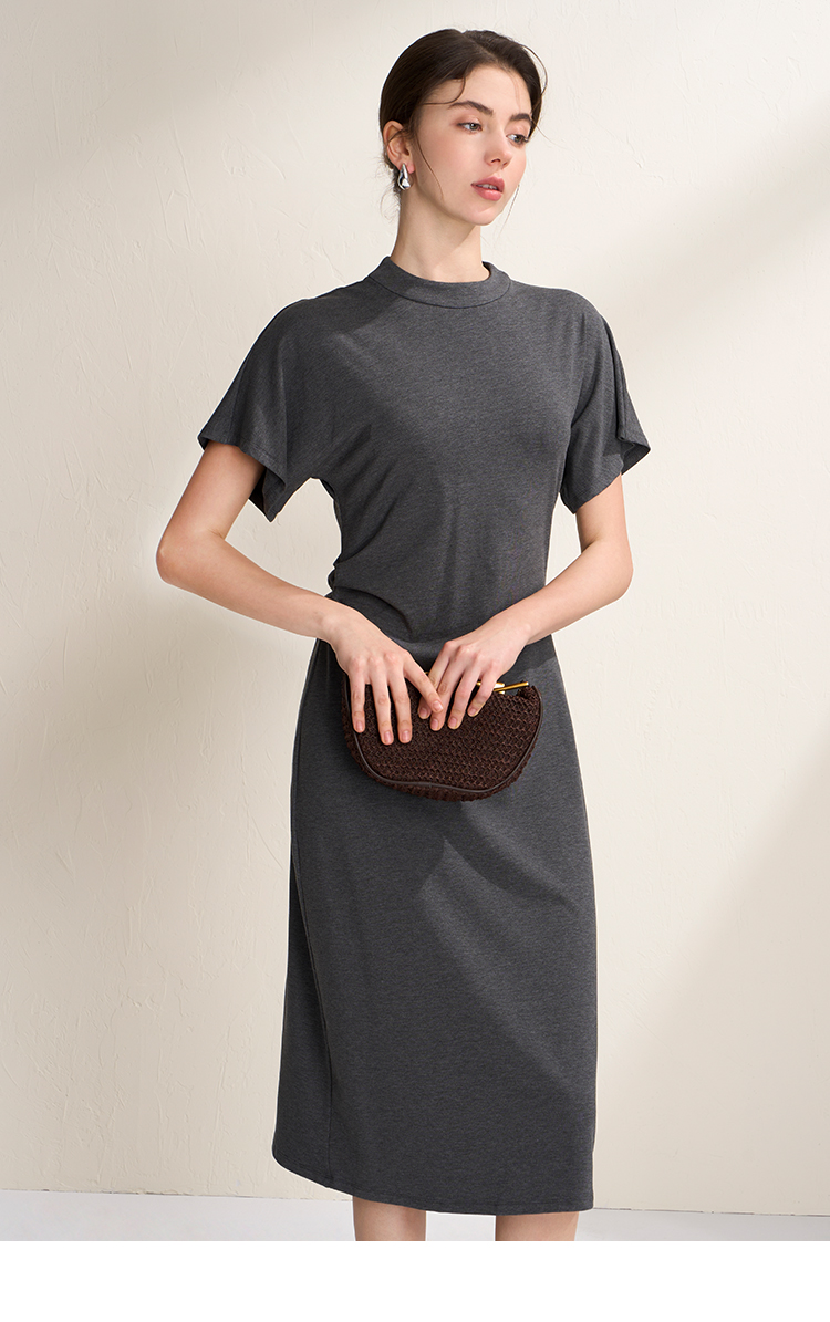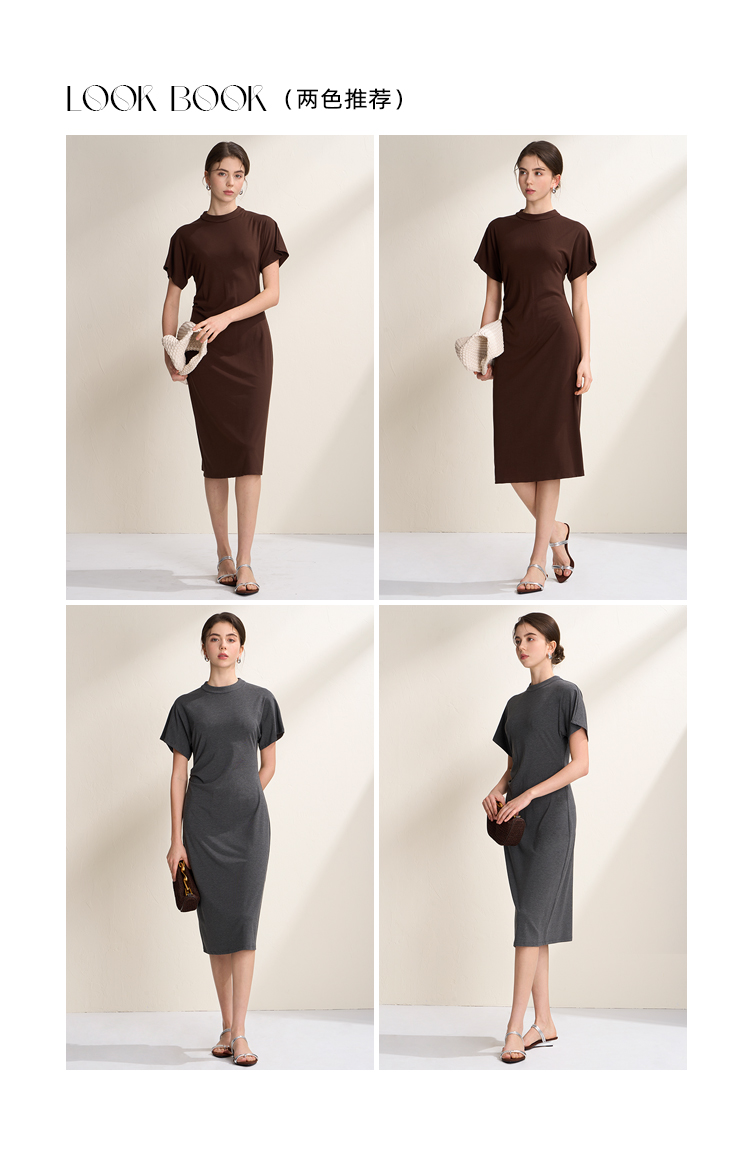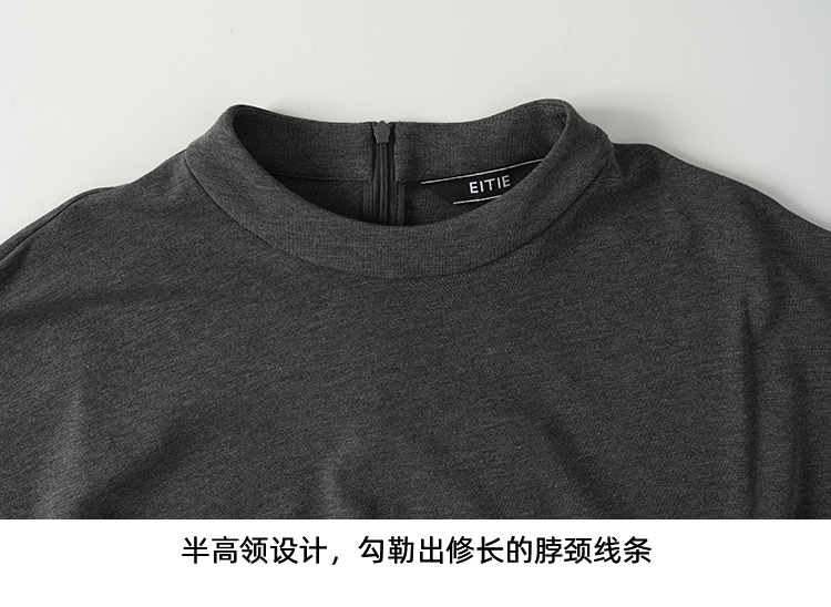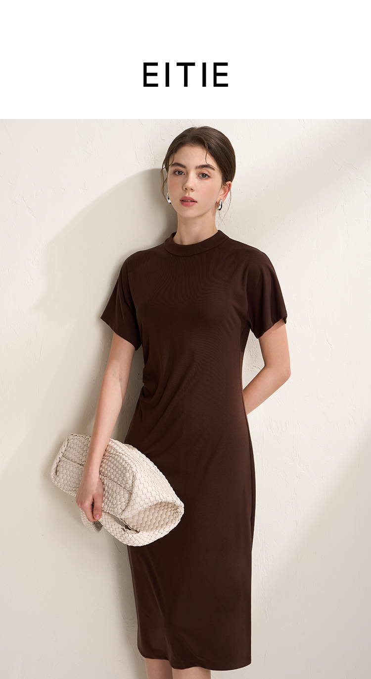EITIE爱特爱气质立领修身弹力极简莫代尔落肩连衣裙2026夏季新款B2607226
