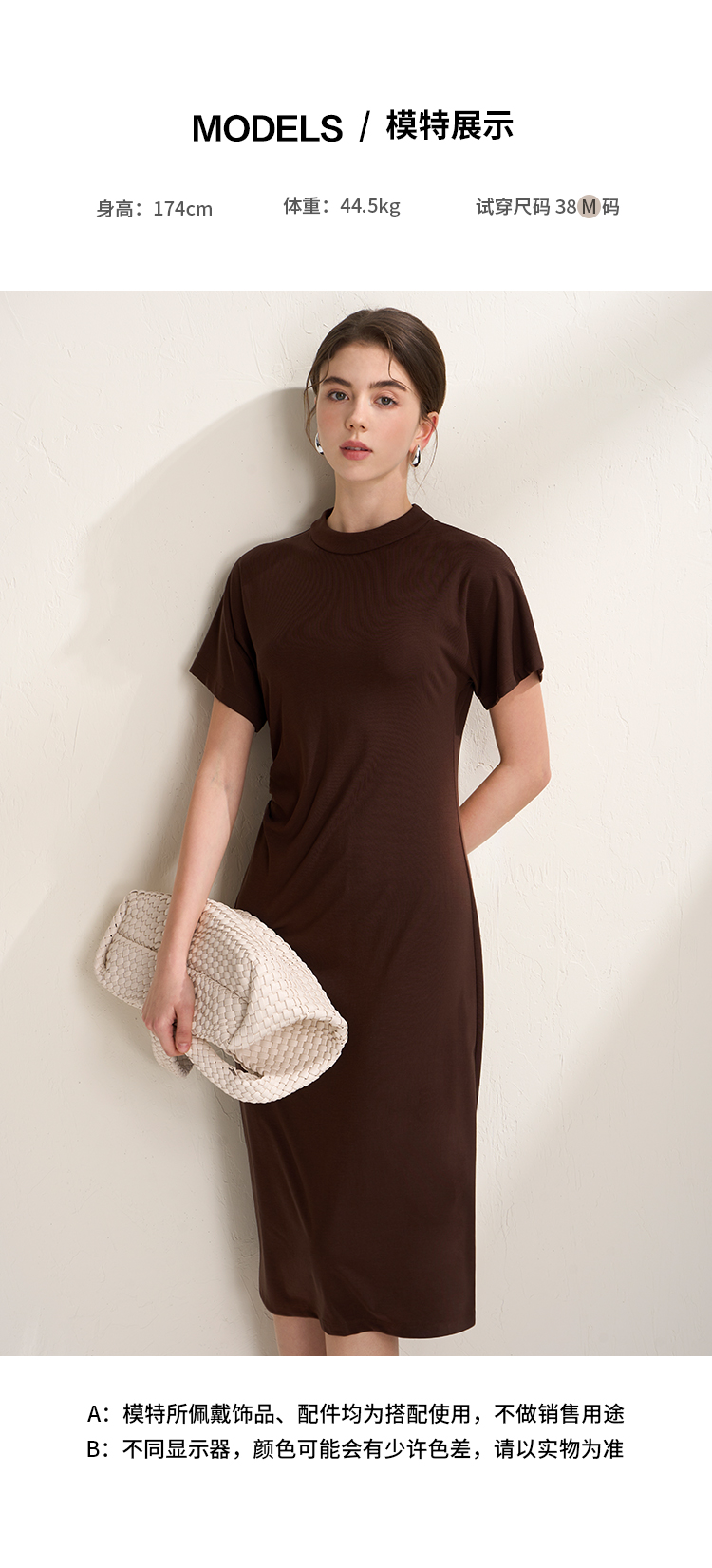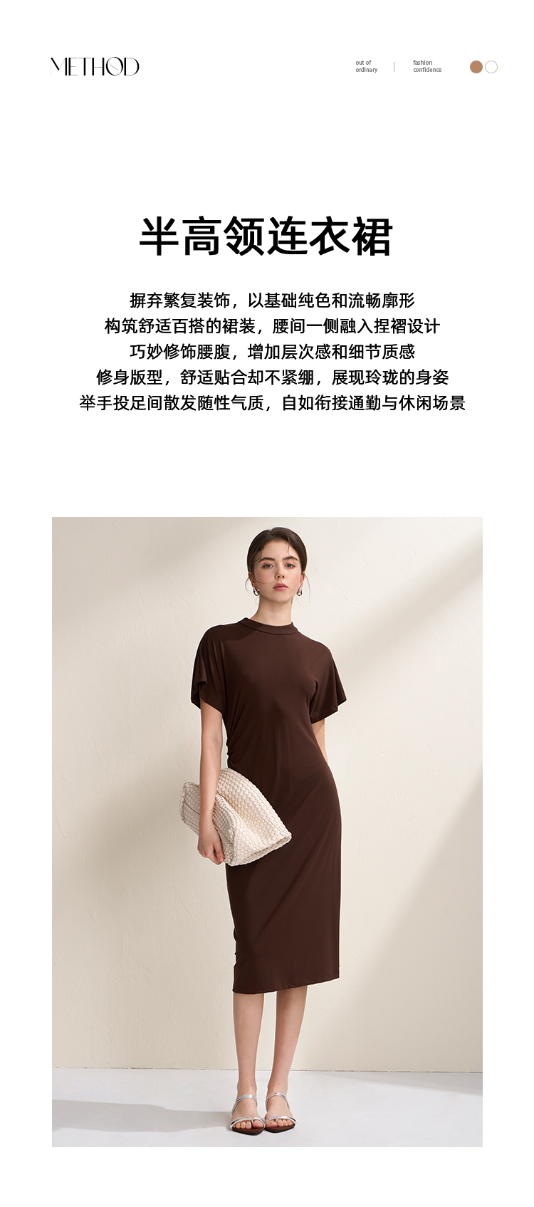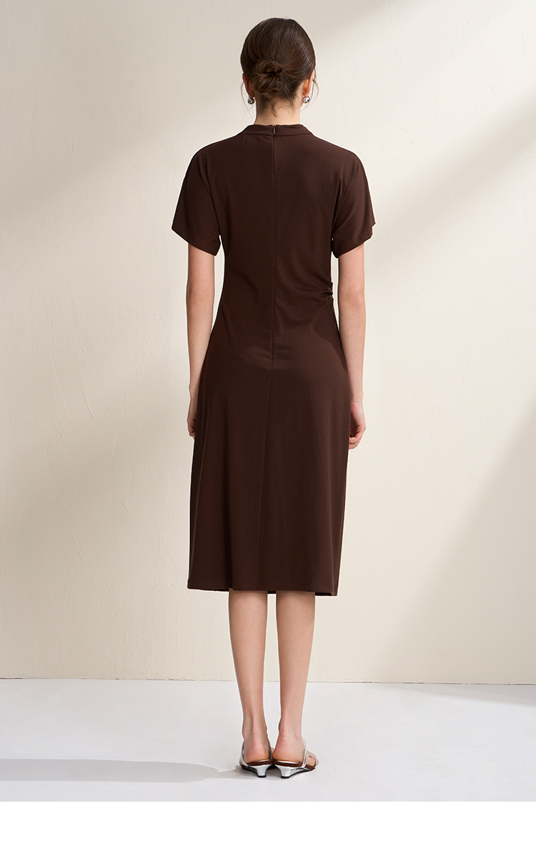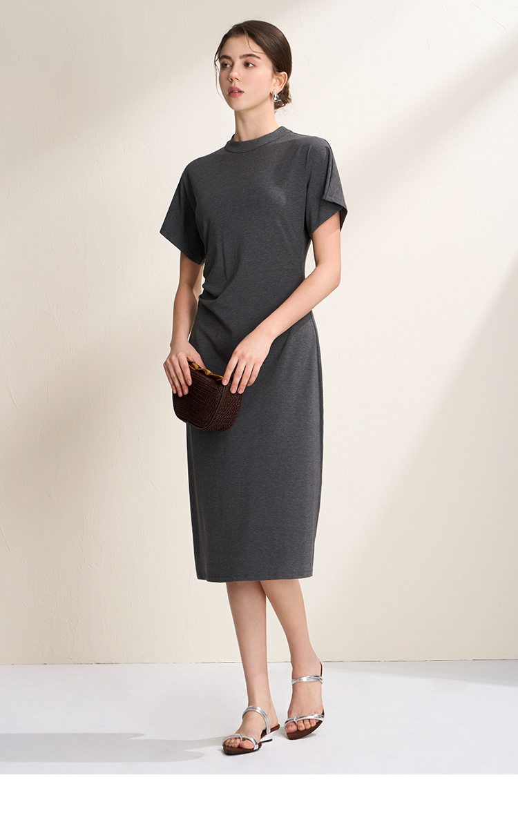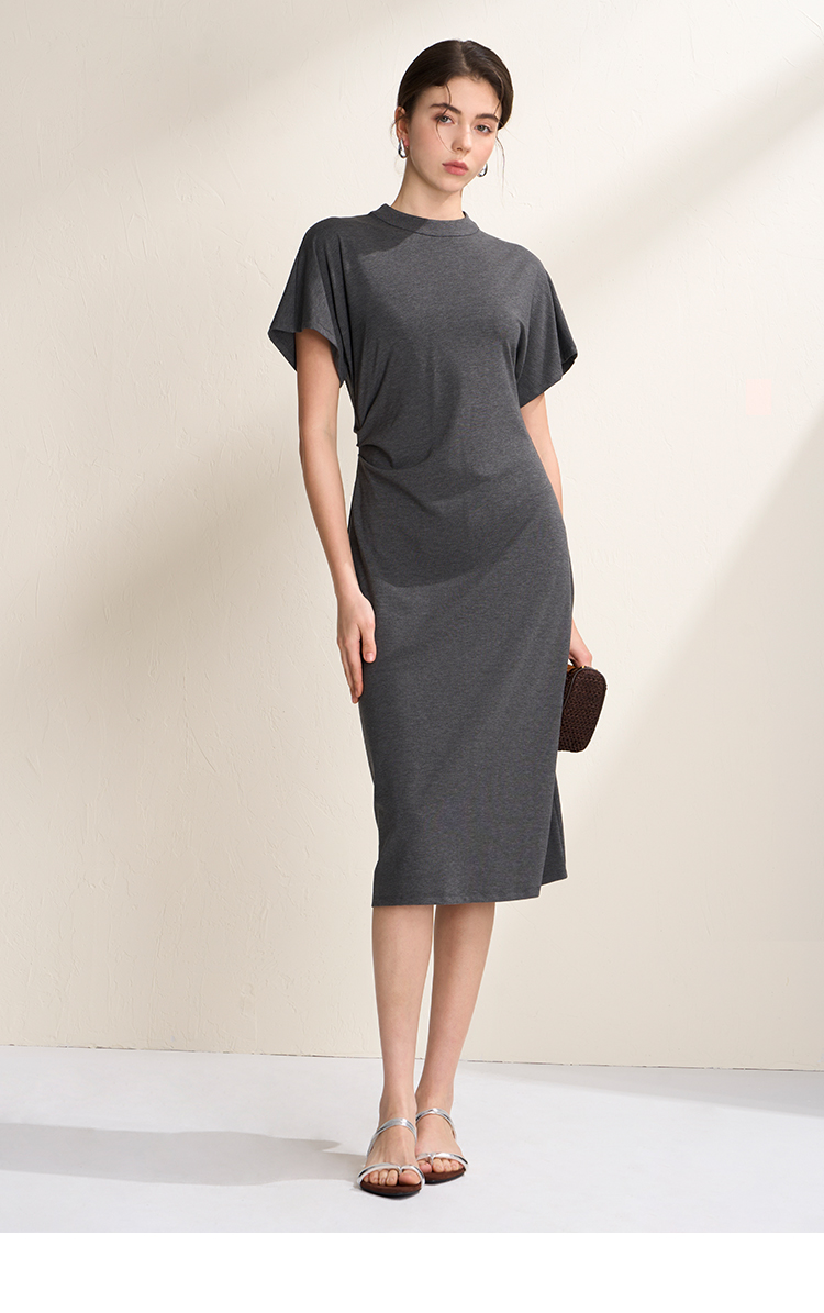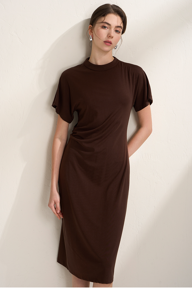 EITIE爱特爱气质立领修身弹力极简莫代尔落肩连衣裙2026夏季新款B2607226