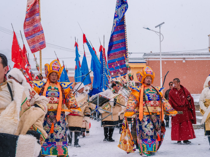 住宿:合作 行程安排:拍摄西仓寺亮宝节盛装巡游、跳神法舞,捕捉服饰细节与民众神情,结束后前往合作入住。