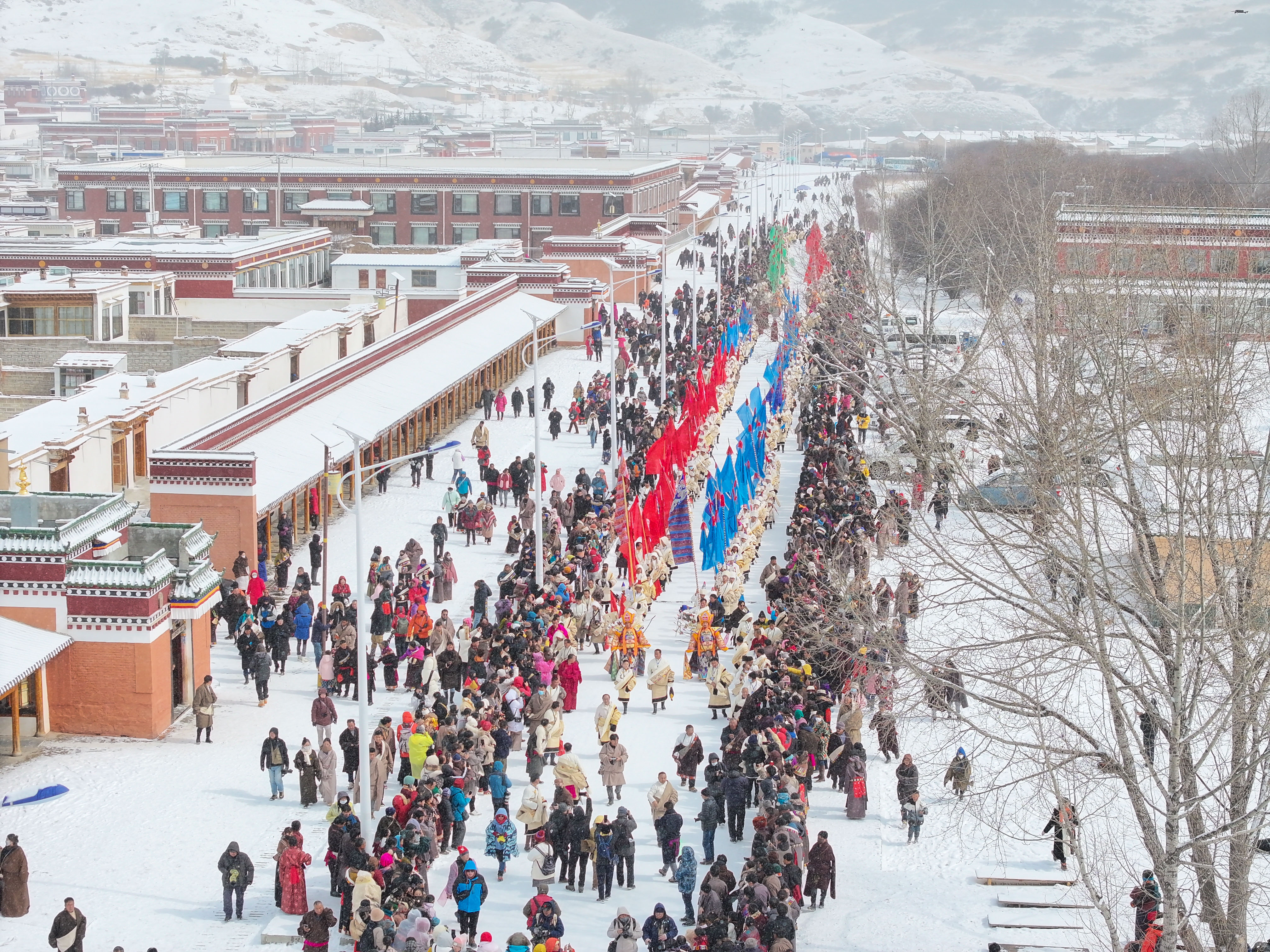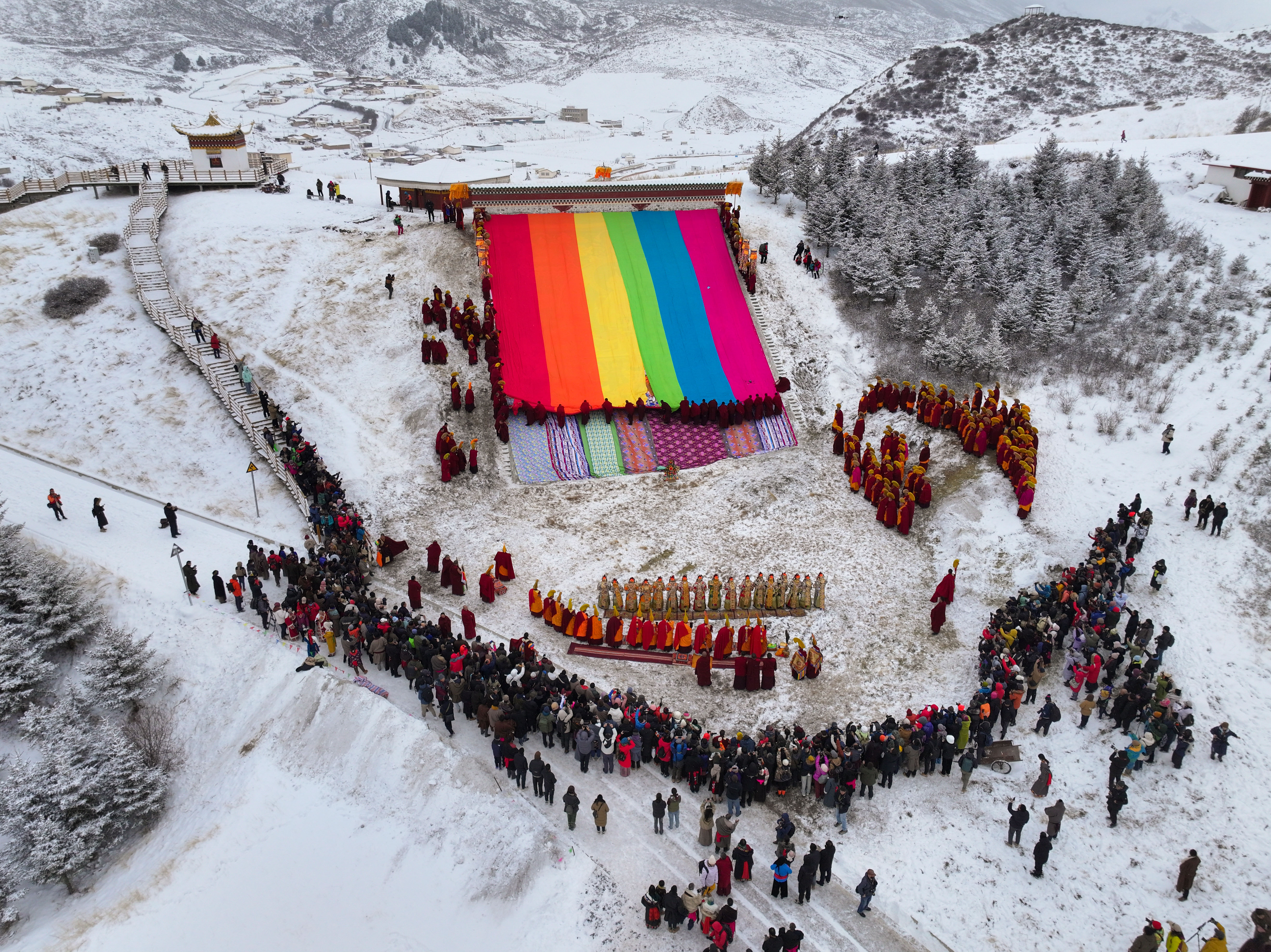 正月的甘南藏着藏地年味的极致模样:郎木寺晒佛唐卡展卷,数万信众虔诚朝拜;西仓亮宝节盛装巡游,珠宝服饰映耀草原;拉卜楞寺酥油花灯夜,万盏灯火映圣境。