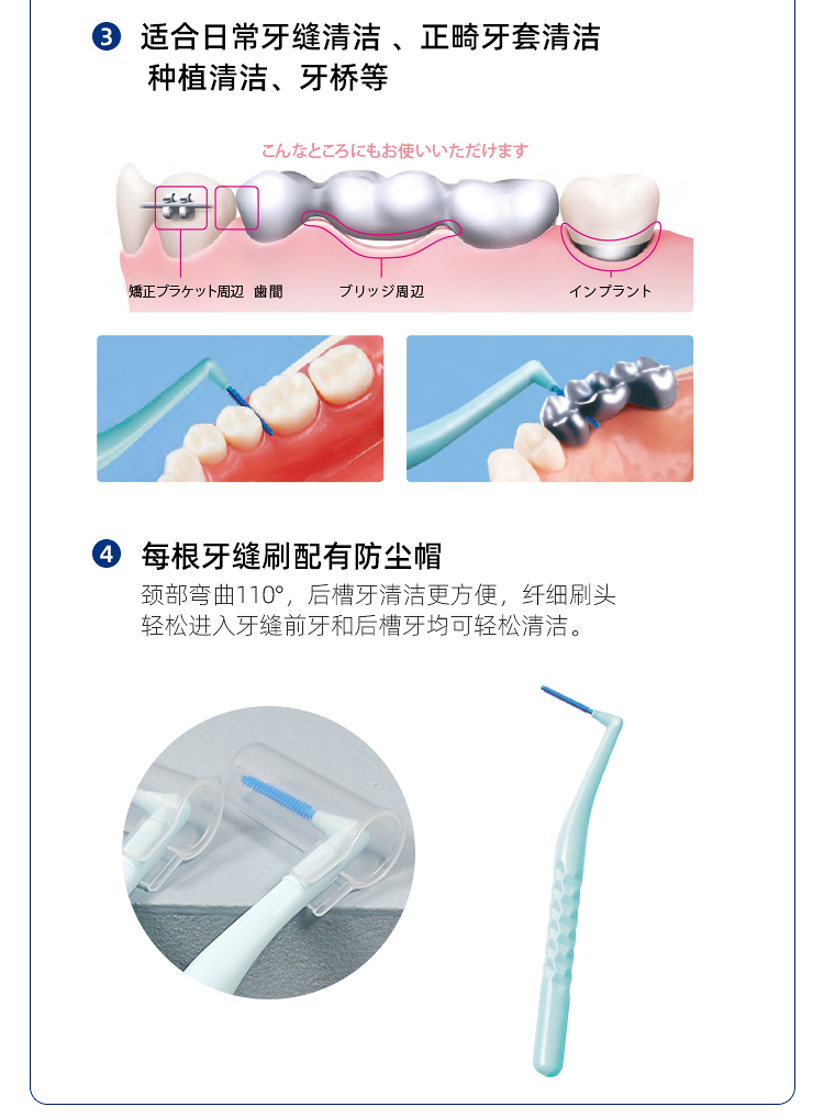 【品牌直发】包邮!日本进口狮王L型无钢丝牙缝刷S~M (4支装)
