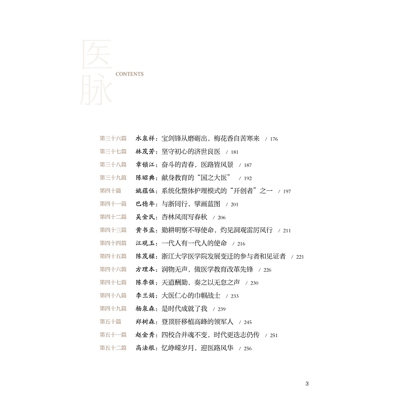 《医脉相承:“口述历史”访谈录(第一辑)》通过对58位浙医校友进行访谈,凝聚学院领导、师生、校友的智慧与力量,全面回顾浙江大学医学院的百十年发展的壮美华章,挖掘医学院在建党百年四个历史阶段(新民主主义革命时期、社会主义革命和建设时期、改革开放和社会主义现代化建设时期和中国特色社会主义新时代);医学院重要发展阶段(创办浙江医学专门学校、创办国立浙江大学医学院、成立浙江医学院、改名浙江医科大学、浙江大学四校合并后重组医学院、医学院进入新时代新阶段)沉淀深厚的学院文化底蕴,展现一代代浙医人励精图治,同频共振的奋斗历程,凝聚浙医人爱院荣院情怀,诠释医学院发展历史的壮美华章,不断激发师生校友干事创业热情,凝心聚力共创学院事业发展。