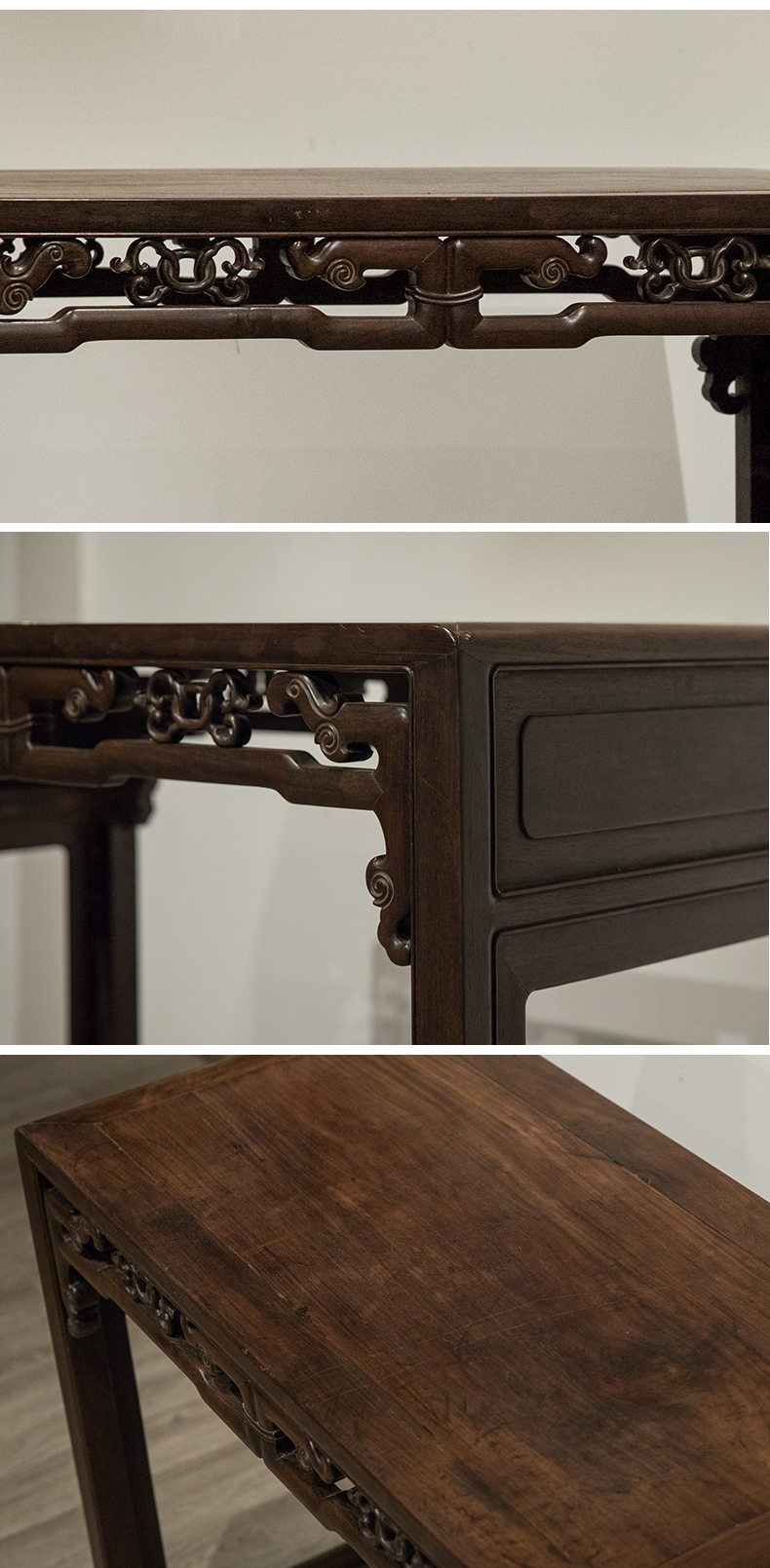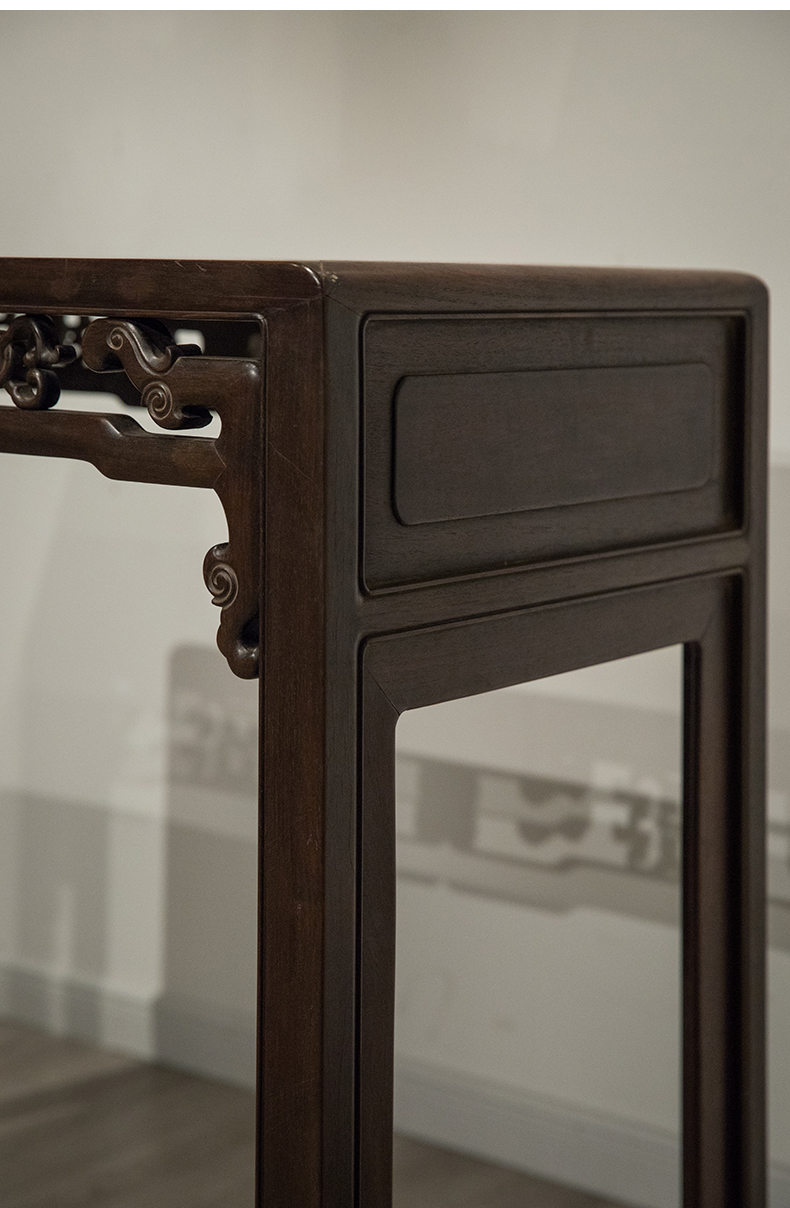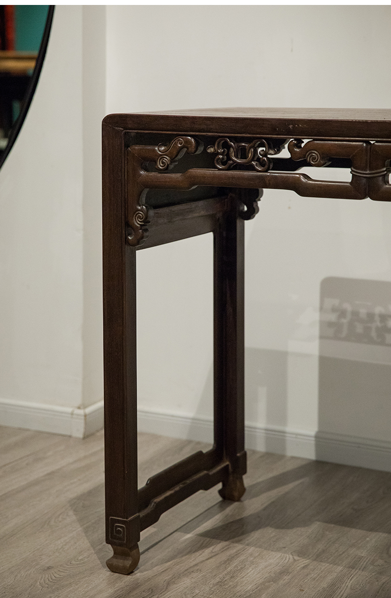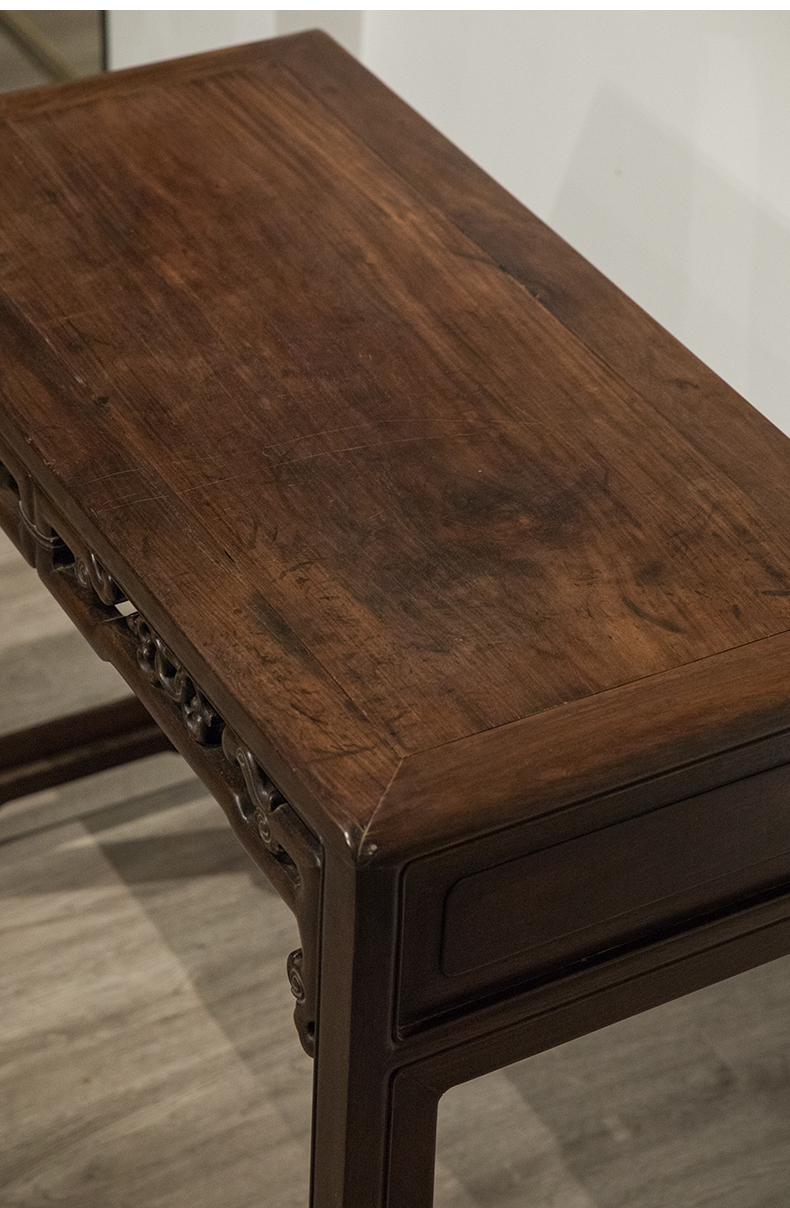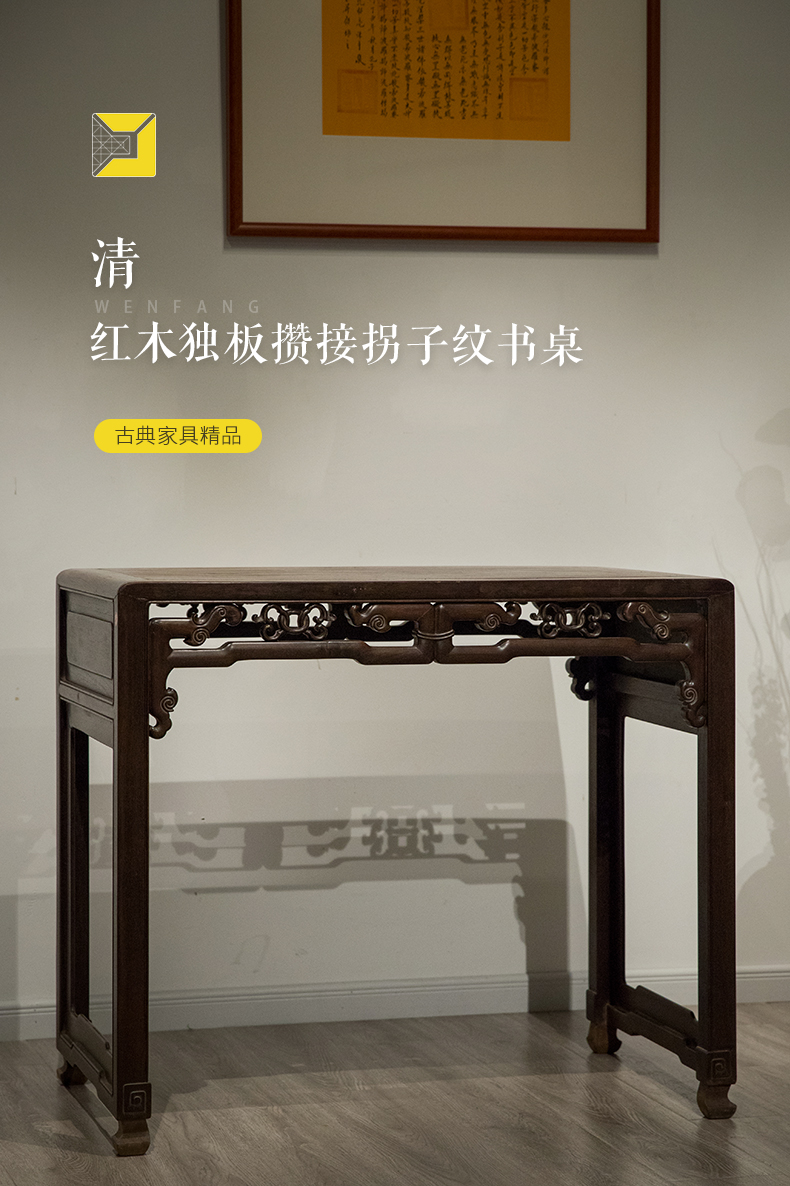 清 红木独板攒接拐子纹书桌