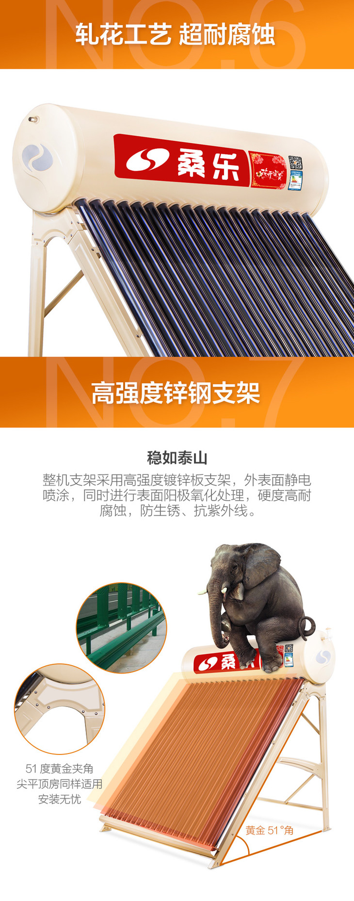 桑乐(SANGLE)太阳能热水器家用 花开富贵180*20