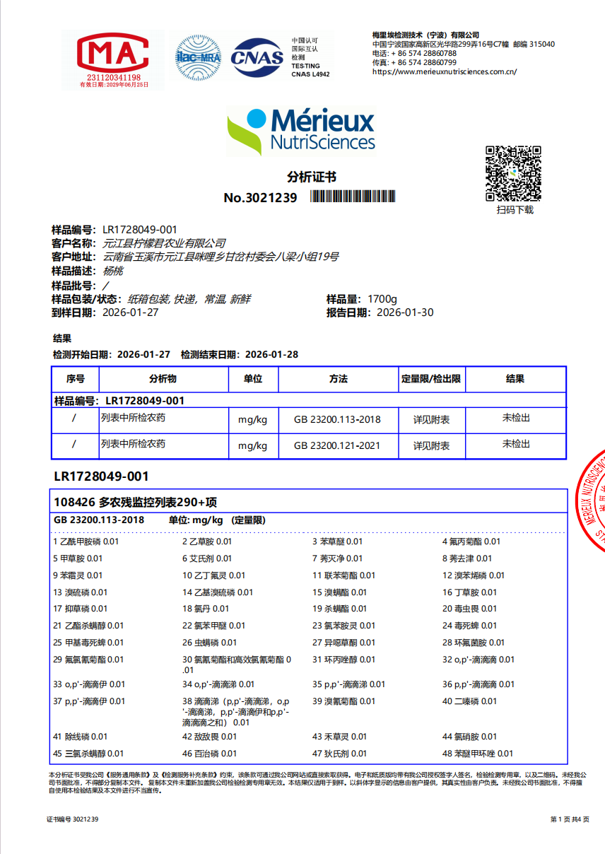 杨桃检测报告