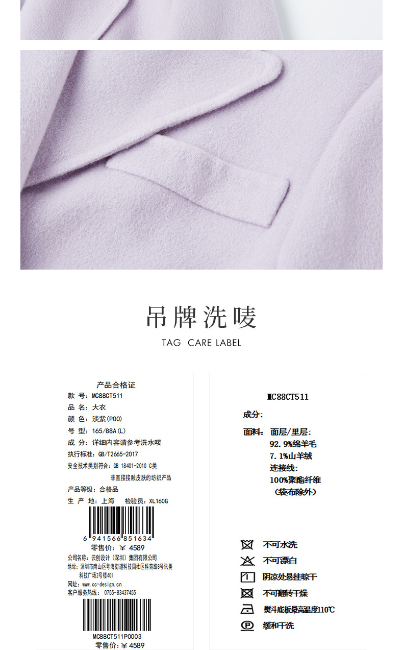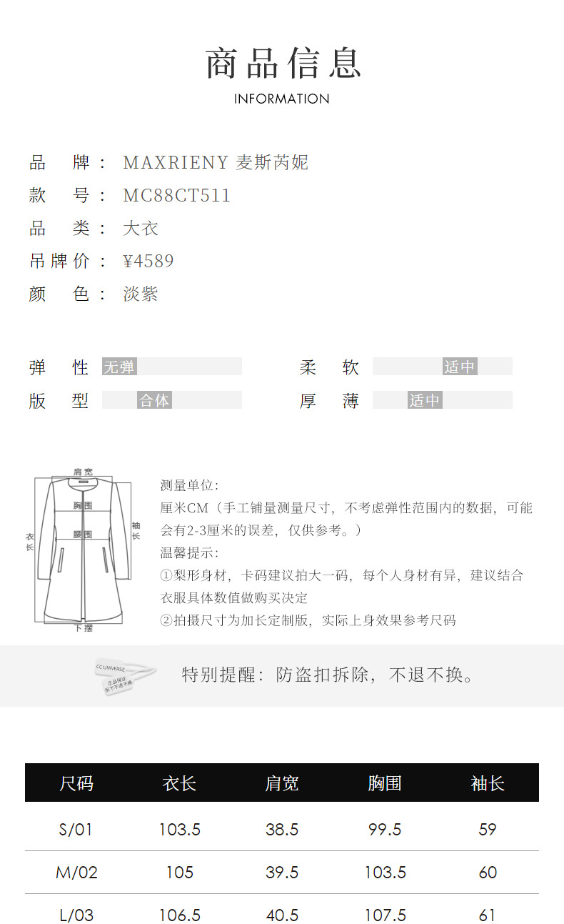 MAXRIENY极简垂坠感直身大衣长款过膝毛呢外套(货号:MC88CT511)