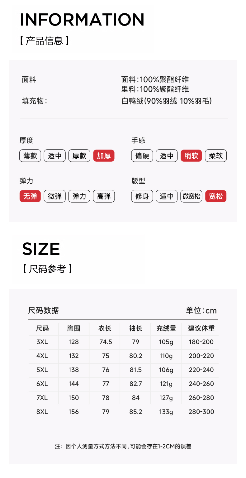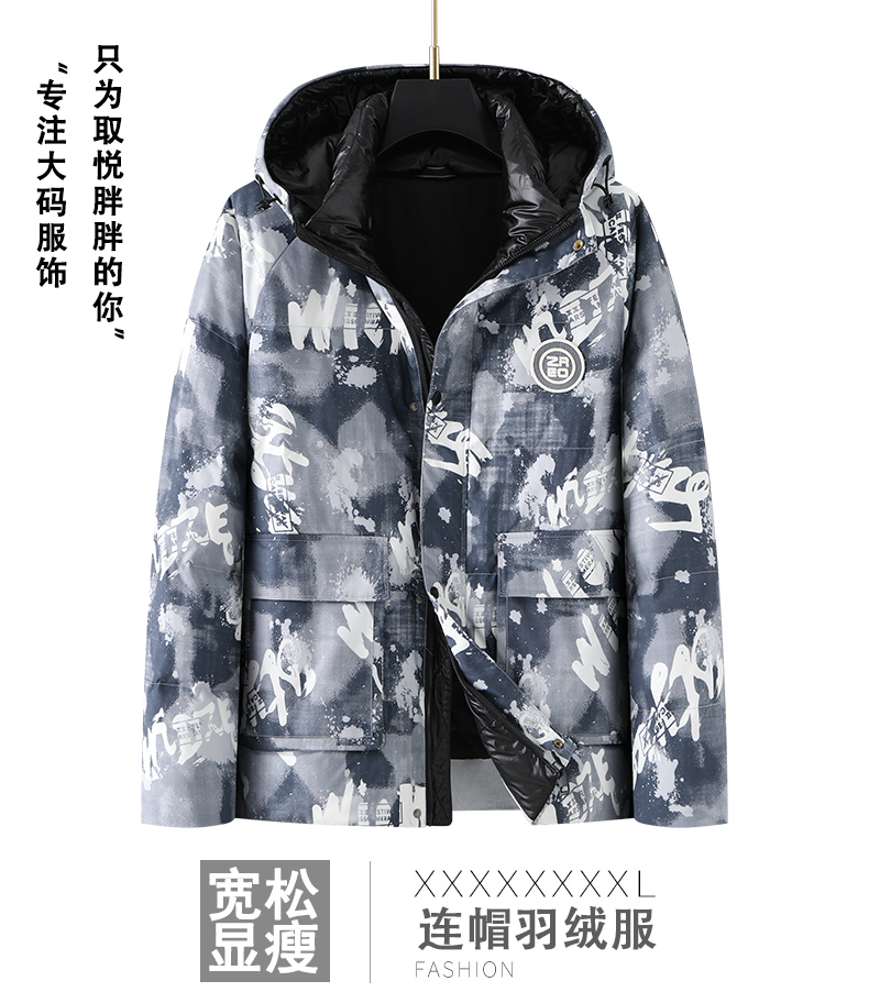 【实体店同款】【新款DPX】大依优型大码连帽工装羽绒服90%白鸭绒外套加肥加大肥佬休闲上衣男士胖子时尚