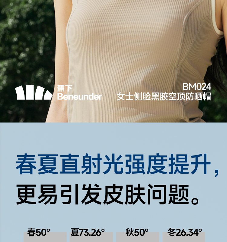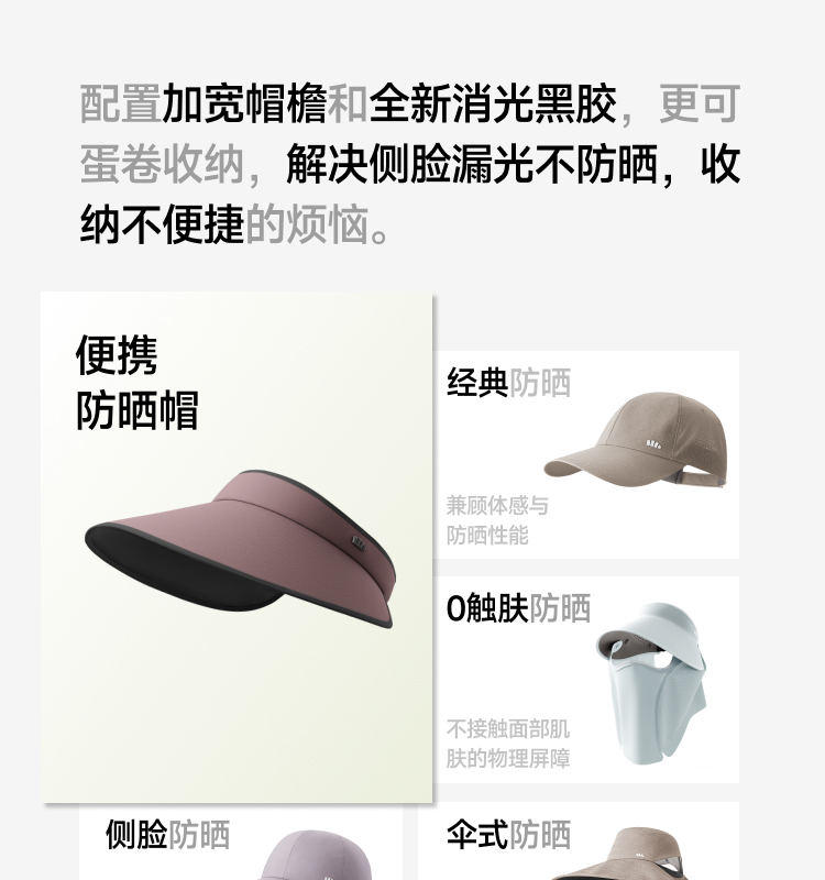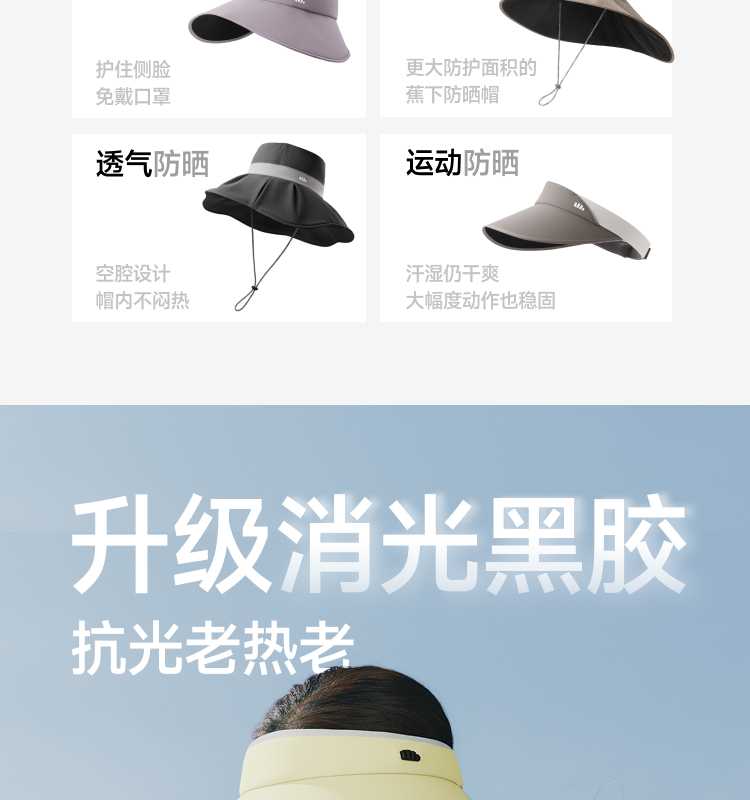 【26春夏新品】蕉下女士侧脸黑胶空顶防晒帽BM024