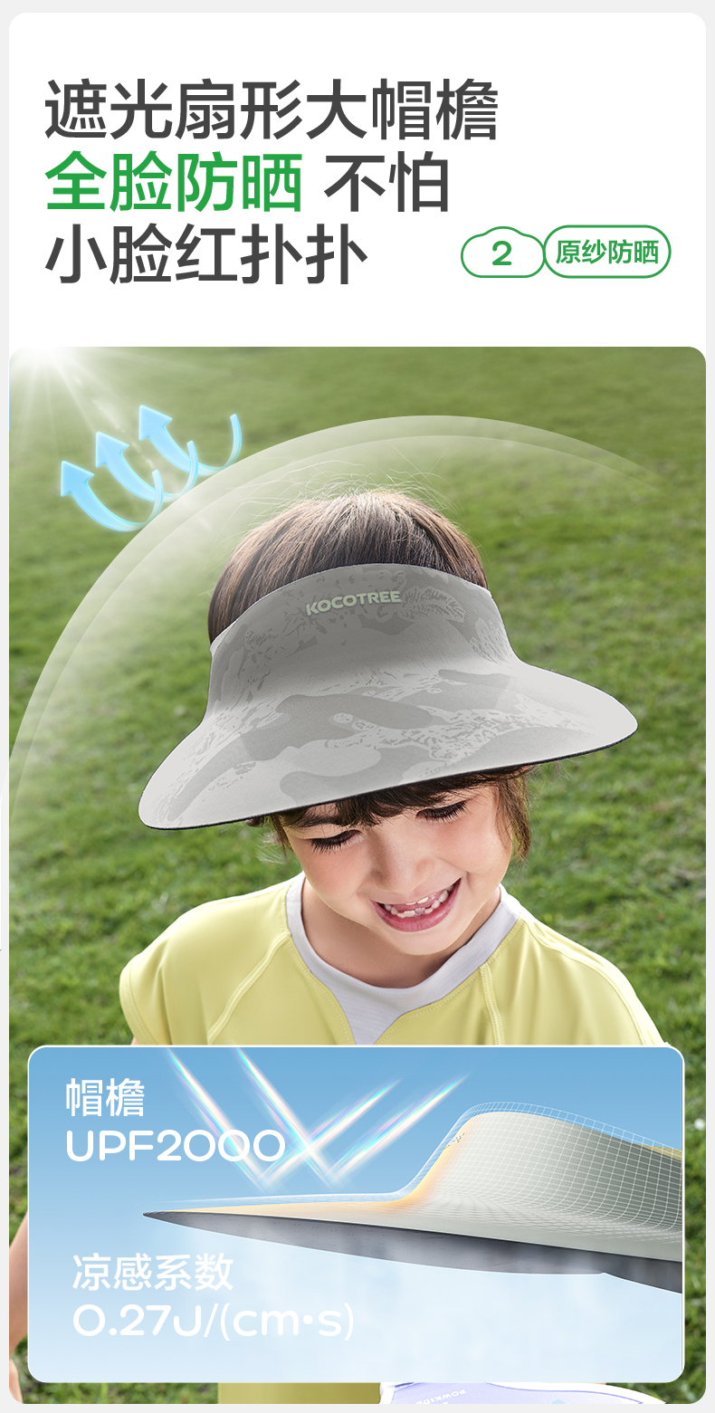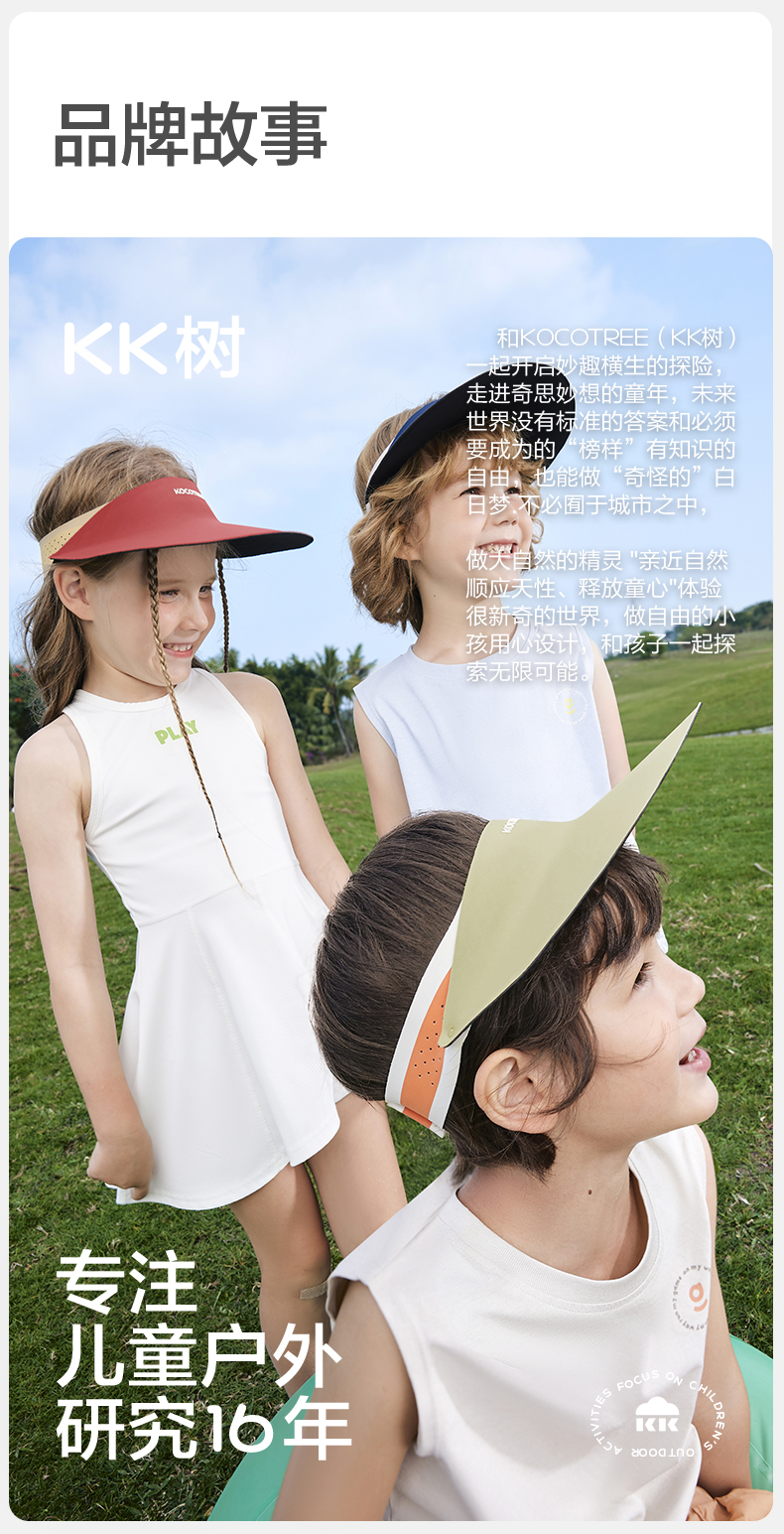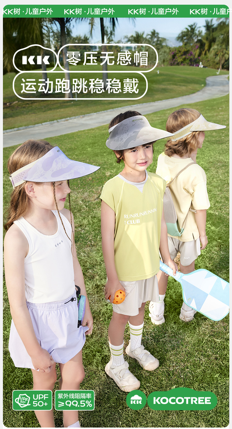 KK树原纱儿童防晒帽夏季男童女童户外遮阳帽宝宝空顶太阳帽大帽檐零压运动一体帽