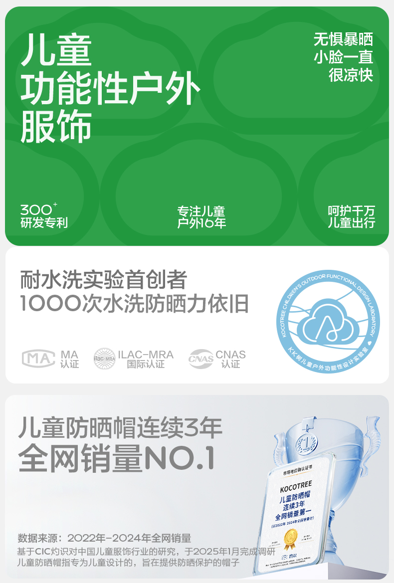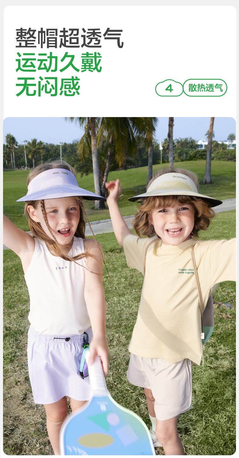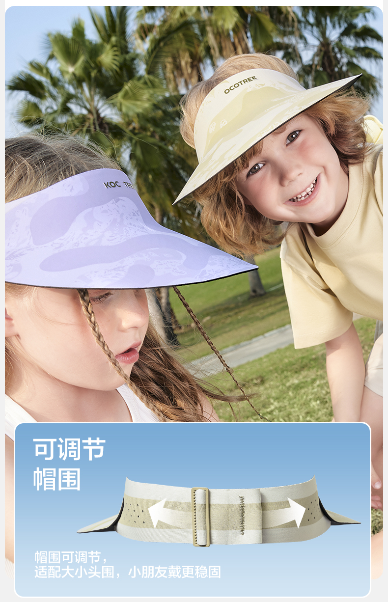 KK树原纱儿童防晒帽夏季男童女童户外遮阳帽宝宝空顶太阳帽大帽檐零压运动一体帽