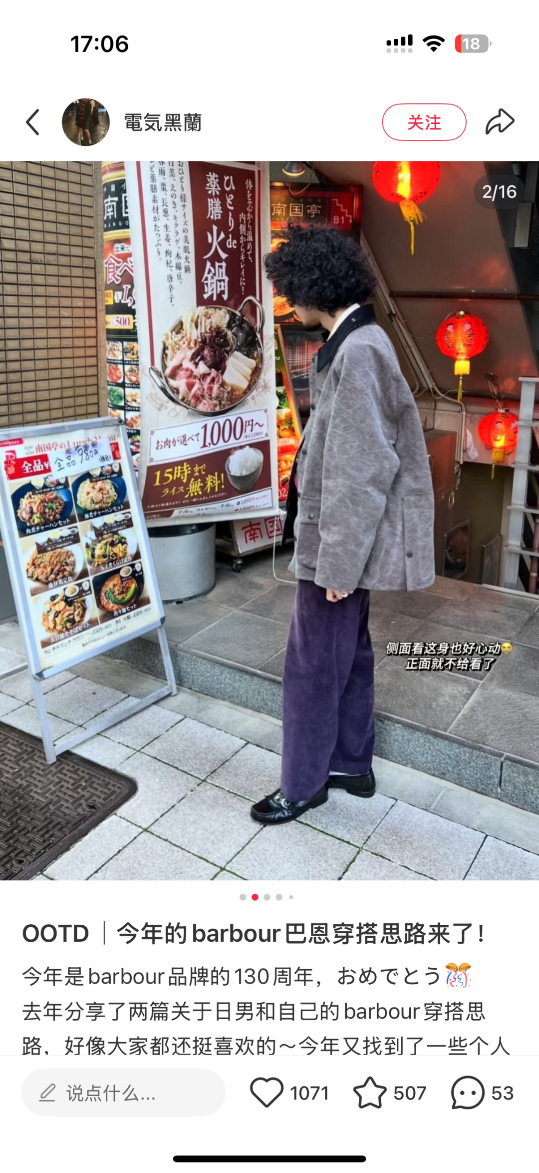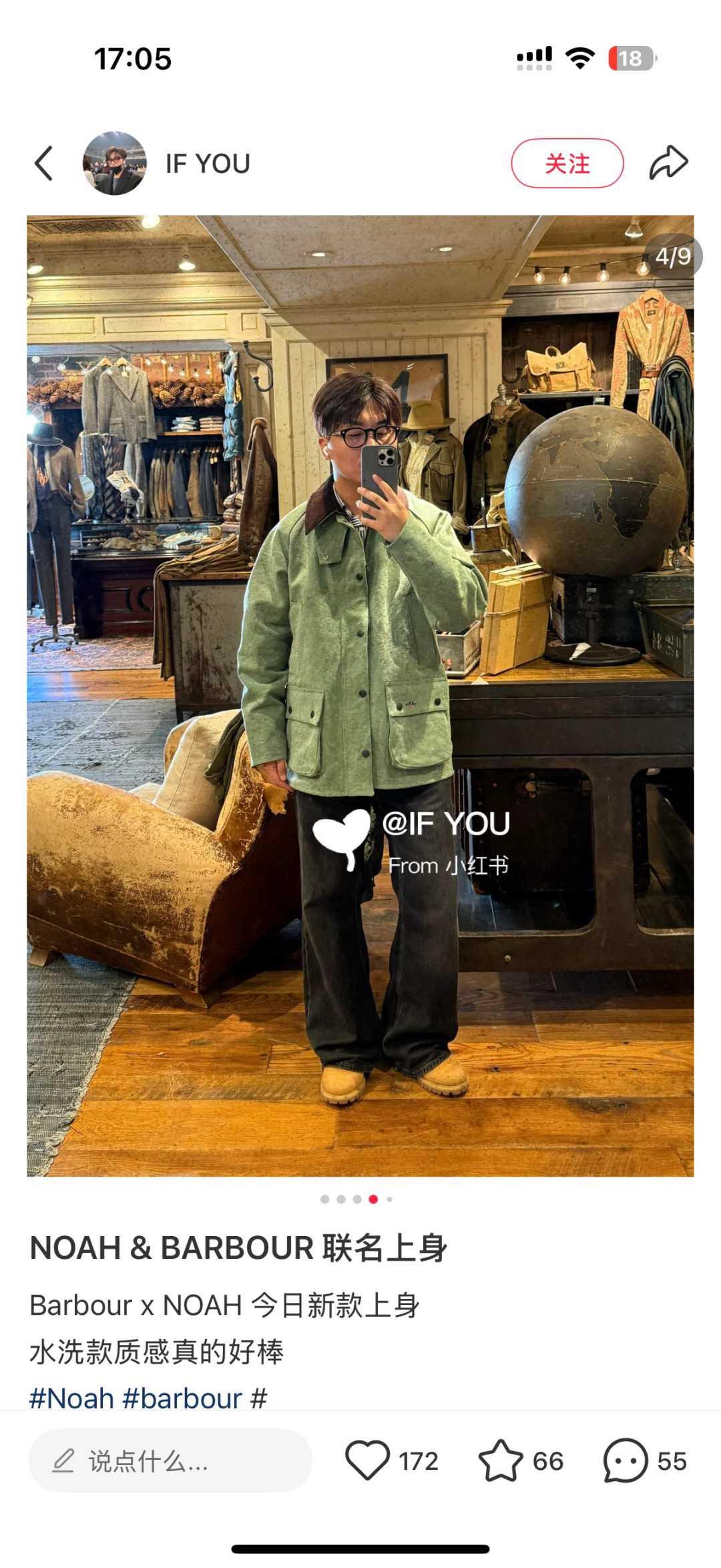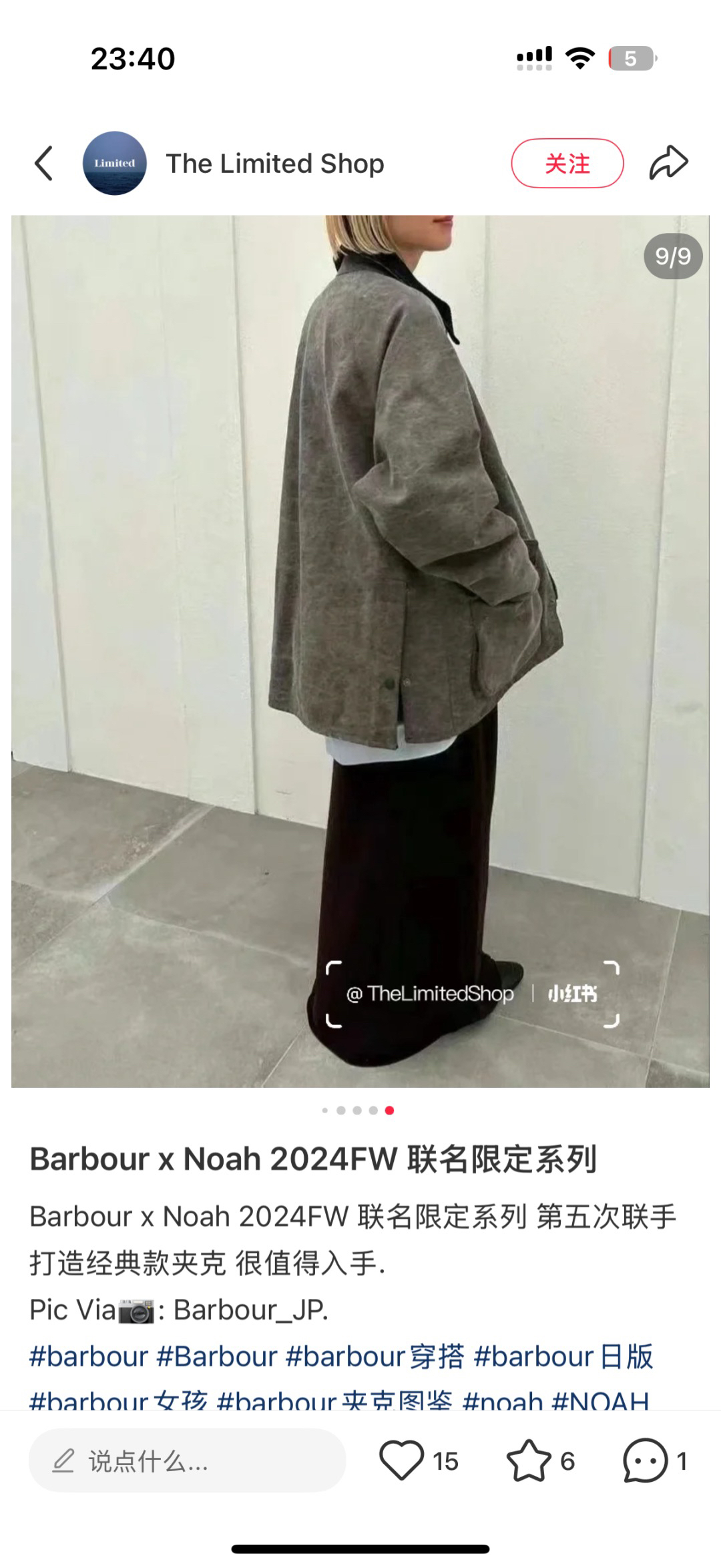 马思纯日本博主同款Barbour Noah 联名款夹克外套
