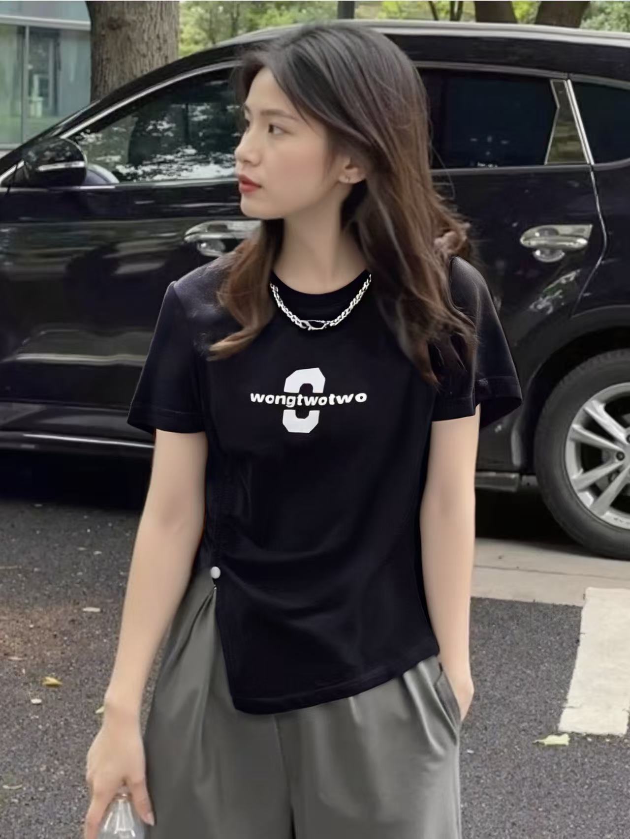 七夕福利-NO退 微脏~不规则可抽绳C印花短袖T恤-喜出