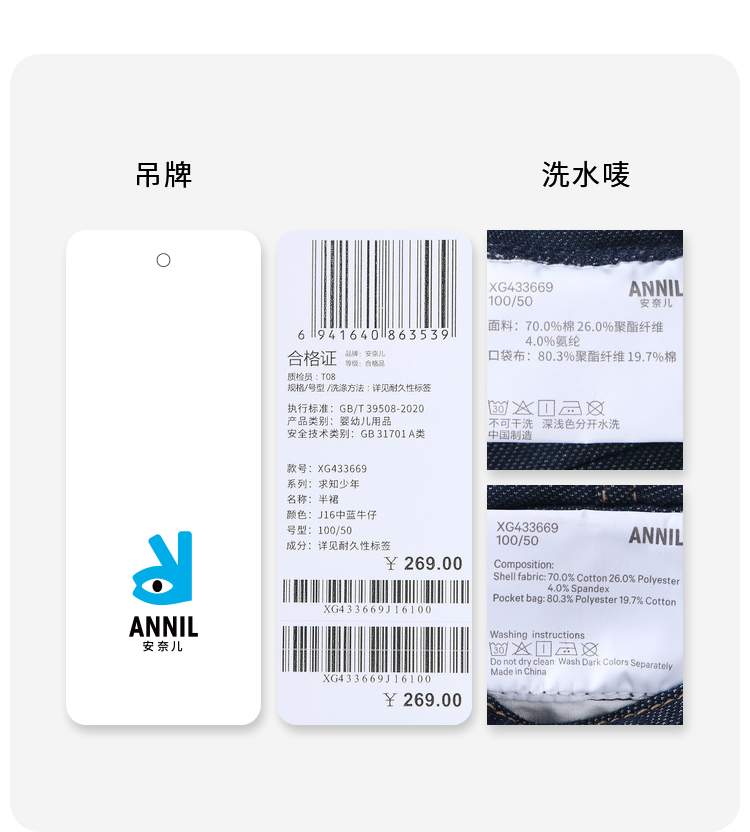 女童防褪色牛仔半裙新款安奈儿童装实体店同款XG433669