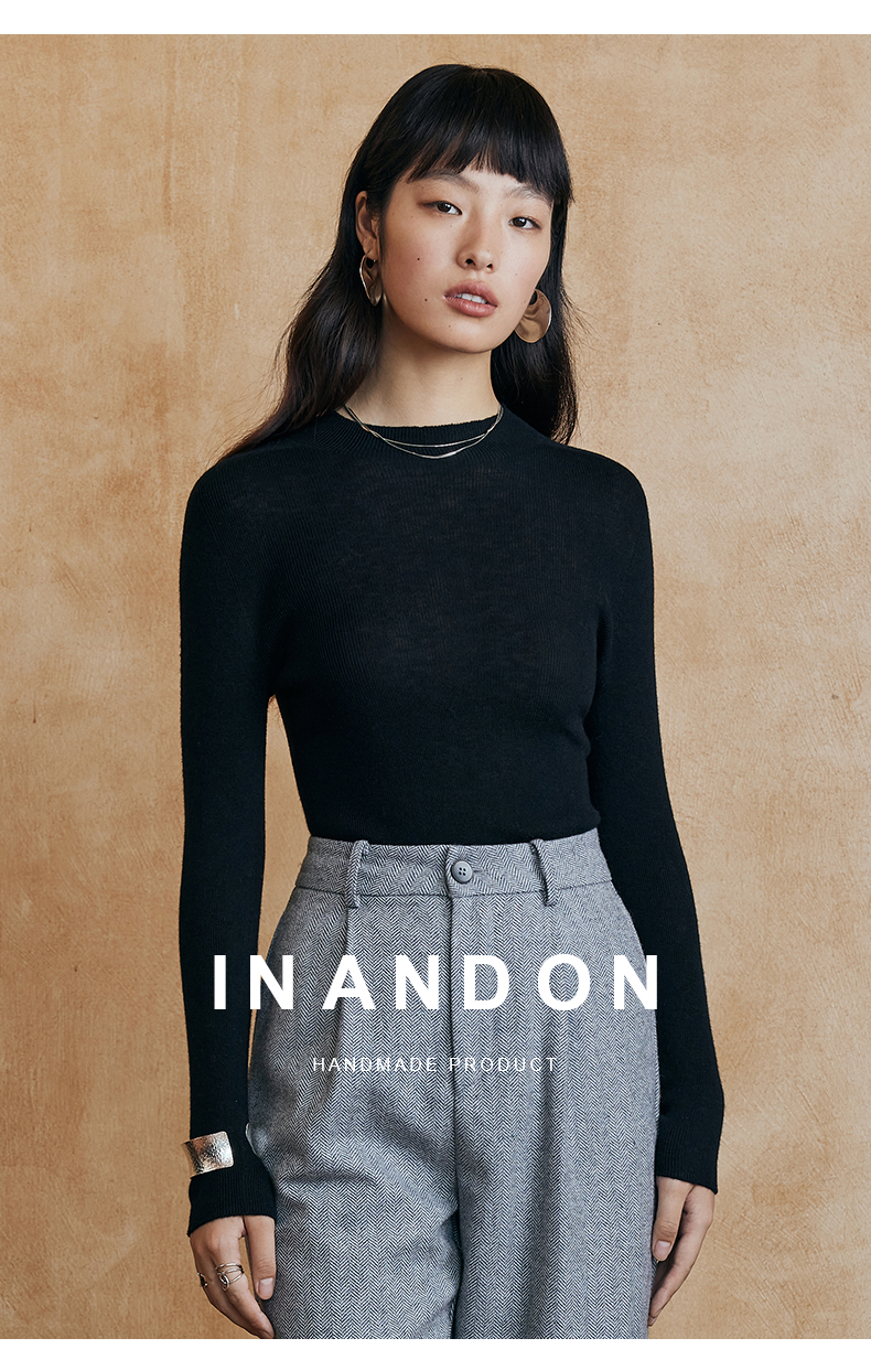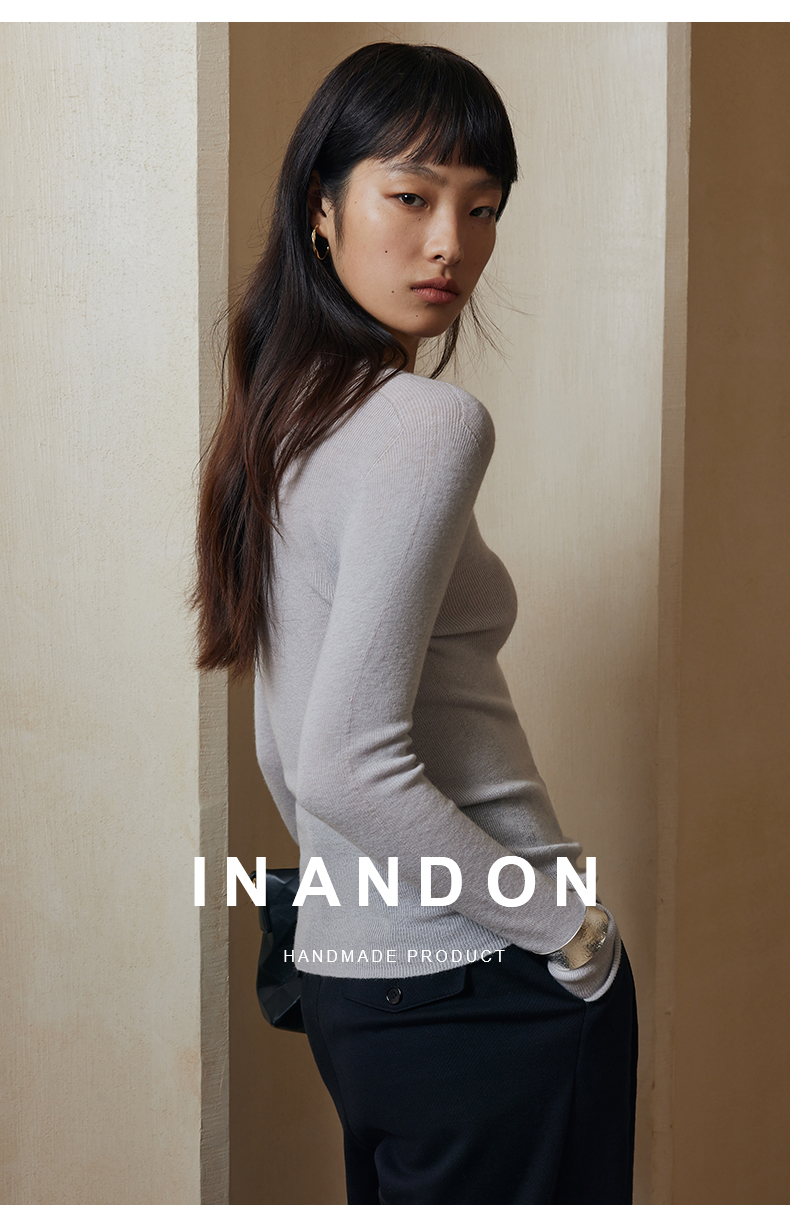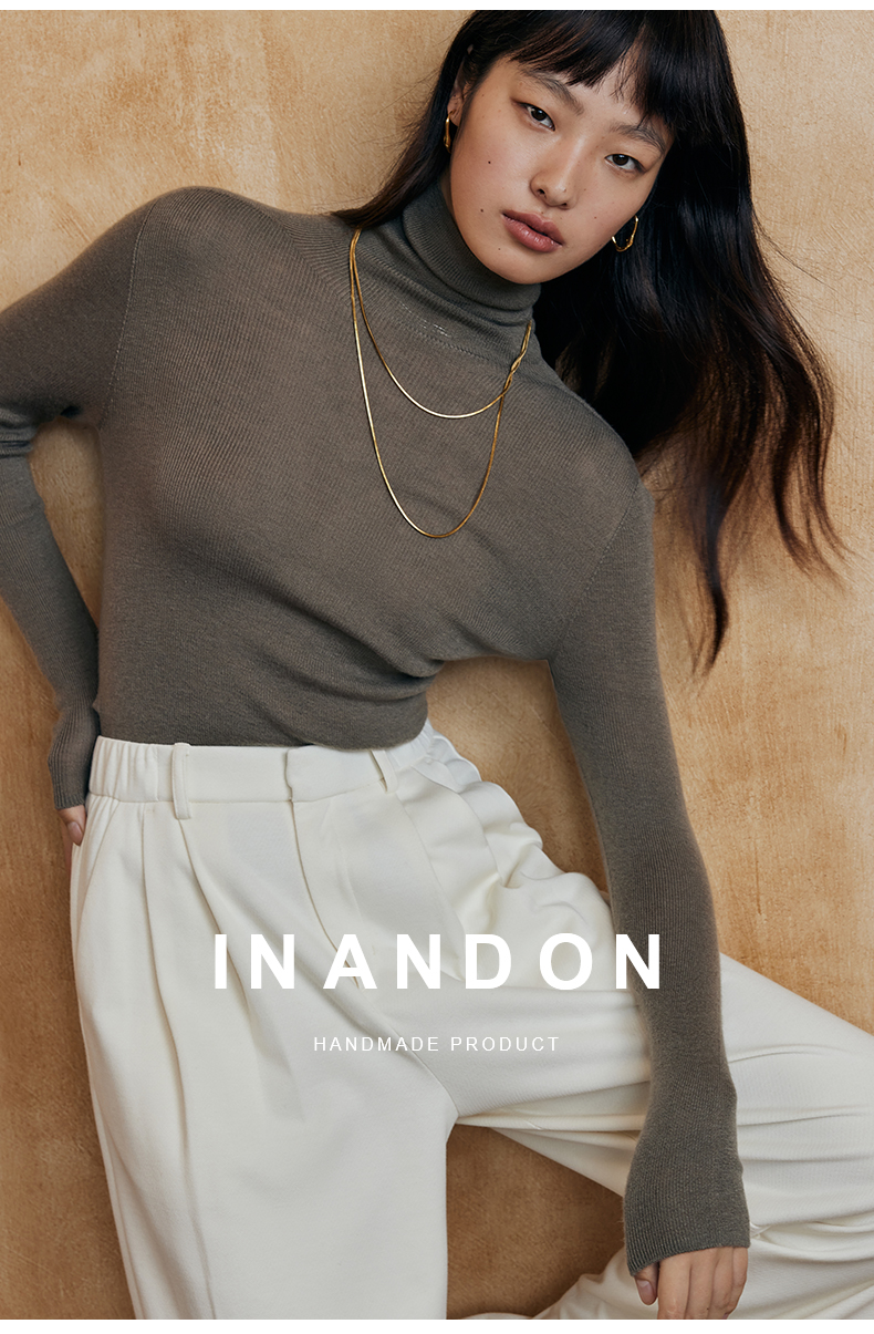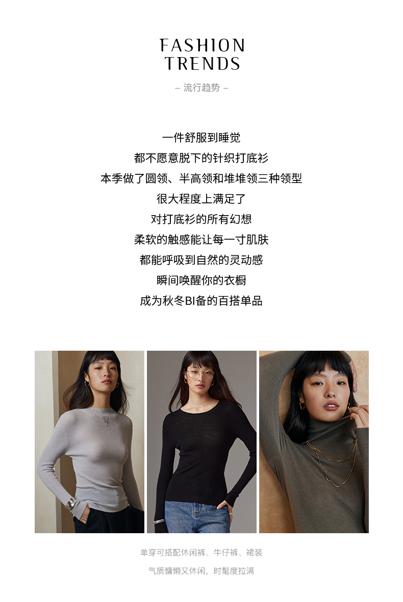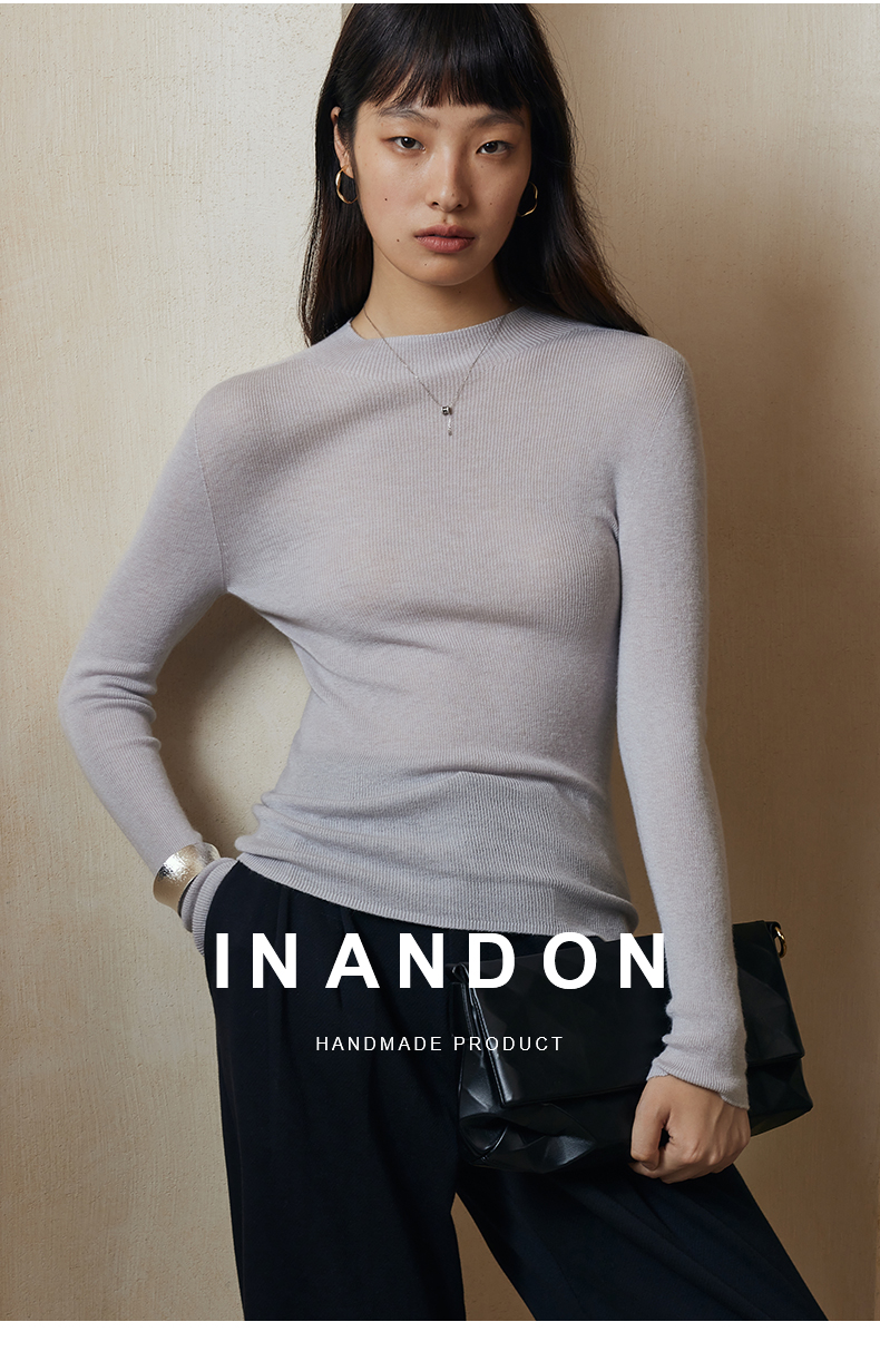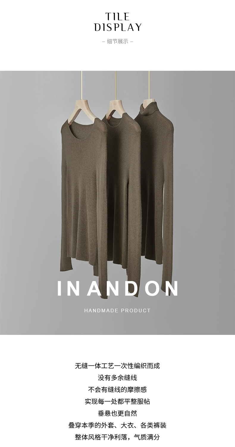 IN AND ON可机洗绵羊毛无缝一体打底衫女2023秋季半高领羊毛衫三种领型
