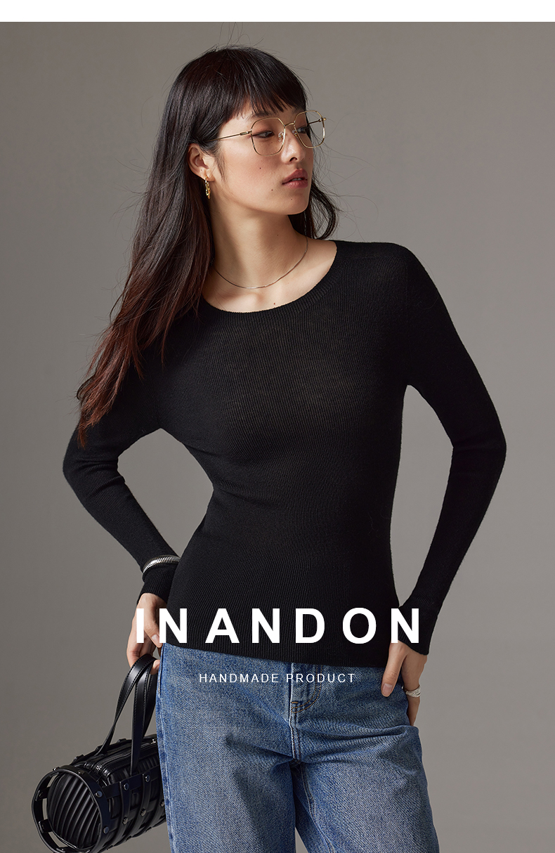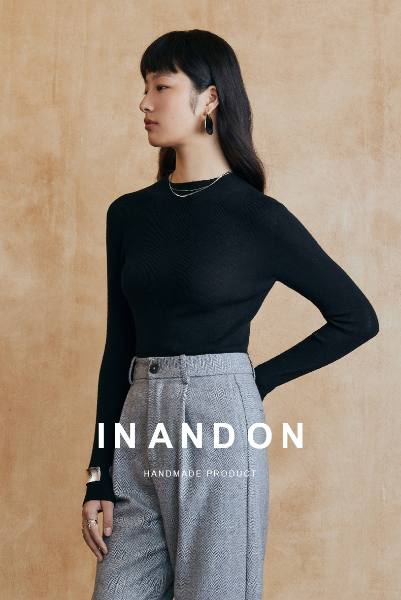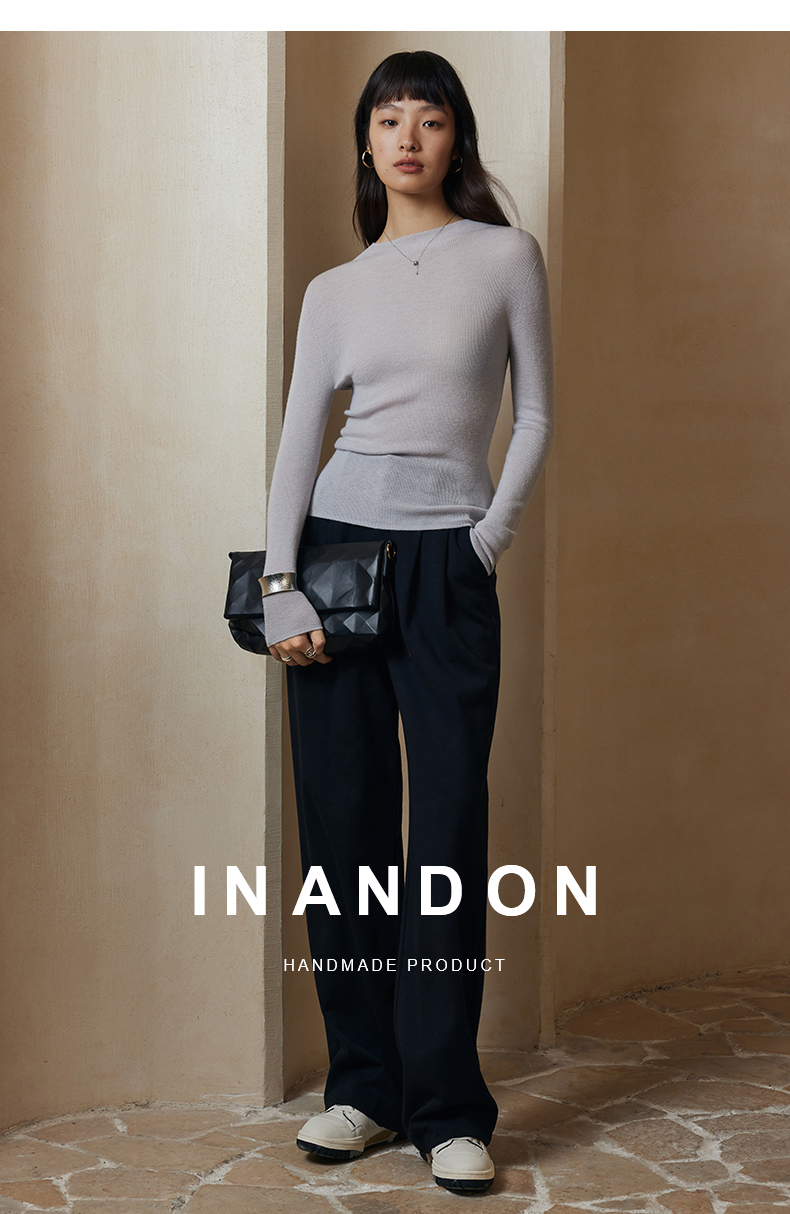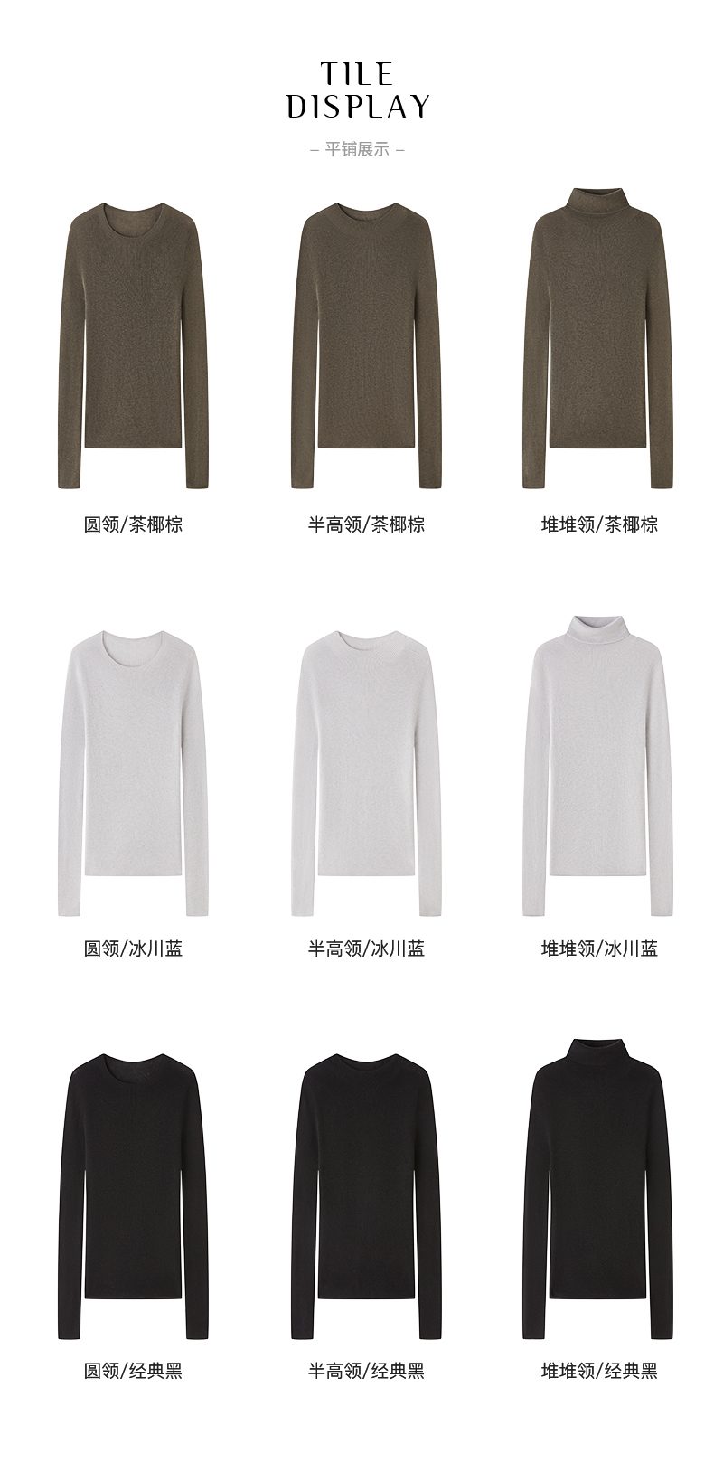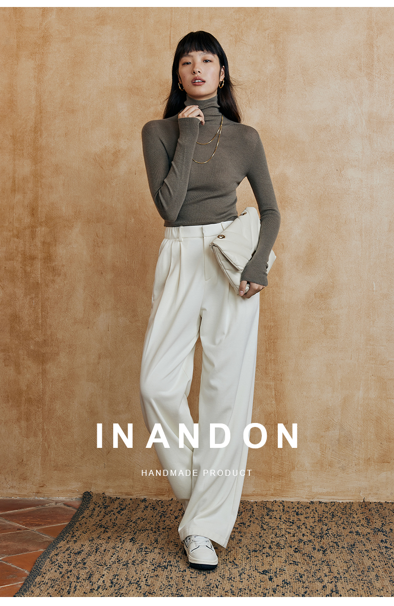 IN AND ON可机洗绵羊毛无缝一体打底衫女2023秋季半高领羊毛衫三种领型