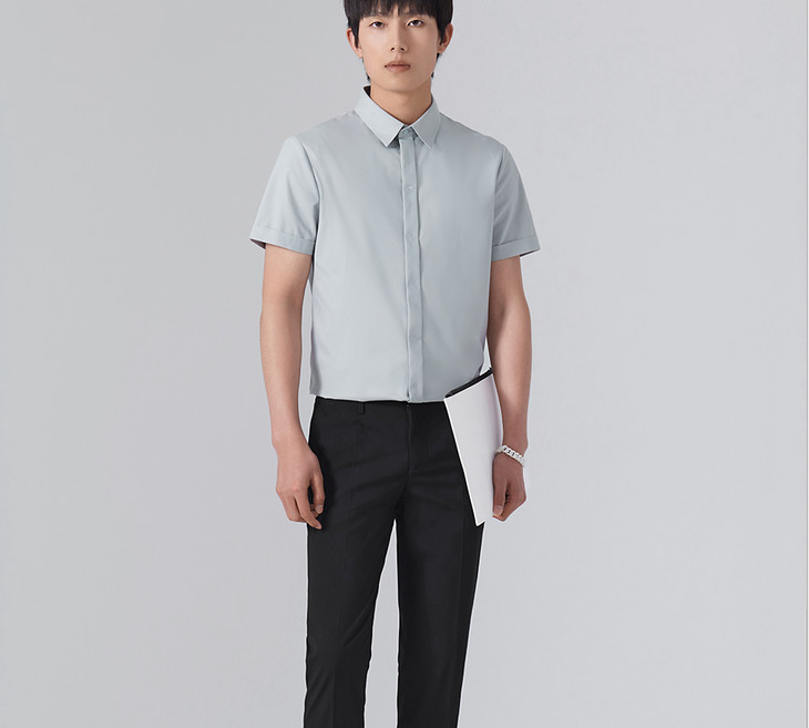HIM漢崇 斯文灰绿修身长袖衬衫男职场商务正装舒适衬衣 2026夏季