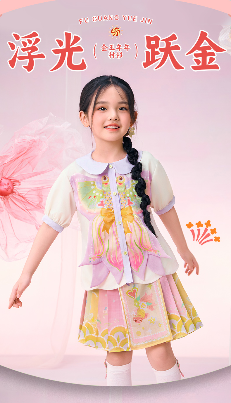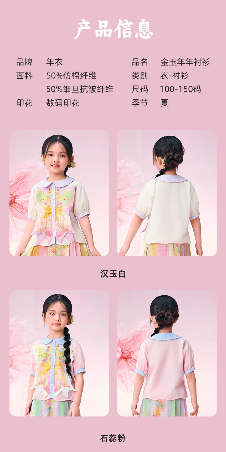 【年衣】童装女童新中式短袖衬衫2025新款儿童甜美国风金玉年年衬衫