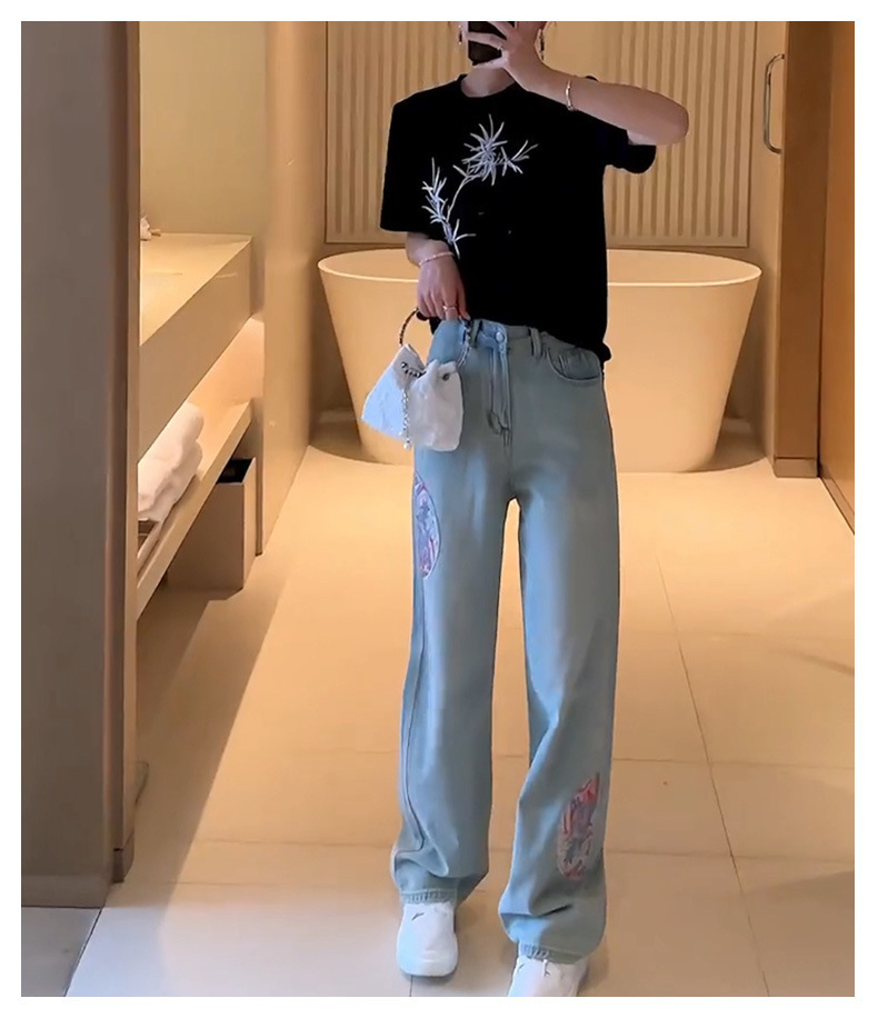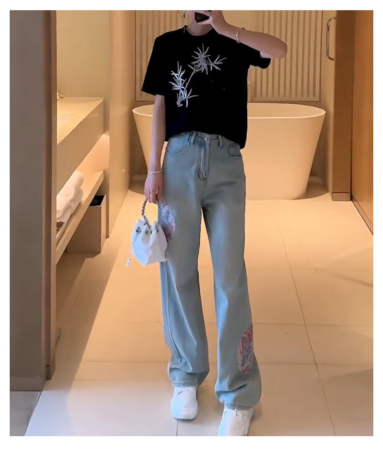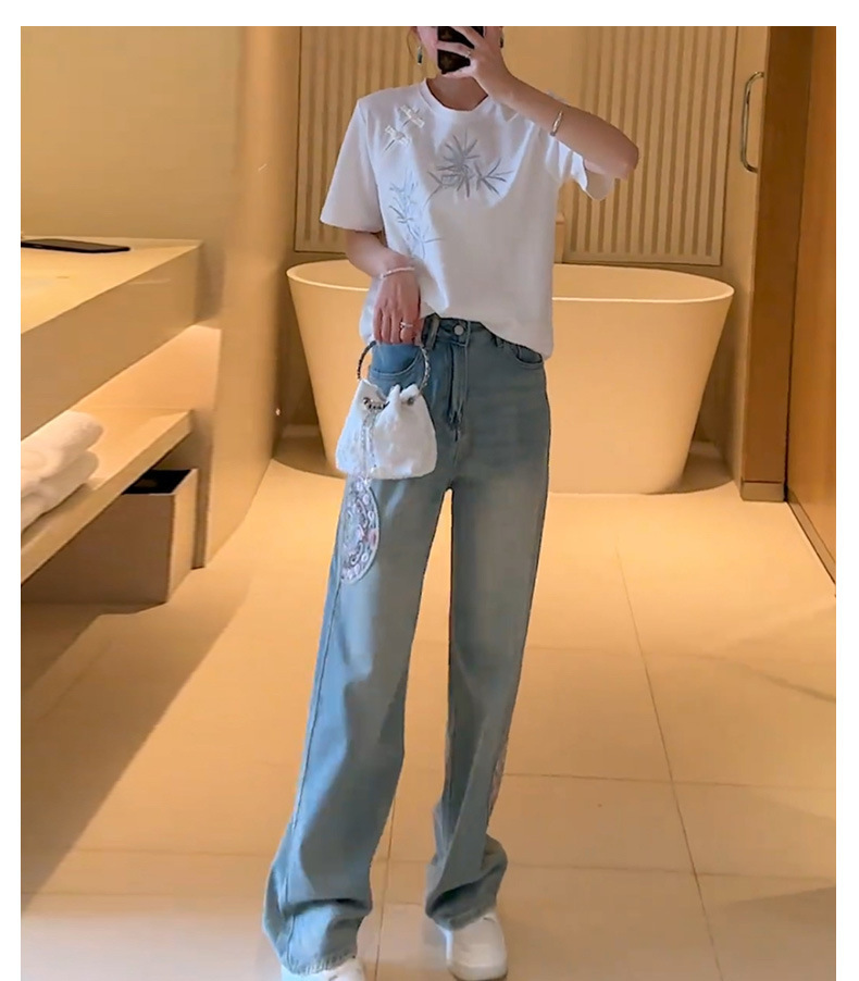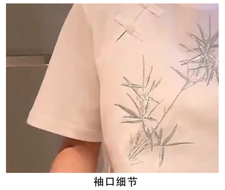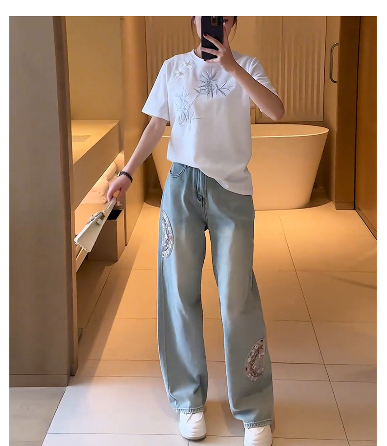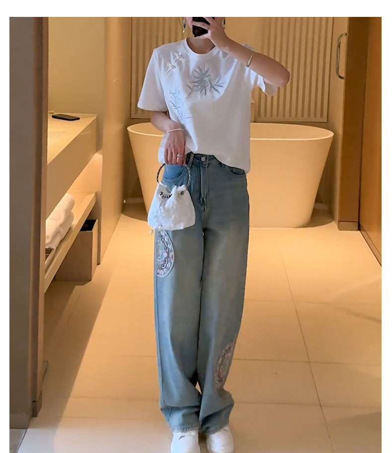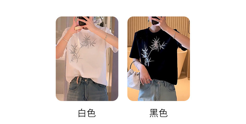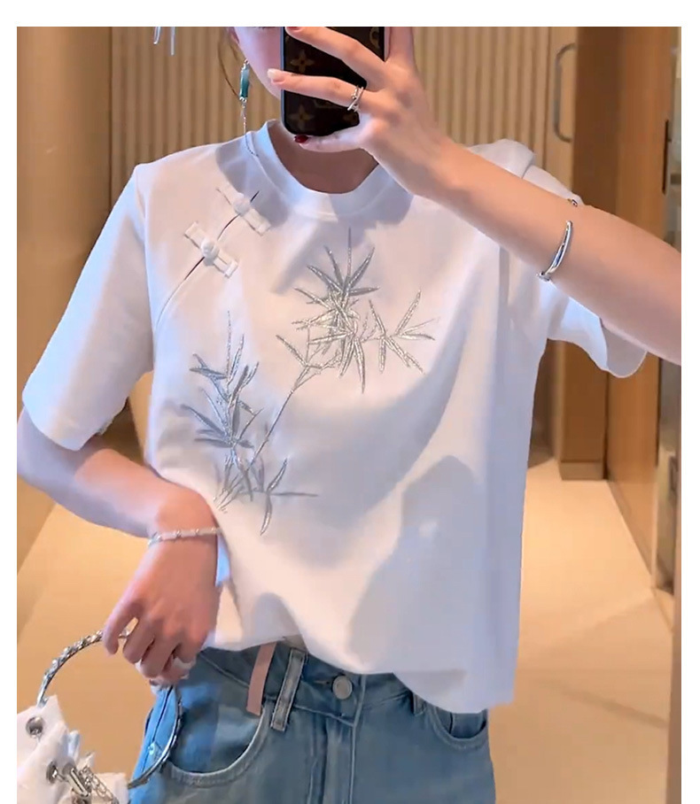 雀说国风刺绣T恤女圆领高级感漂亮上衣女韩版通勤宽松AL4052