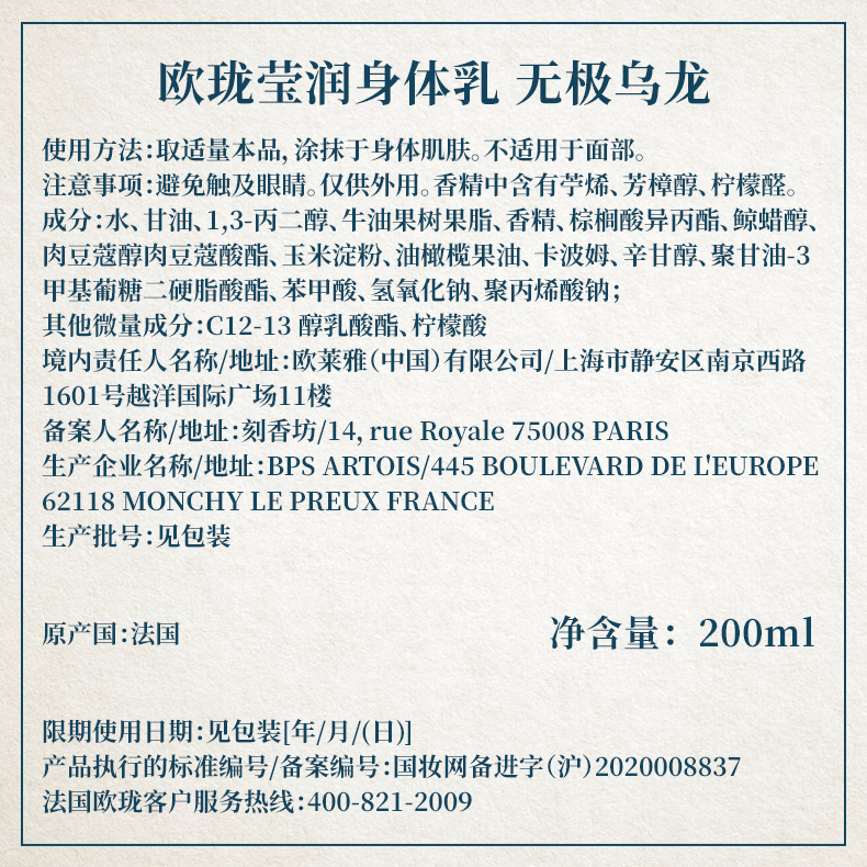 欧珑 莹润身体乳/沐浴露200ml 无极乌龙/赤霞橘光【该商品不支持用券】