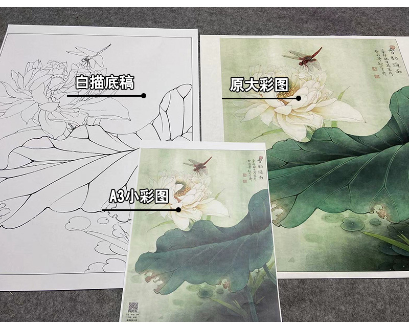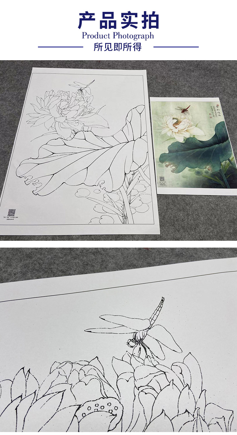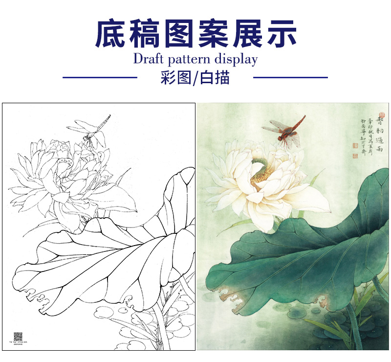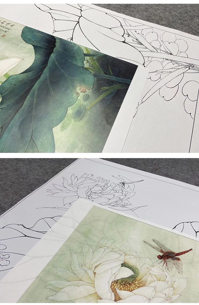 【大彩图】李晓明工笔画白描底稿小品《碧叶连天》荷花临摹勾线花鸟线稿K083
