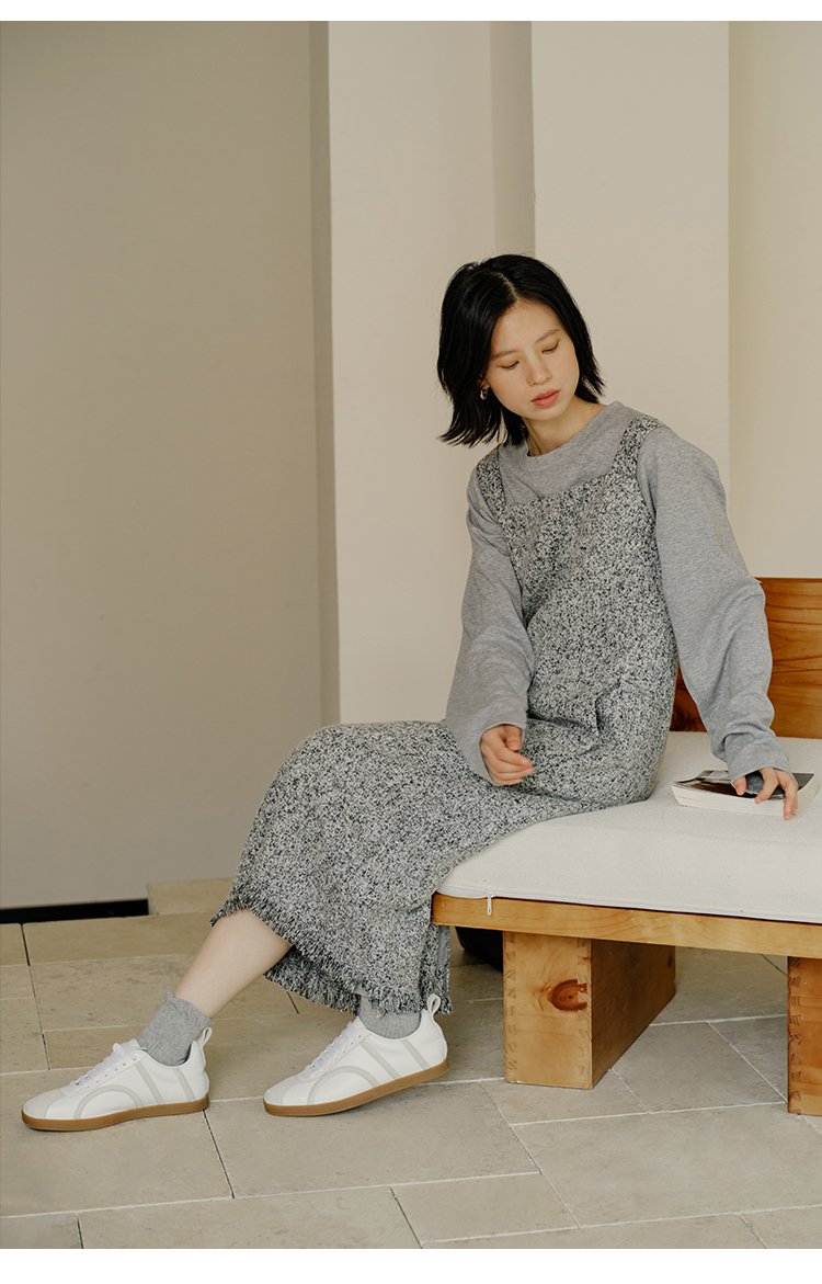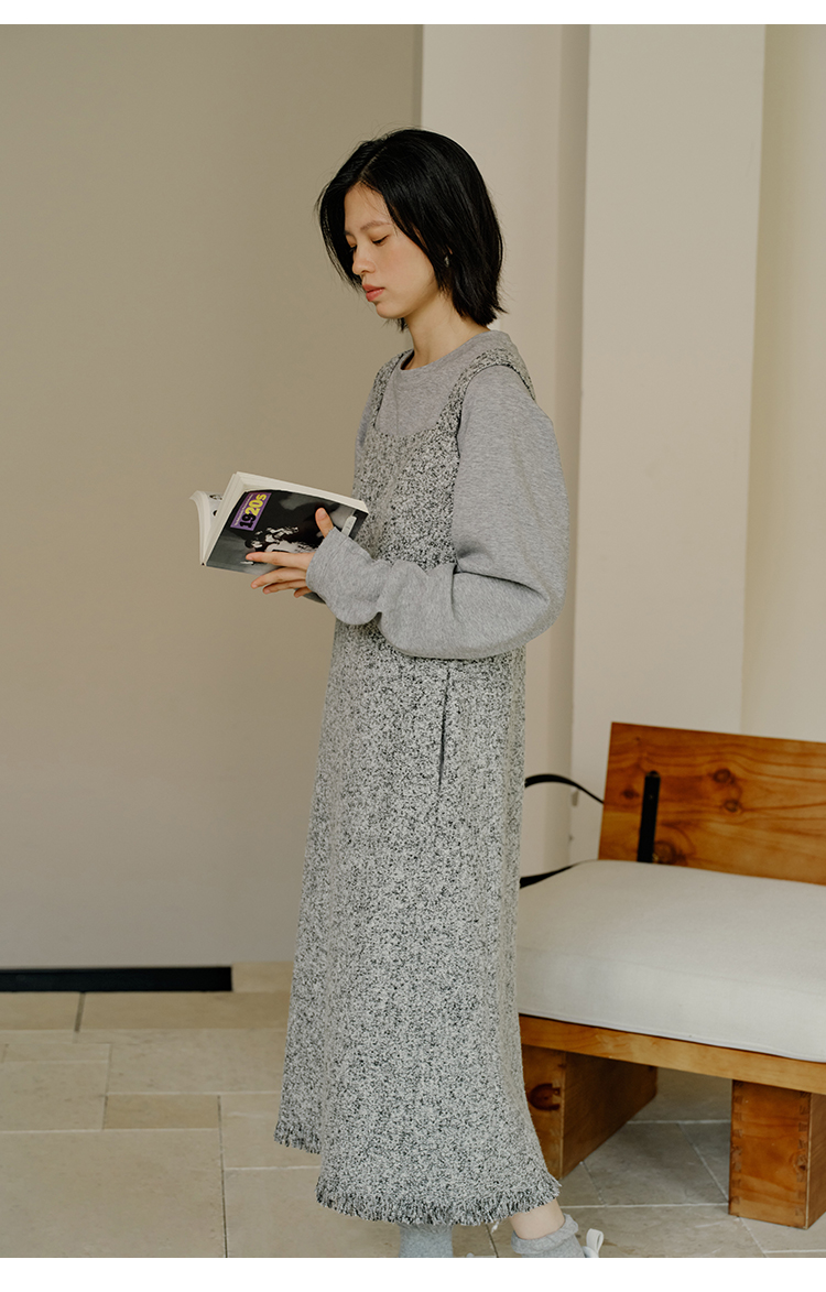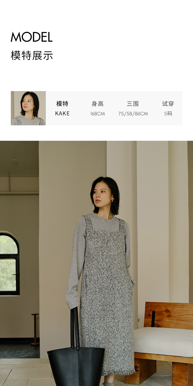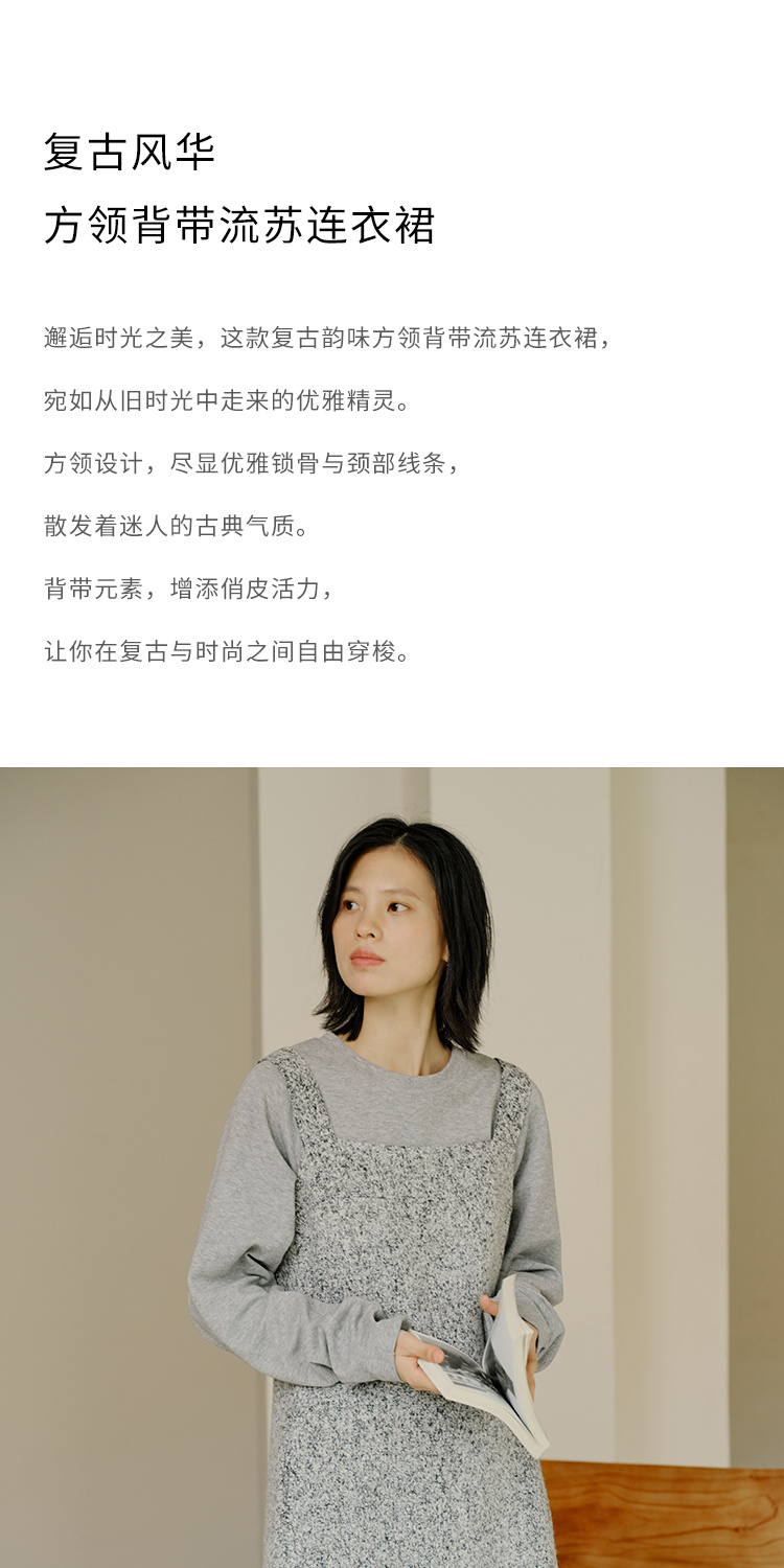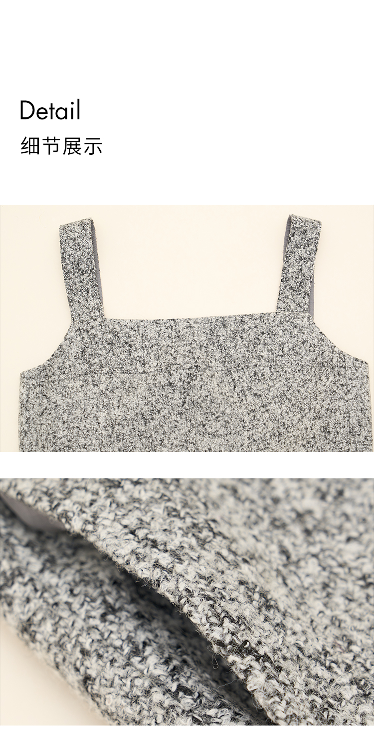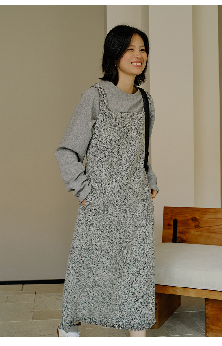 HeyDress法式流苏连衣裙女秋季收腰显瘦设计感直筒毛呢背带裙子
