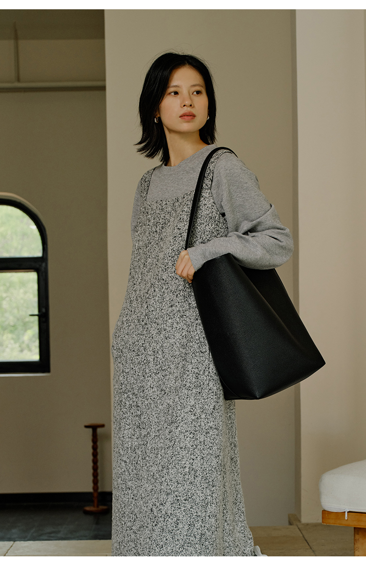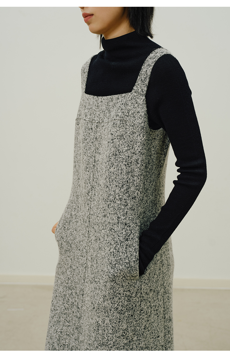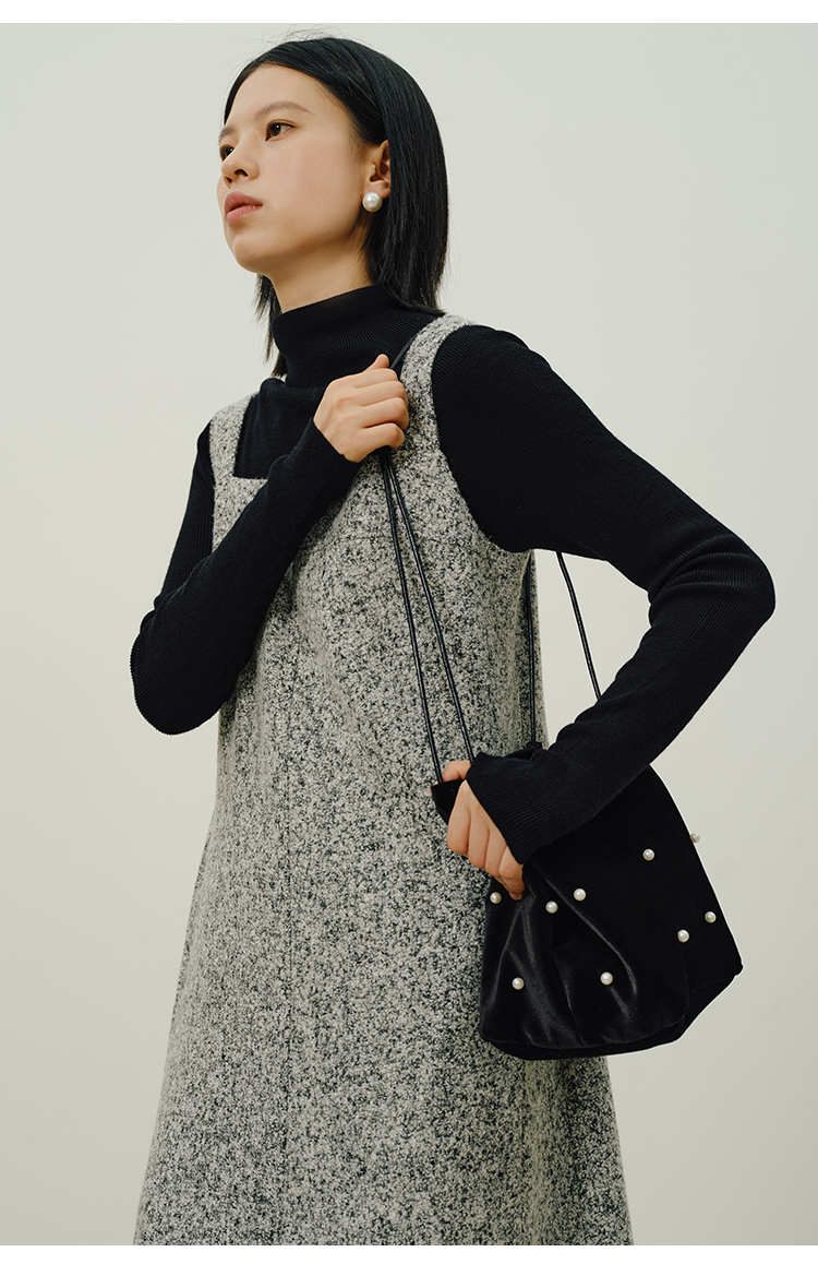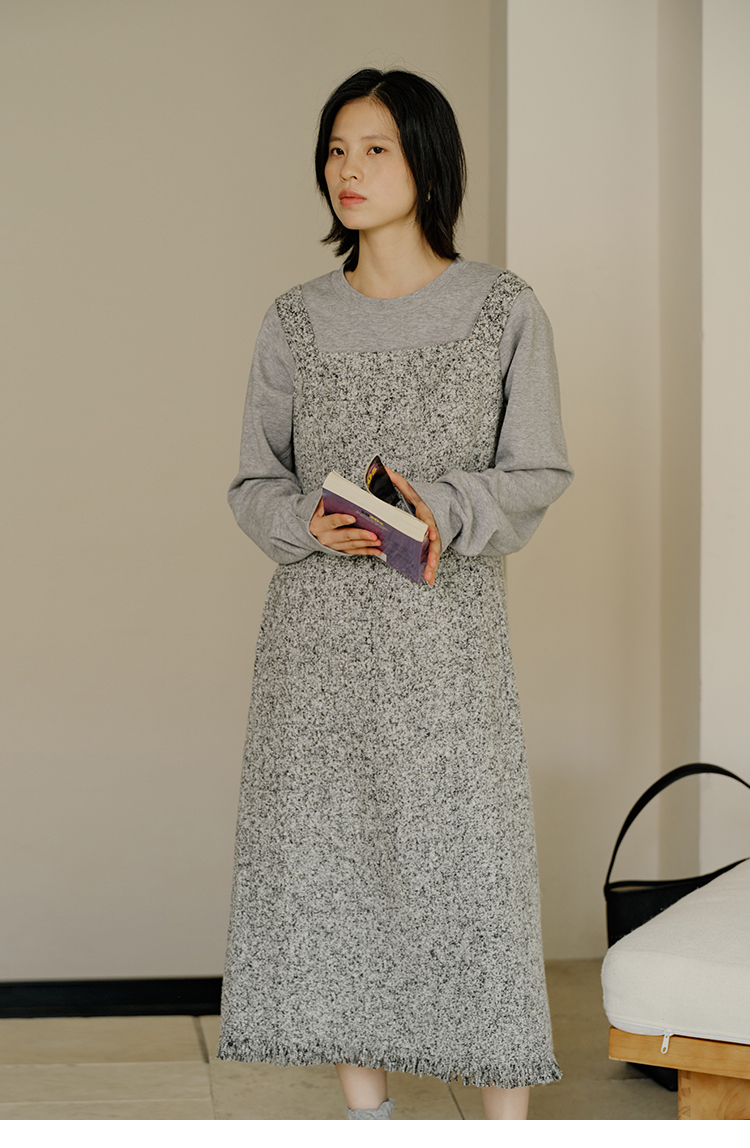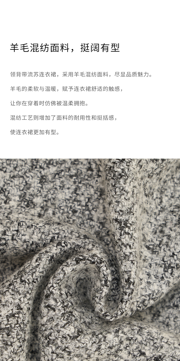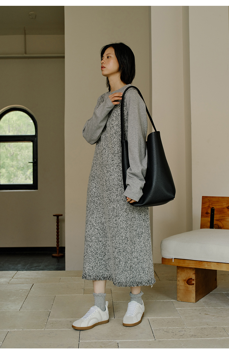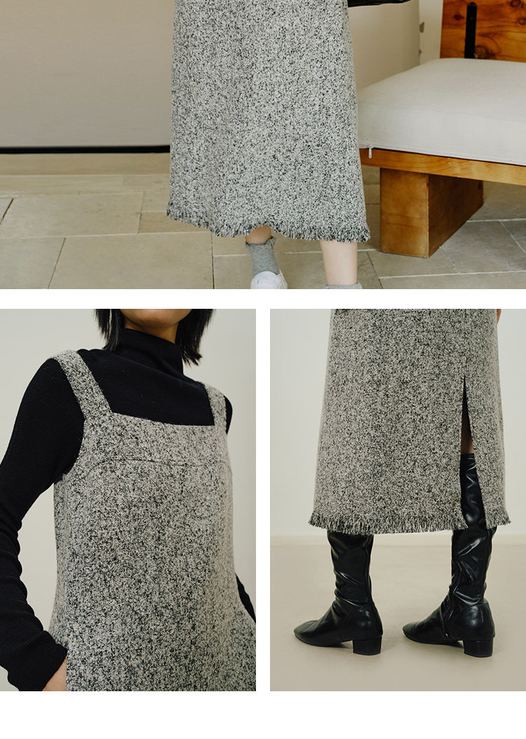 HeyDress法式流苏连衣裙女秋季收腰显瘦设计感直筒毛呢背带裙子