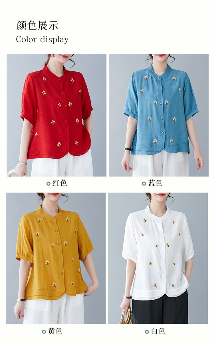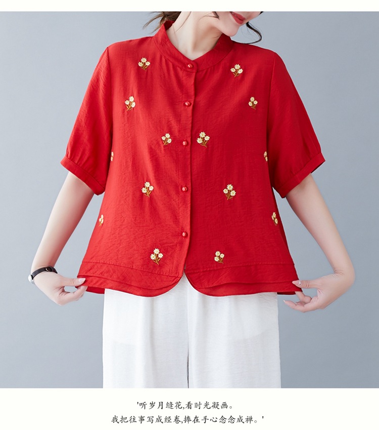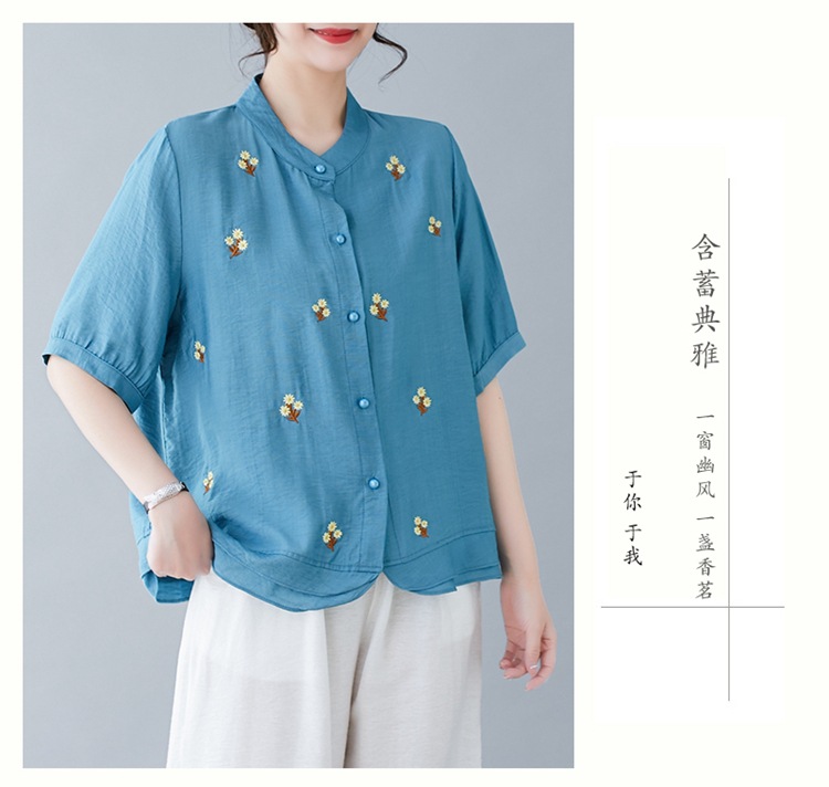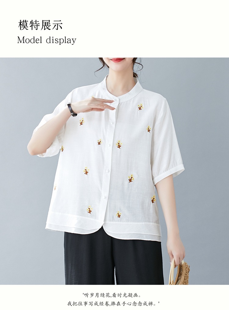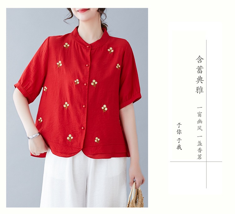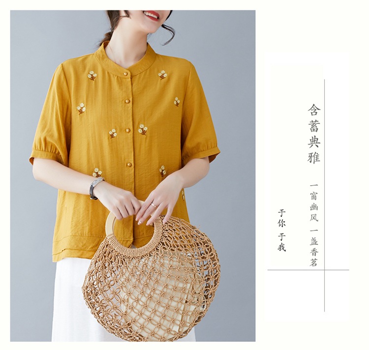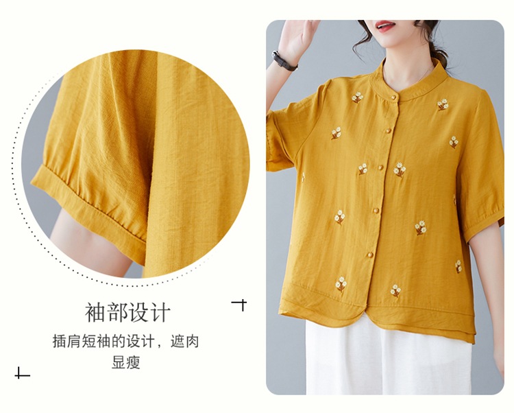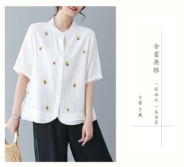GYH 9006刺绣复古开衫立领棉麻休闲薄款上衣