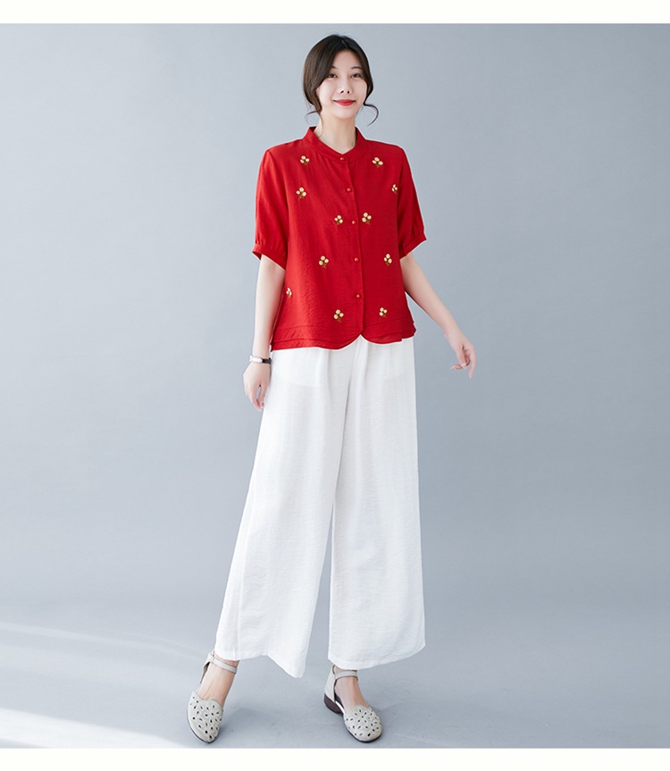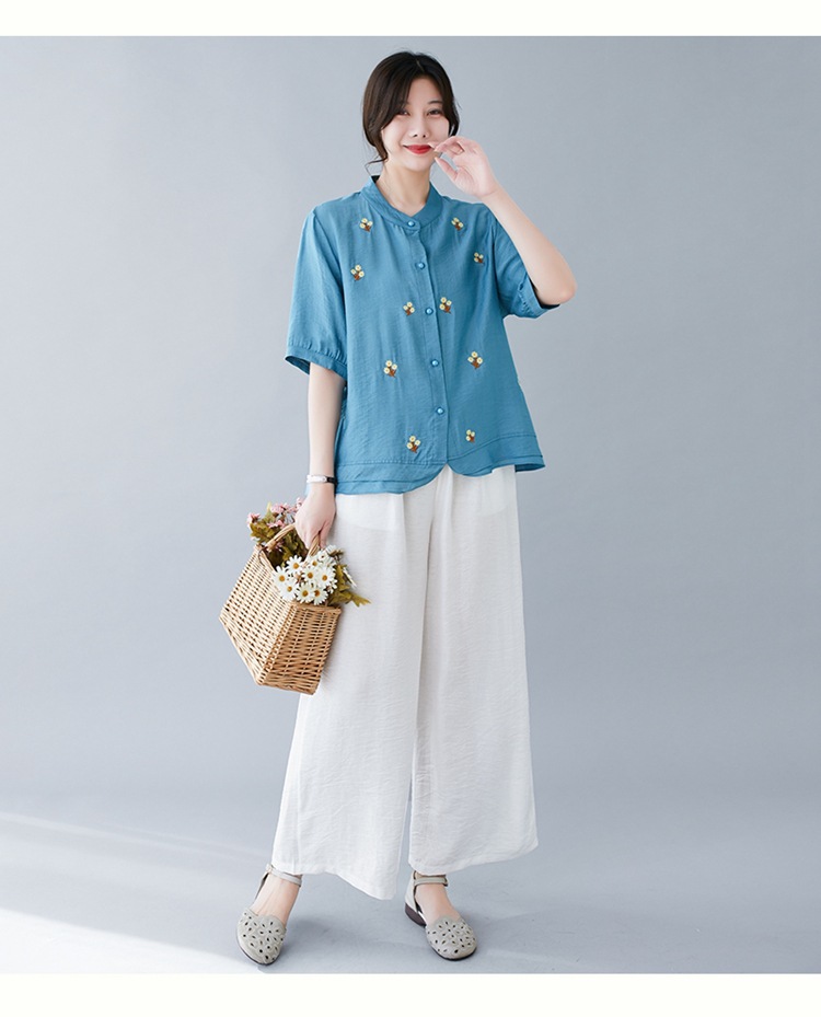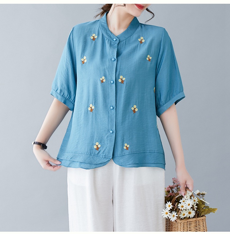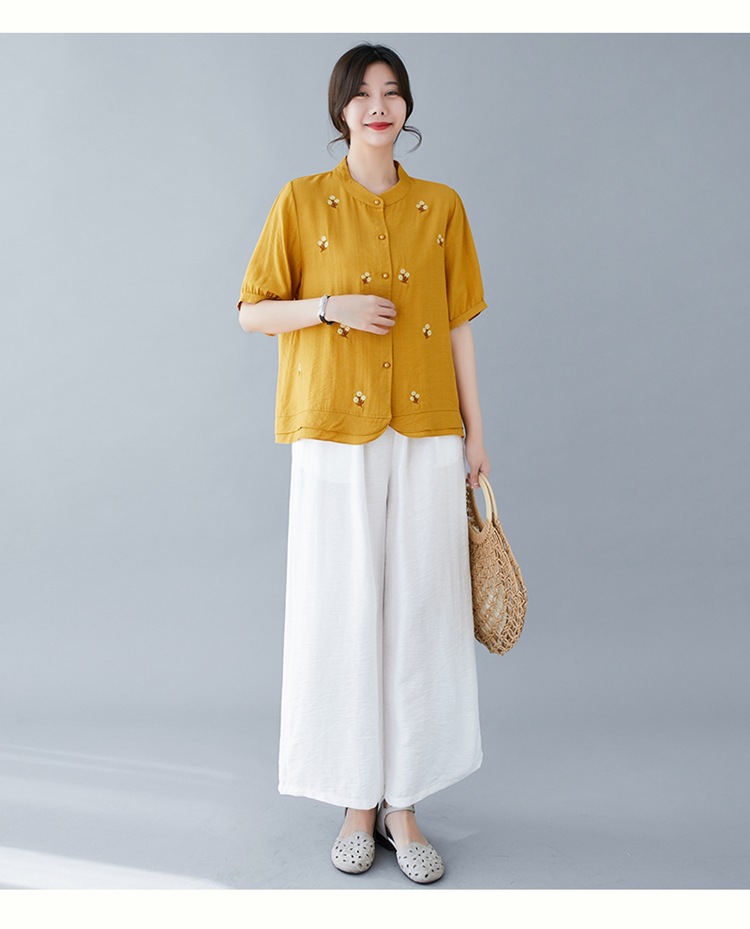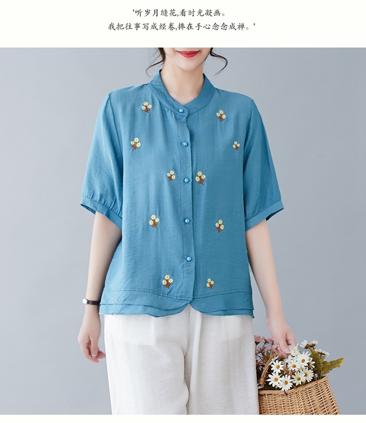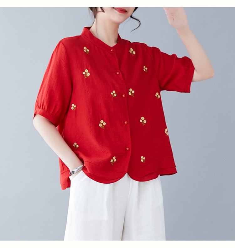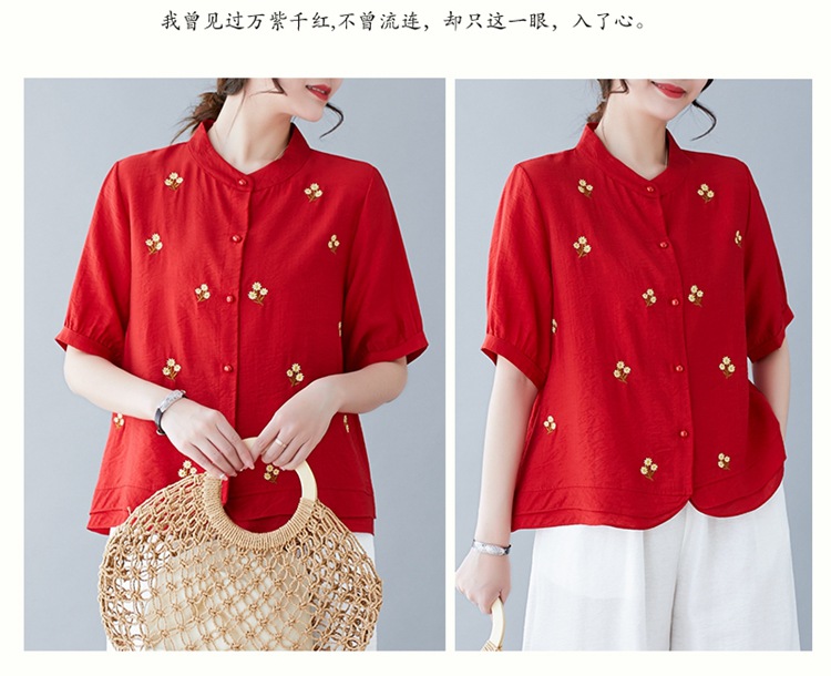 GYH 9006刺绣复古开衫立领棉麻休闲薄款上衣