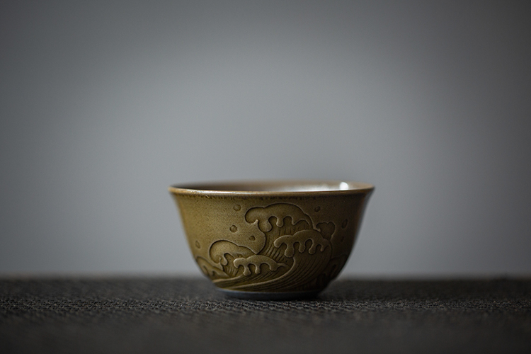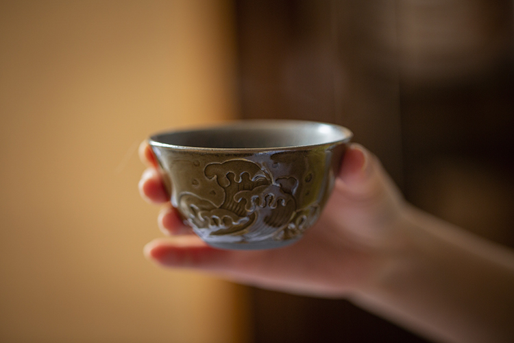 杯身刻绘的云朵有种上升漂浮的感觉,很是灵动。
