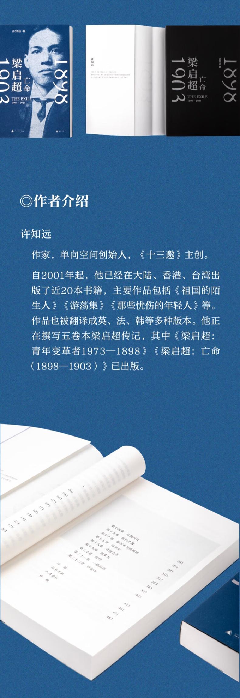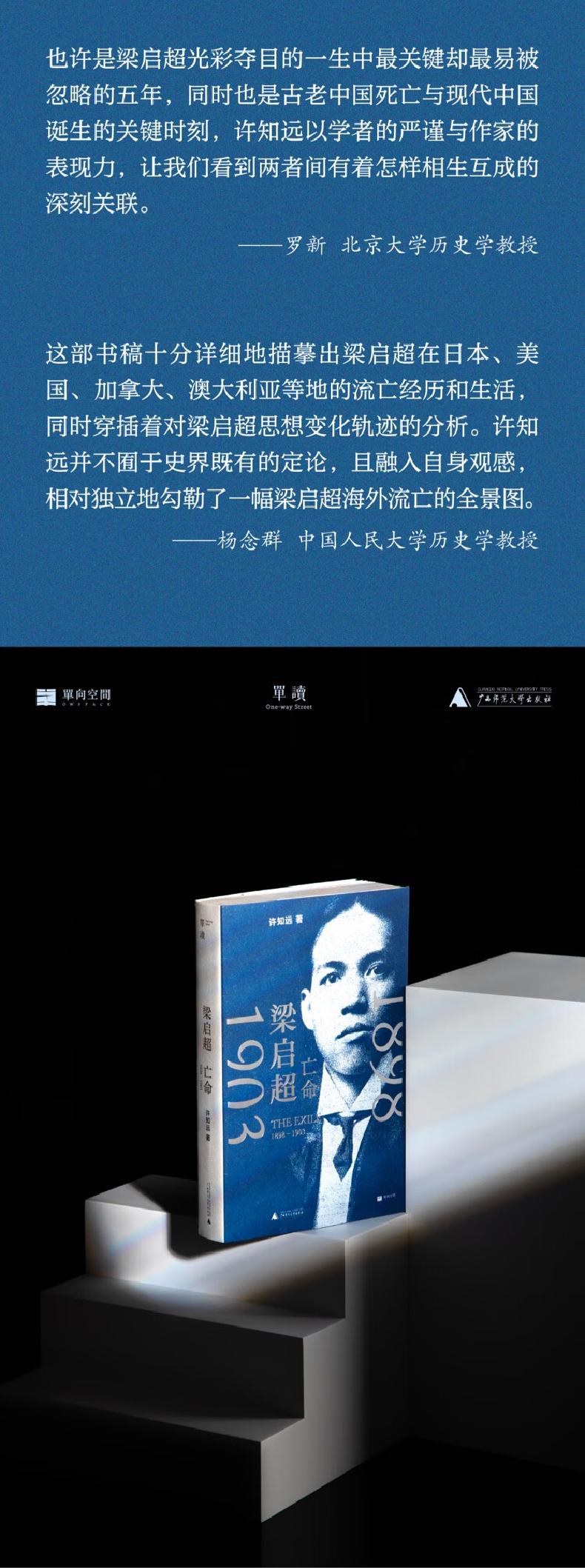 经历失败的梁启超没有沉溺于挚友洒血、远离故土的创痛,而是以新的行动开拓局面。机会意外涌现,世界成为舞台,他不仅开创了流亡新闻业的先河,也建立起全球性的现代政治组织“保皇会”。许知远笔下的梁启超是一个强有力的灵魂,在慌乱中拥抱世界,在不确定中创造可能性。