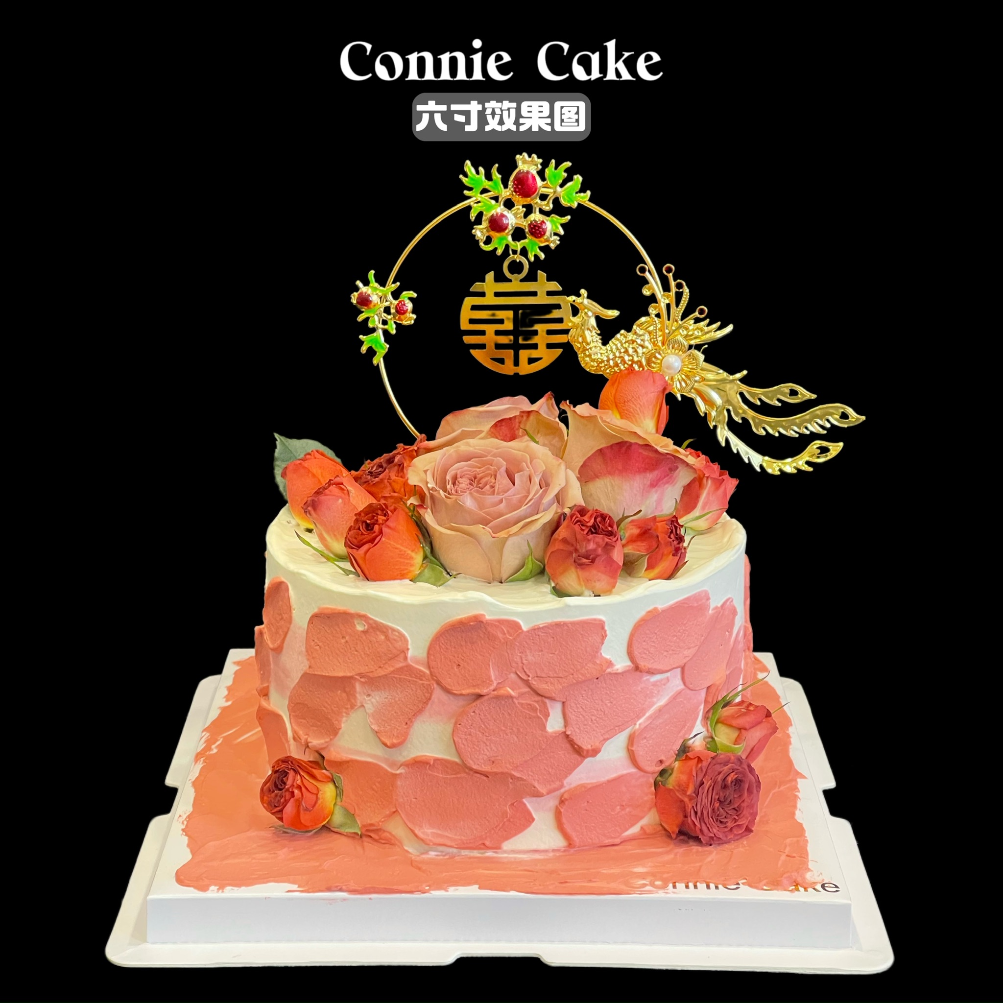 中式凤凰鲜花 订婚结婚蛋糕