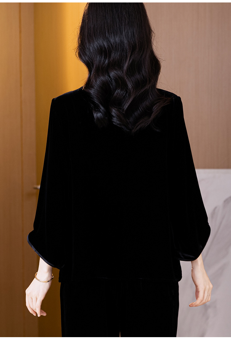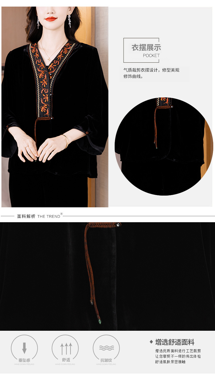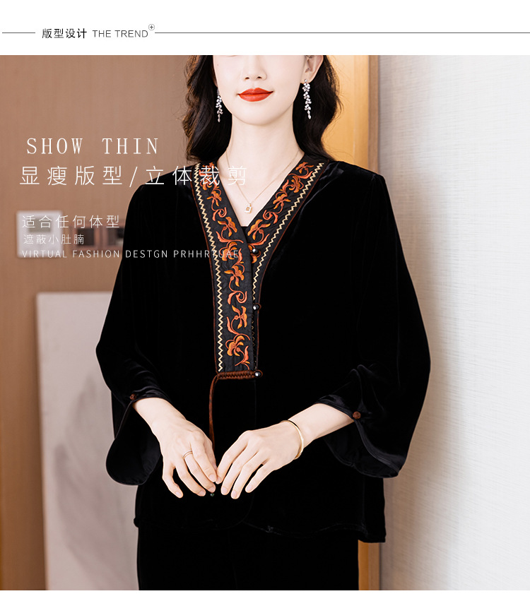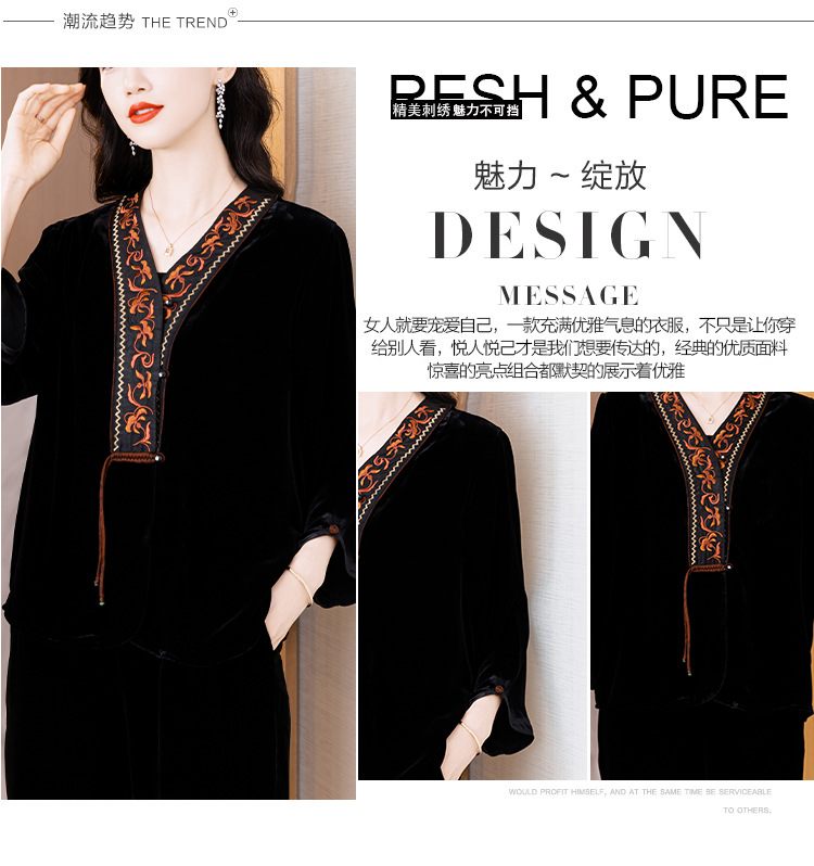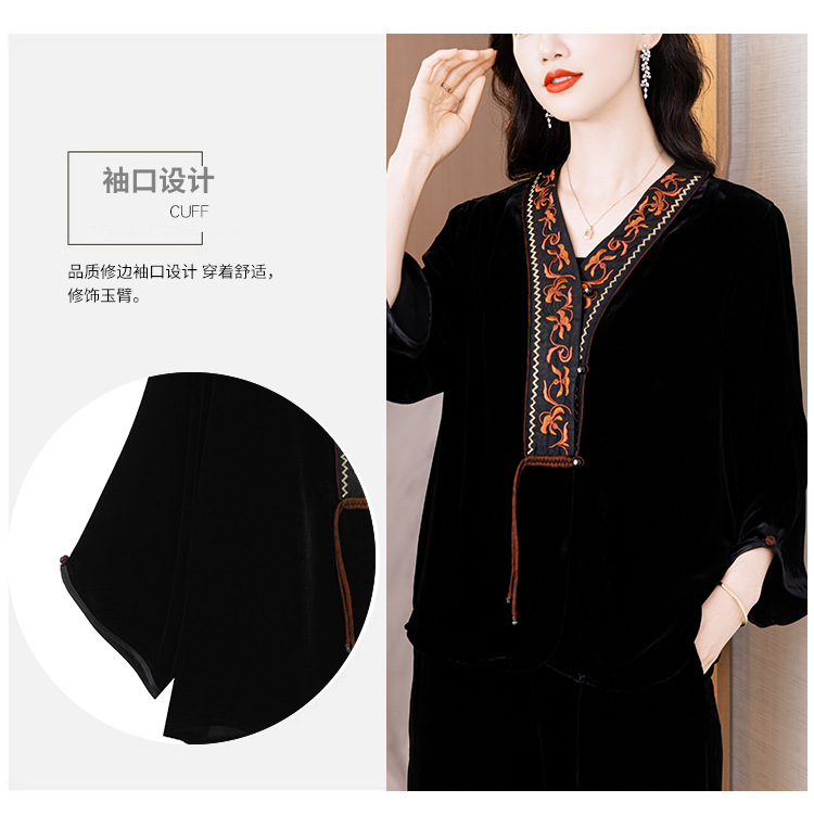 2025新中式中年妈妈春秋新款金丝绒国风刺绣钉珠上衣套装