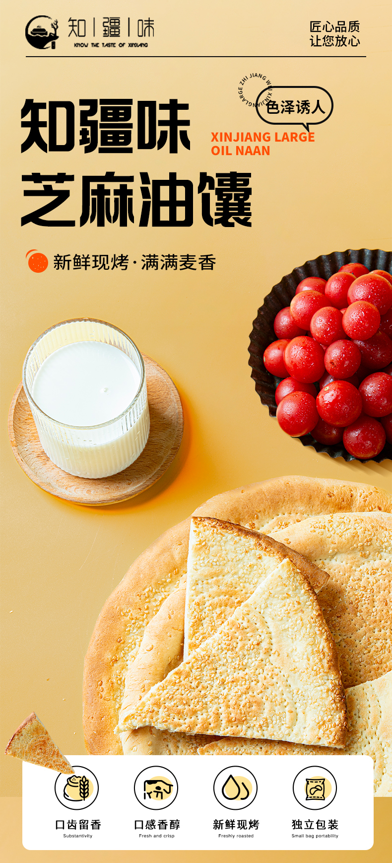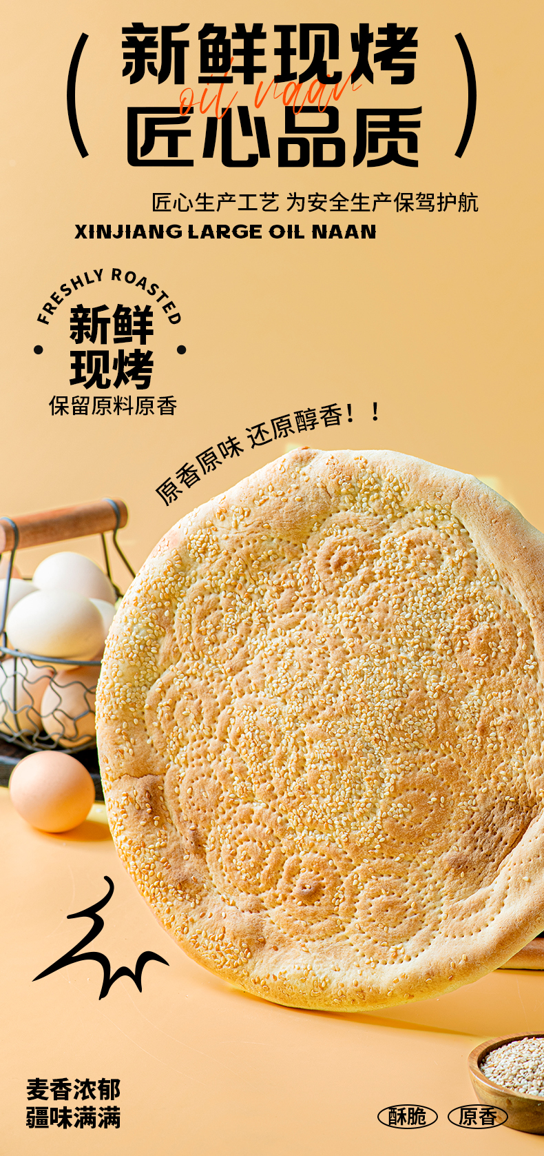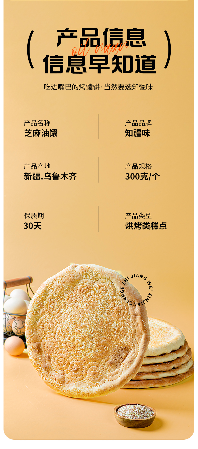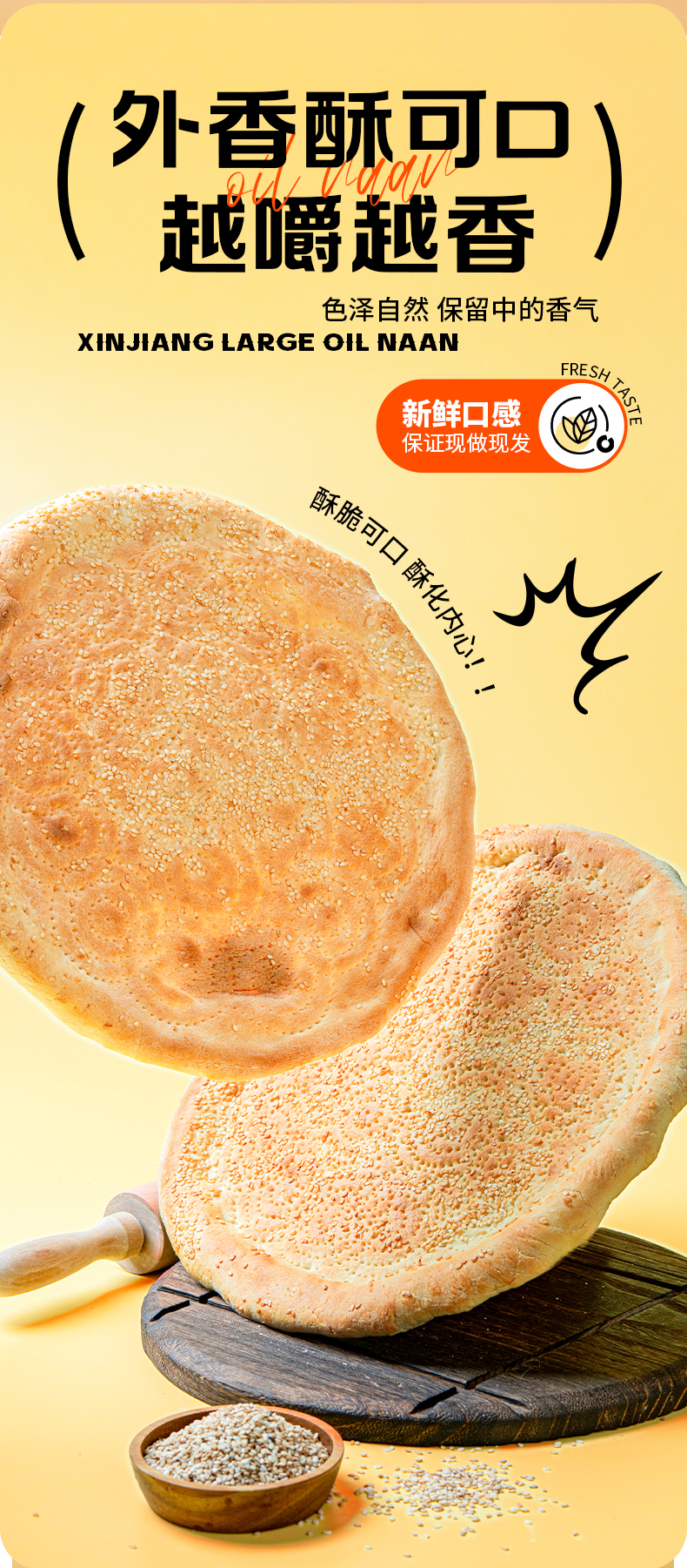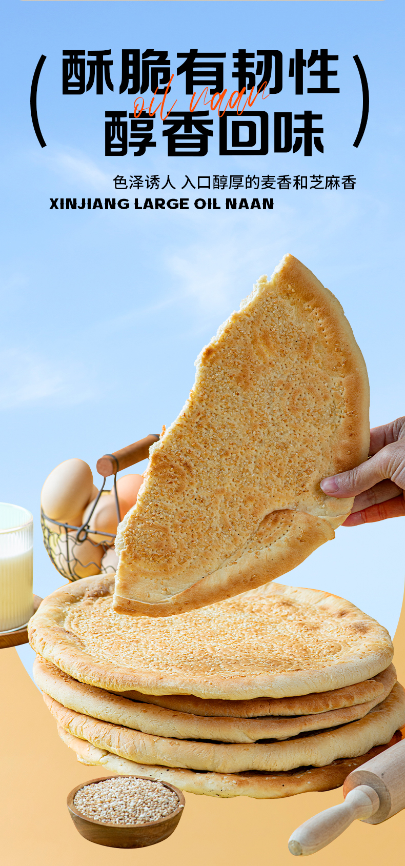 知疆味·大芝麻馕 300g*4 精选优质小麦粉 芝麻满布 外皮酥脆 内里松软