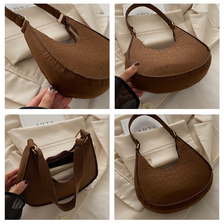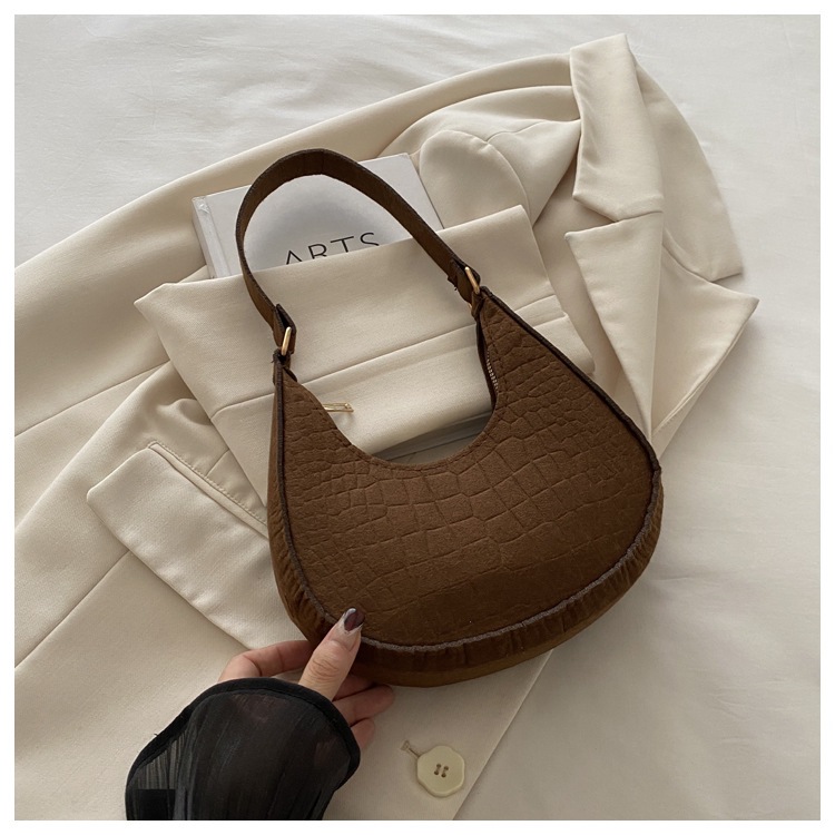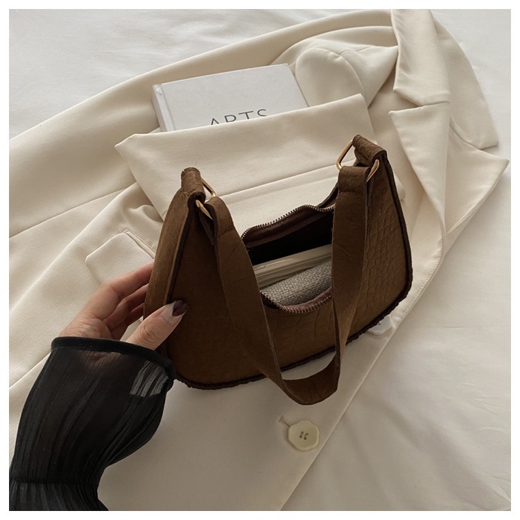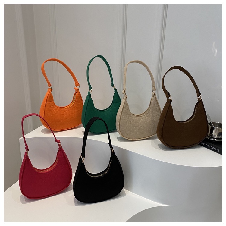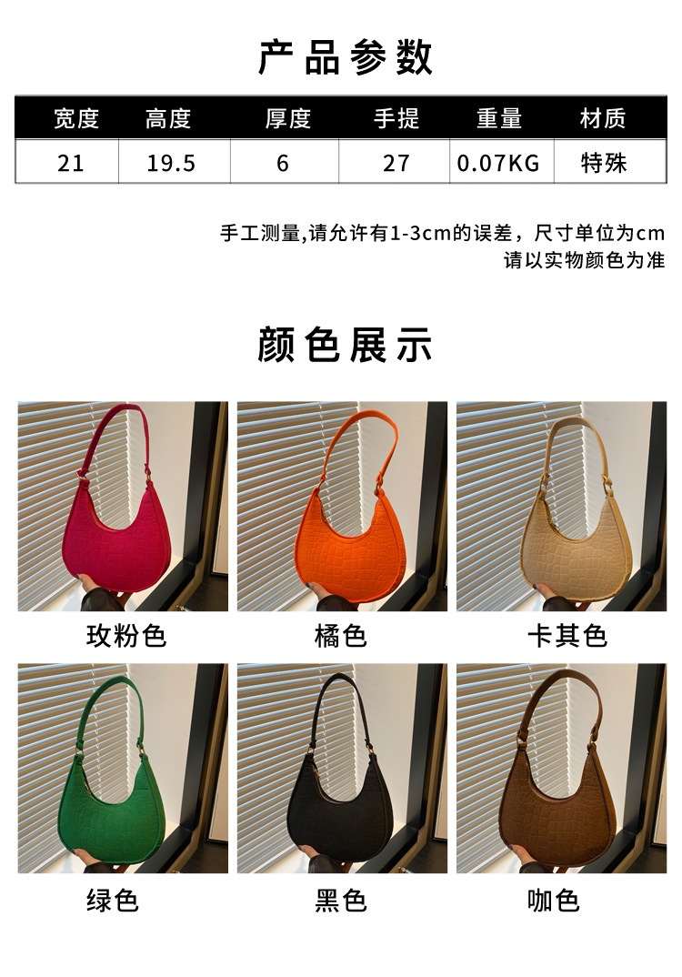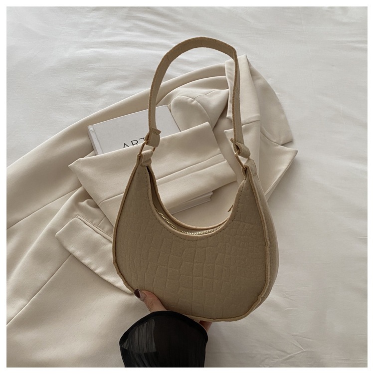 【舒适手提!顺滑拉链】纯色气质女士包潮流韩版秋冬新款石头纹腋下包休闲单肩手拎包。xa