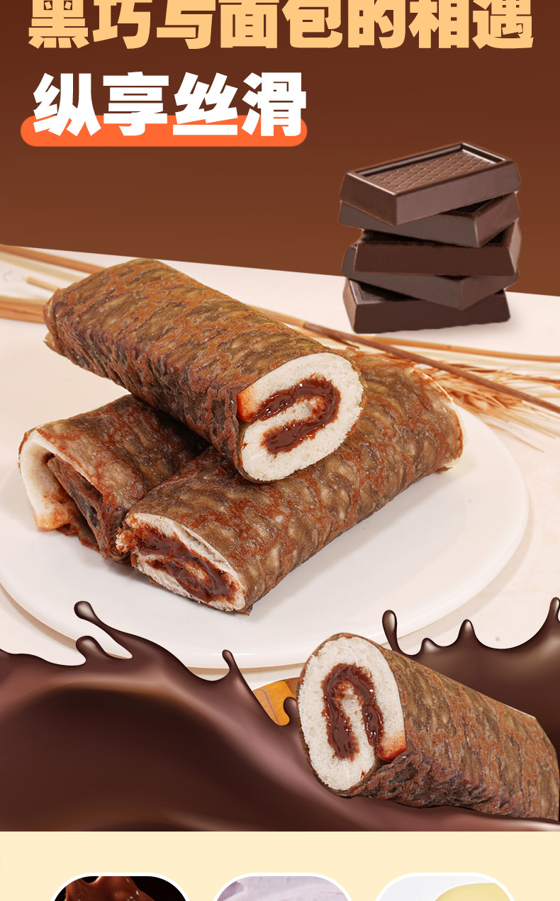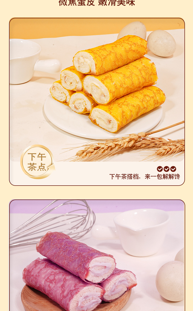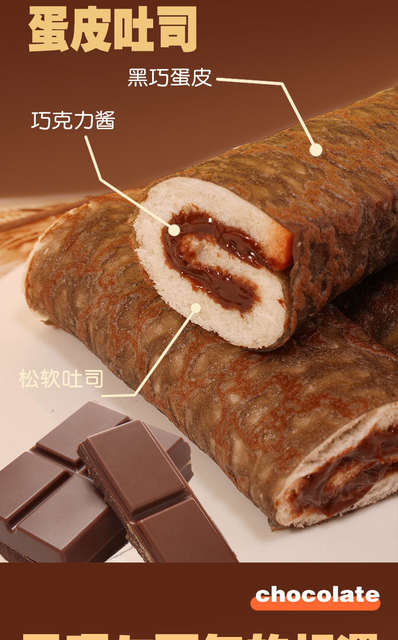 【多层口感!满满夹心】蛋皮吐司肉松夹心卷面包整箱早餐代黑巧芋泥充饥零食小吃休闲食品。xb