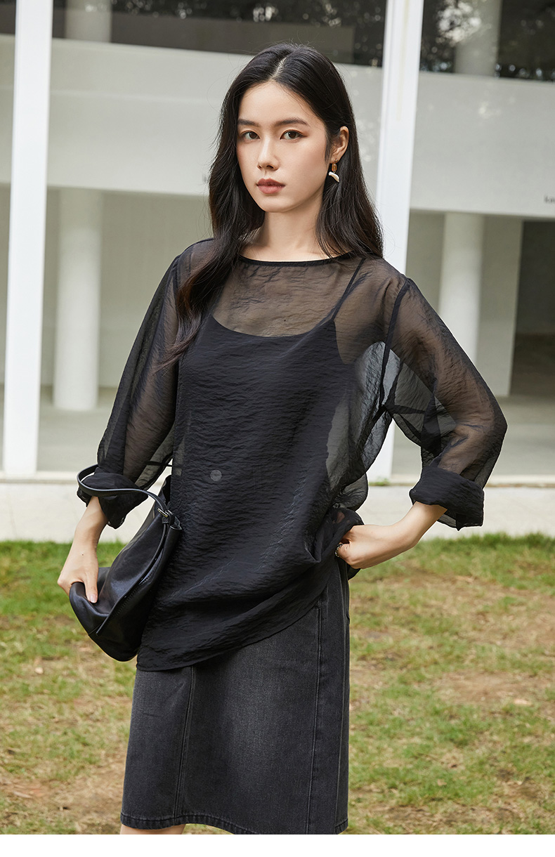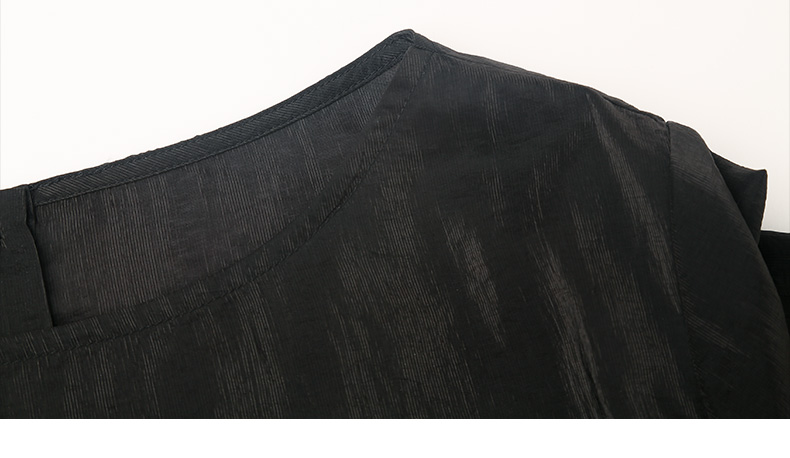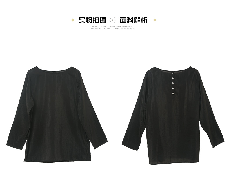 黑色肌理感圆领长袖衬衫 垂坠感宽松显瘦上衣 慵懒风通勤百搭衬衣