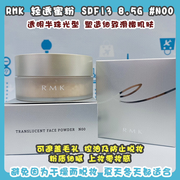 RMK轻透蜜粉#N00/#01👍🏻SPF13 8.5G🌿可遮盖毛孔、控油及防止脱妆。粉质细腻,上妆零妆感,每个色号都很适合平时的日常妆容,让你一整天肌肤不暗沉。RMK的散粉含有氨基酸,💦这个可以加强散粉的水润效果,避免因为干燥而脱妆,夏天冬天都适合。 ☑️#N00透明半珠光型,塑造细致滑嫩肌肤。不带任何颜色、利用肌肤本来的肤色,创造透明自然光泽的肌肤; ☑️#01明亮肌肤型,肉白色哑光效果,适合肌肤稍白皙的妹子使用。