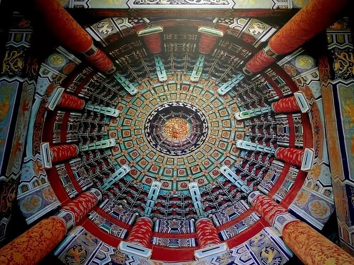 天坛有众所周知的三大声学现象,比如回音壁是皇穹宇的外墙,可以传声,只要两个人分别站在东、西配殿后,贴墙而立,一个人靠墙向北说话,传到一、二百米的另一端,无论说话声音多小,也可以使对方听得清清楚楚,而且声音悠长,给人一种"天人感应"的神秘气氛。